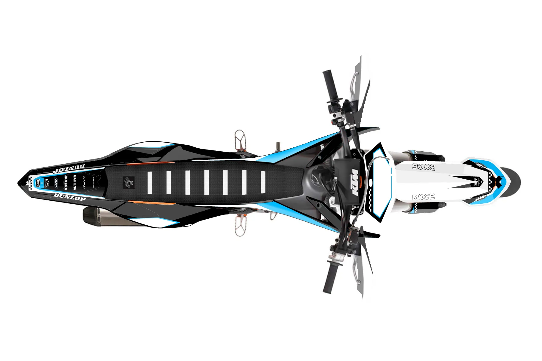 «Rule» — готовый комплект графики серии Staple для KTM Supermoto KTM SMR 450 2013. В комплекте: графика на бак и боковые облицовки, крылья (переднее и заднее), передний щиток, номерные таблички, защита вилки. Материал: ПВХ-винил 80 мкр с холодной ламинацией 300 мкр, общая толщина 380 мкр; покрытие глянцевое или матовое на выбор. Устойчив к UV-излучению, воде, бензину и мойке высокого давления. Клей акриловый на сольвентной основе — постоянный, для гибких пластиков. На простых поверхностях монтируется без нагрева; для сложных изгибов рекомендуем фен. Этот пресет можно заказать как есть или взять за основу в конструкторе: поменять цвета, добавить стартовый номер и свой бренд. Производство — 3–5 рабочих дней, доставка по России СДЭКом или Почтой, по СНГ — курьерскими службами.