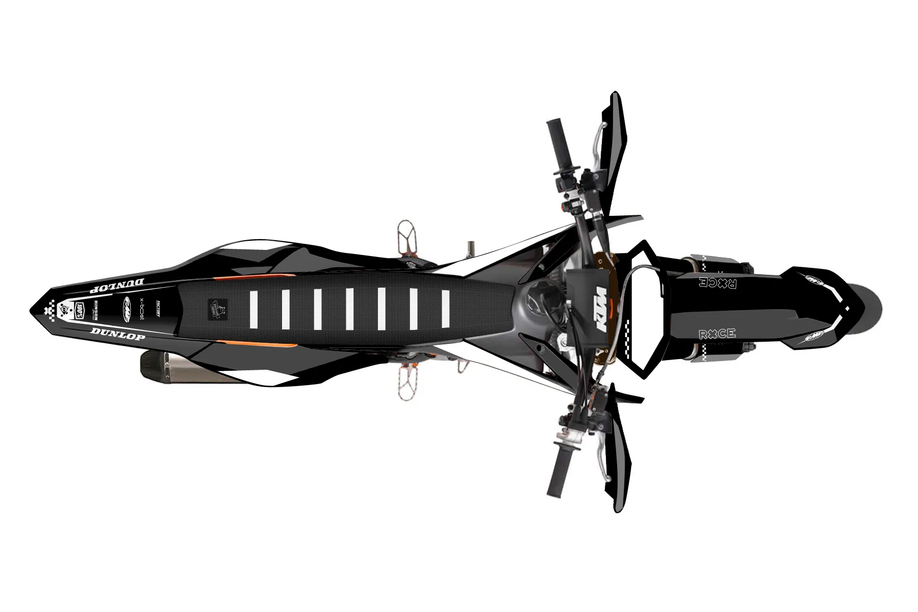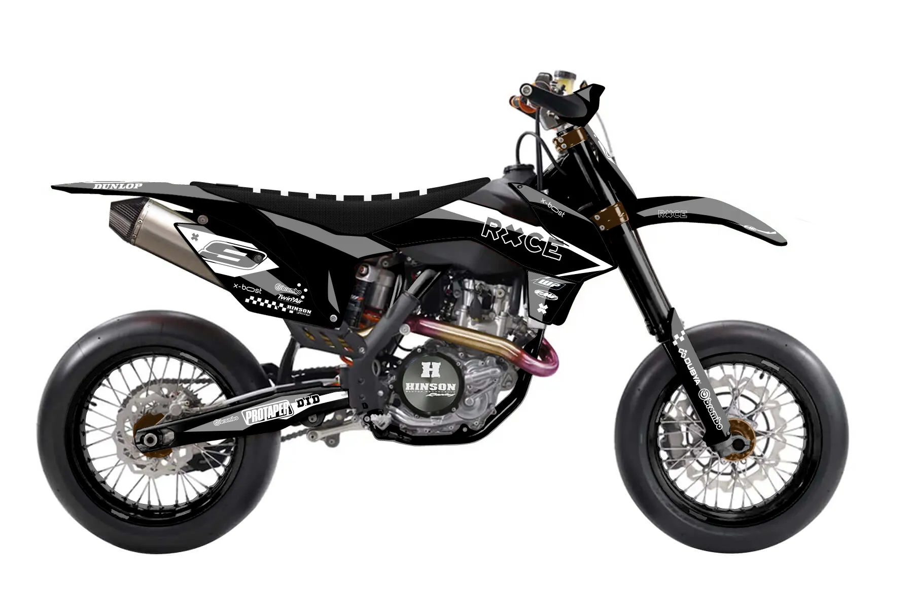 «Ryder» — готовый комплект графики серии Staple для KTM Supermoto KTM SMR 450 2013. В комплекте: графика на бак и боковые облицовки, крылья (переднее и заднее), передний щиток, номерные таблички, защита вилки. Материал: ПВХ-винил 80 мкр с холодной ламинацией 300 мкр, общая толщина 380 мкр; покрытие глянцевое или матовое на выбор. Устойчив к UV-излучению, воде, бензину и мойке высокого давления. Клей акриловый на сольвентной основе — постоянный, для гибких пластиков. На простых поверхностях монтируется без нагрева; для сложных изгибов рекомендуем фен. Этот пресет можно заказать как есть или взять за основу в конструкторе: поменять цвета, добавить стартовый номер и свой бренд. Производство — 3–5 рабочих дней, доставка по России СДЭКом или Почтой, по СНГ — курьерскими службами.