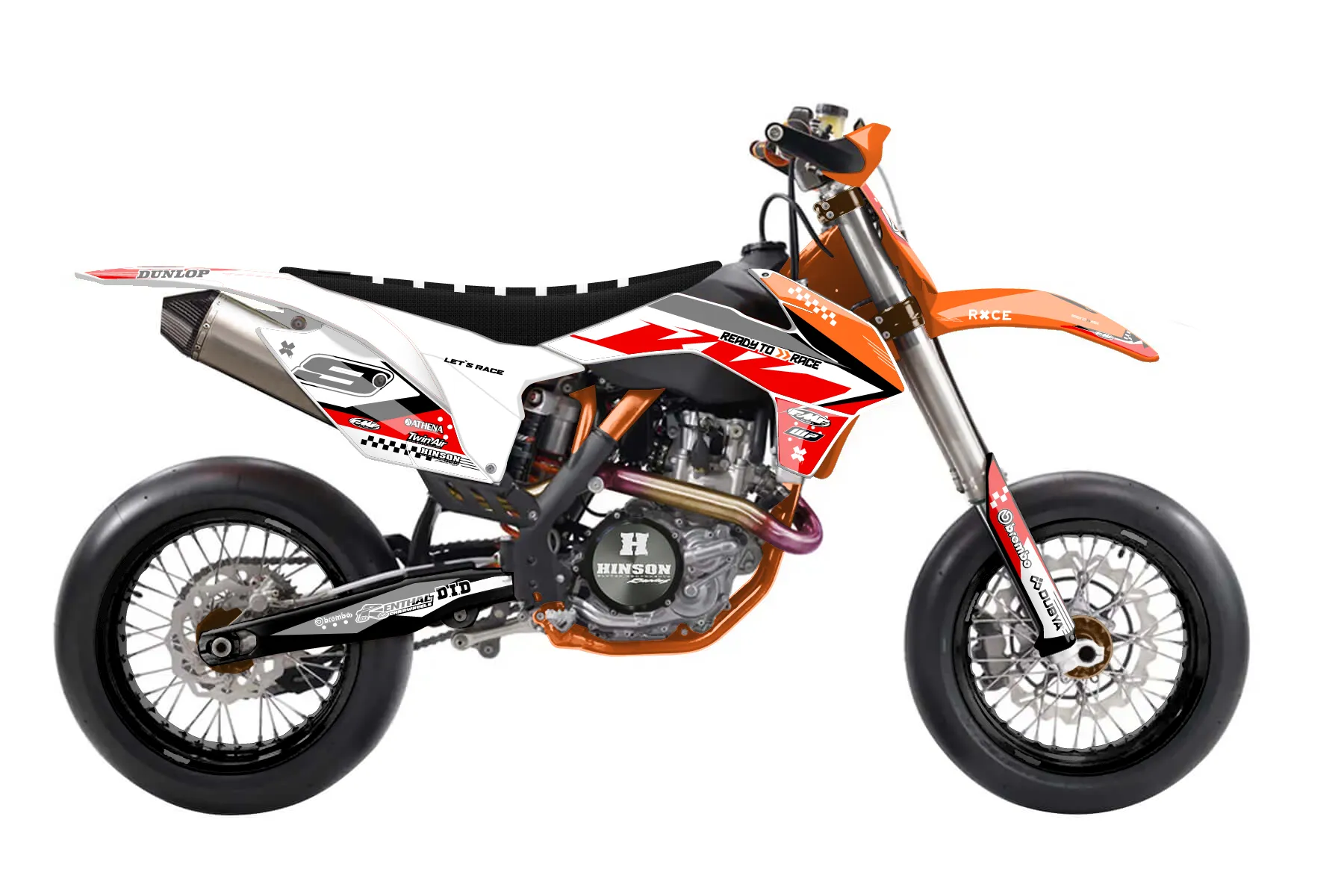 «Spirit» — готовый комплект графики серии Staple для KTM Supermoto KTM SMR 450 2013. В комплекте: графика на бак и боковые облицовки, крылья (переднее и заднее), передний щиток, номерные таблички, защита вилки. Материал: ПВХ-винил 80 мкр с холодной ламинацией 300 мкр, общая толщина 380 мкр; покрытие глянцевое или матовое на выбор. Устойчив к UV-излучению, воде, бензину и мойке высокого давления. Клей акриловый на сольвентной основе — постоянный, для гибких пластиков. На простых поверхностях монтируется без нагрева; для сложных изгибов рекомендуем фен. Этот пресет можно заказать как есть или взять за основу в конструкторе: поменять цвета, добавить стартовый номер и свой бренд. Производство — 3–5 рабочих дней, доставка по России СДЭКом или Почтой, по СНГ — курьерскими службами.