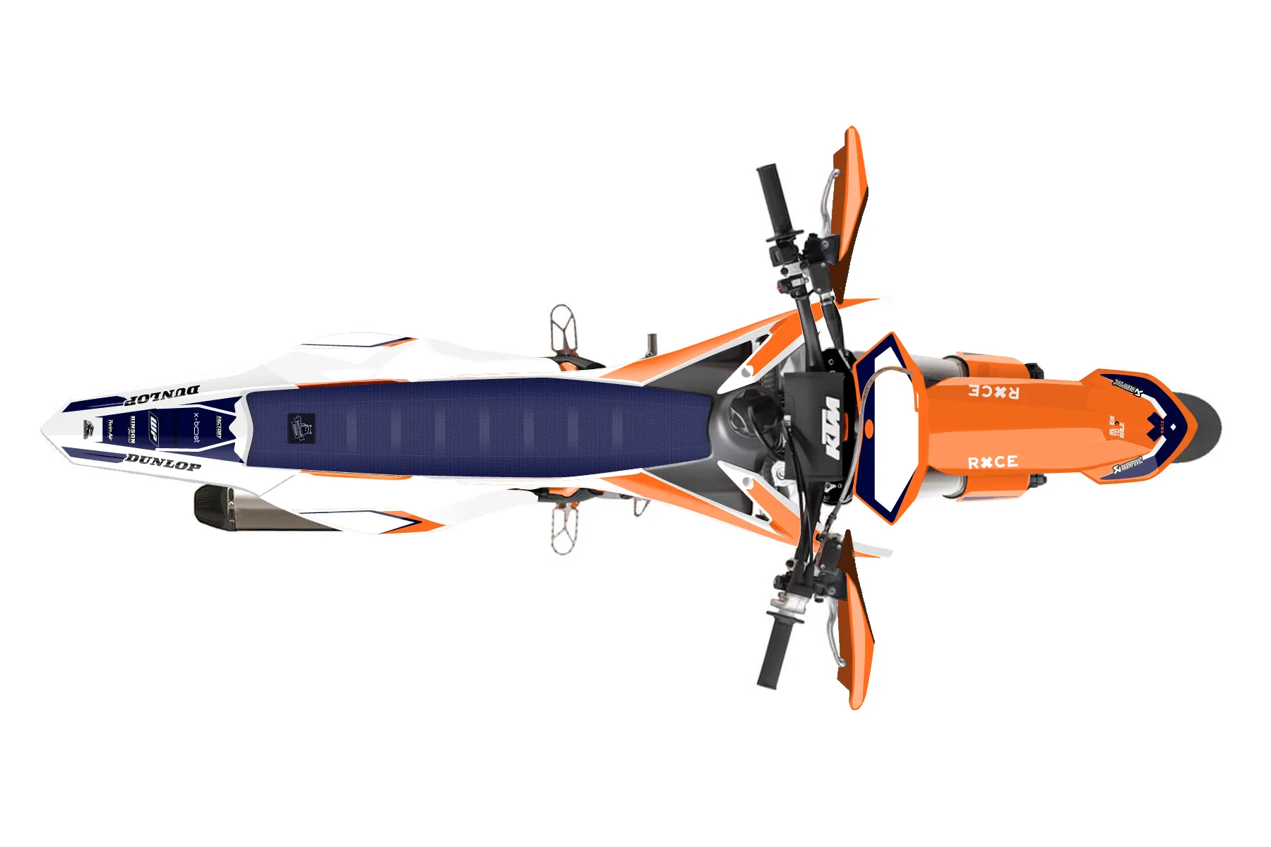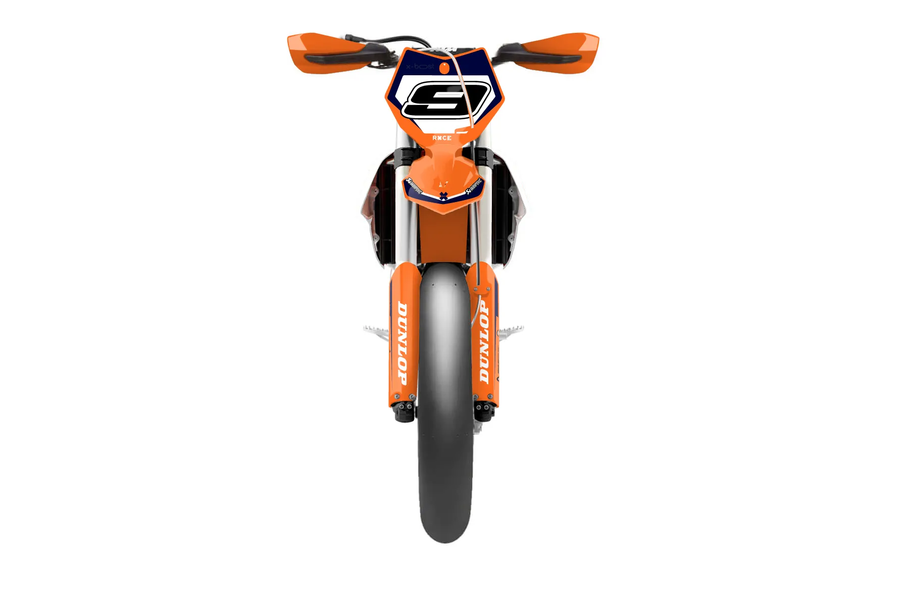 «Swoosh» — готовый комплект графики серии Staple для KTM Supermoto KTM SMR 450 2013. В комплекте: графика на бак и боковые облицовки, крылья (переднее и заднее), передний щиток, номерные таблички, защита вилки. Материал: ПВХ-винил 80 мкр с холодной ламинацией 300 мкр, общая толщина 380 мкр; покрытие глянцевое или матовое на выбор. Устойчив к UV-излучению, воде, бензину и мойке высокого давления. Клей акриловый на сольвентной основе — постоянный, для гибких пластиков. На простых поверхностях монтируется без нагрева; для сложных изгибов рекомендуем фен. Этот пресет можно заказать как есть или взять за основу в конструкторе: поменять цвета, добавить стартовый номер и свой бренд. Производство — 3–5 рабочих дней, доставка по России СДЭКом или Почтой, по СНГ — курьерскими службами.