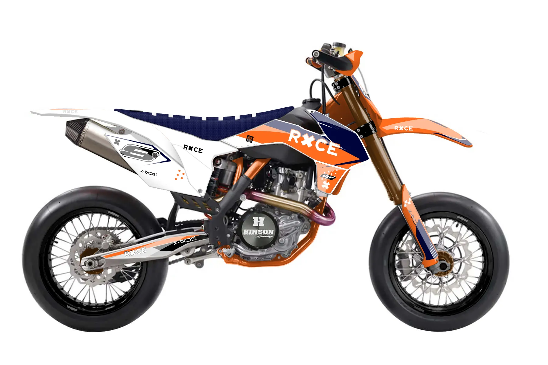 «Wrapper» — готовый комплект графики серии Staple для KTM Supermoto KTM SMR 450 2013. В комплекте: графика на бак и боковые облицовки, крылья (переднее и заднее), передний щиток, номерные таблички, защита вилки. Материал: ПВХ-винил 80 мкр с холодной ламинацией 300 мкр, общая толщина 380 мкр; покрытие глянцевое или матовое на выбор. Устойчив к UV-излучению, воде, бензину и мойке высокого давления. Клей акриловый на сольвентной основе — постоянный, для гибких пластиков. На простых поверхностях монтируется без нагрева; для сложных изгибов рекомендуем фен. Этот пресет можно заказать как есть или взять за основу в конструкторе: поменять цвета, добавить стартовый номер и свой бренд. Производство — 3–5 рабочих дней, доставка по России СДЭКом или Почтой, по СНГ — курьерскими службами.