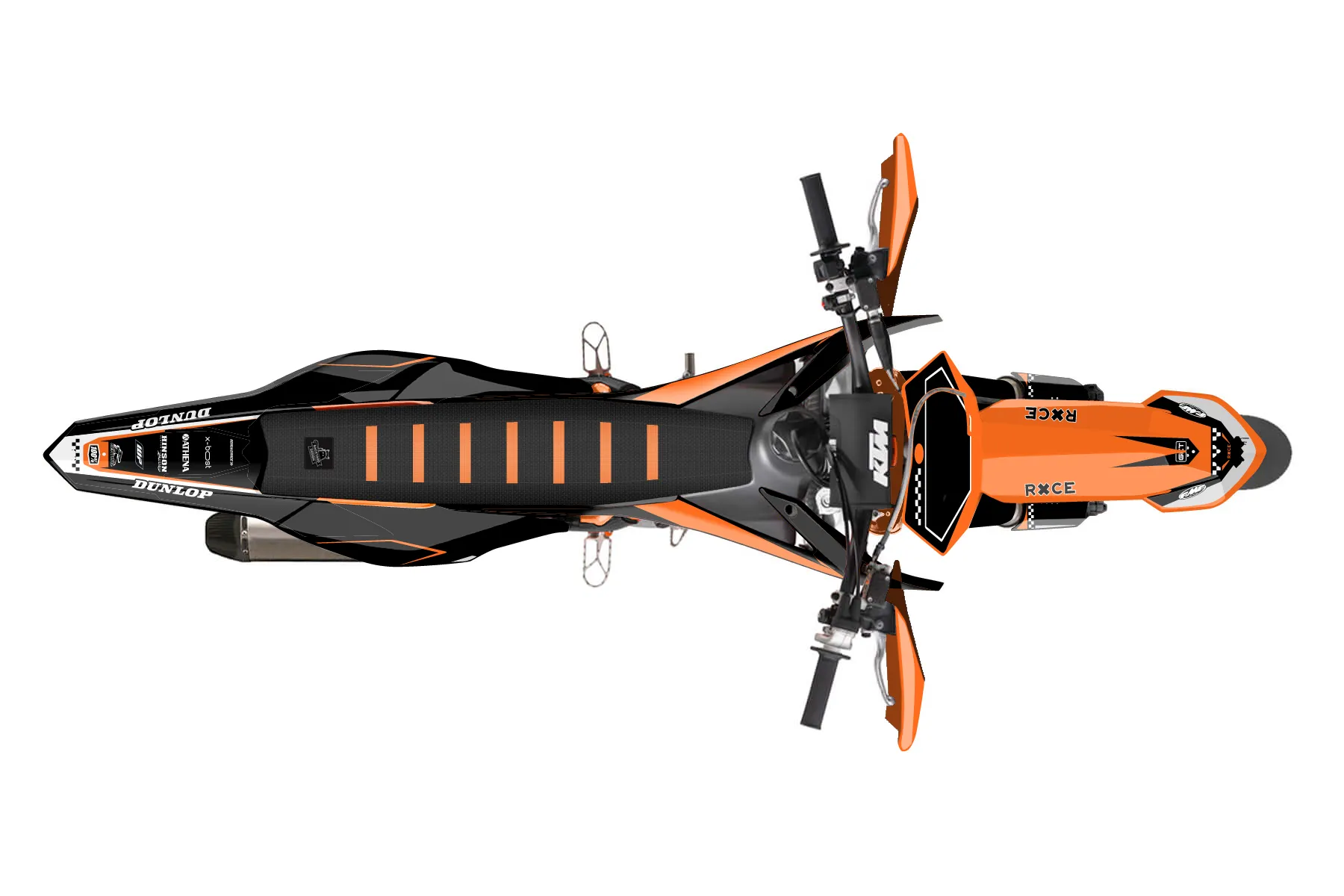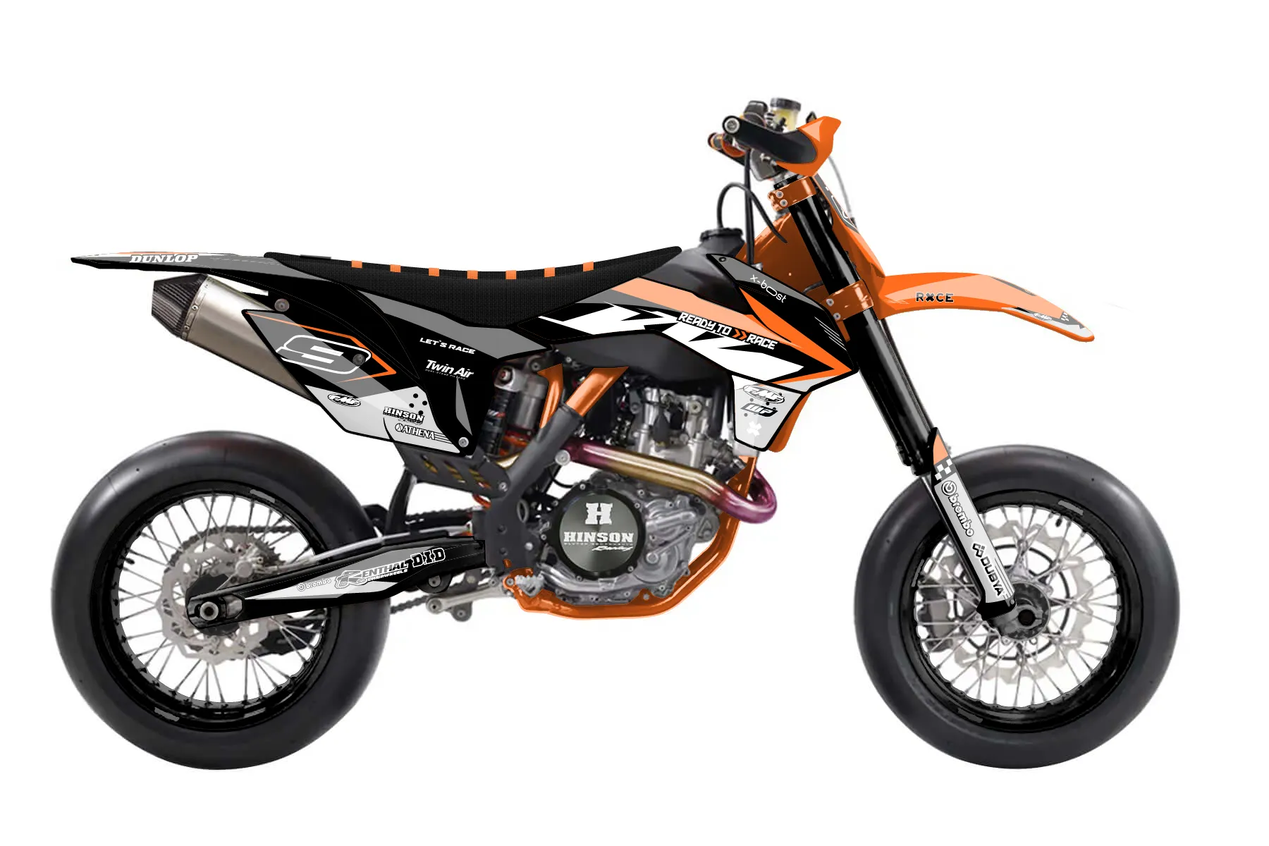 «Zebra» — готовый комплект графики серии Staple для KTM Supermoto KTM SMR 450 2013. В комплекте: графика на бак и боковые облицовки, крылья (переднее и заднее), передний щиток, номерные таблички, защита вилки. Материал: ПВХ-винил 80 мкр с холодной ламинацией 300 мкр, общая толщина 380 мкр; покрытие глянцевое или матовое на выбор. Устойчив к UV-излучению, воде, бензину и мойке высокого давления. Клей акриловый на сольвентной основе — постоянный, для гибких пластиков. На простых поверхностях монтируется без нагрева; для сложных изгибов рекомендуем фен. Этот пресет можно заказать как есть или взять за основу в конструкторе: поменять цвета, добавить стартовый номер и свой бренд. Производство — 3–5 рабочих дней, доставка по России СДЭКом или Почтой, по СНГ — курьерскими службами.
