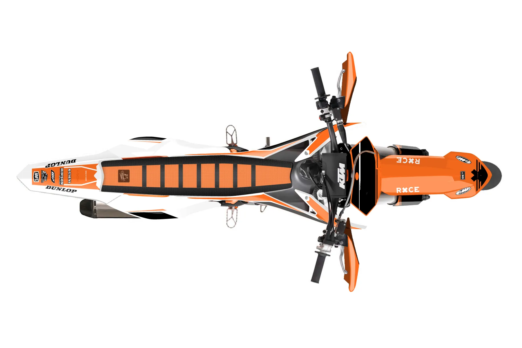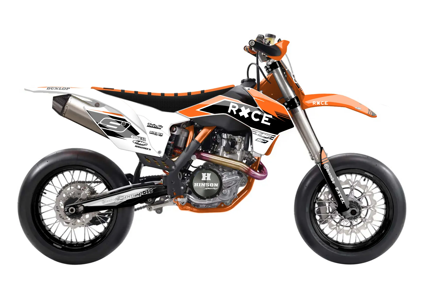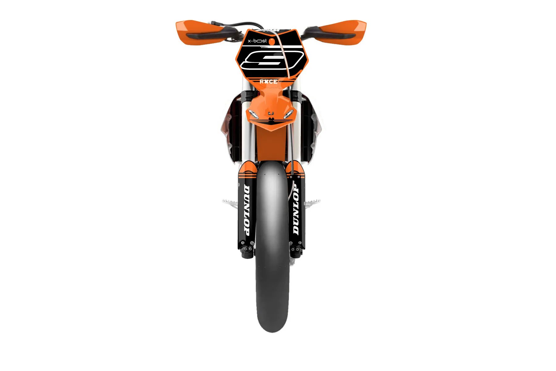 «Crowning» — готовый комплект графики серии Untucked для KTM Supermoto KTM SMR 450 2013. В комплекте: графика на бак и боковые облицовки, крылья (переднее и заднее), передний щиток, номерные таблички, защита вилки. Материал: ПВХ-винил 80 мкр с холодной ламинацией 300 мкр, общая толщина 380 мкр; покрытие глянцевое или матовое на выбор. Устойчив к UV-излучению, воде, бензину и мойке высокого давления. Клей акриловый на сольвентной основе — постоянный, для гибких пластиков. На простых поверхностях монтируется без нагрева; для сложных изгибов рекомендуем фен. Этот пресет можно заказать как есть или взять за основу в конструкторе: поменять цвета, добавить стартовый номер и свой бренд. Производство — 3–5 рабочих дней, доставка по России СДЭКом или Почтой, по СНГ — курьерскими службами.