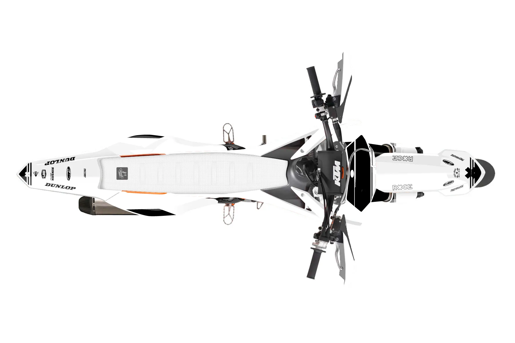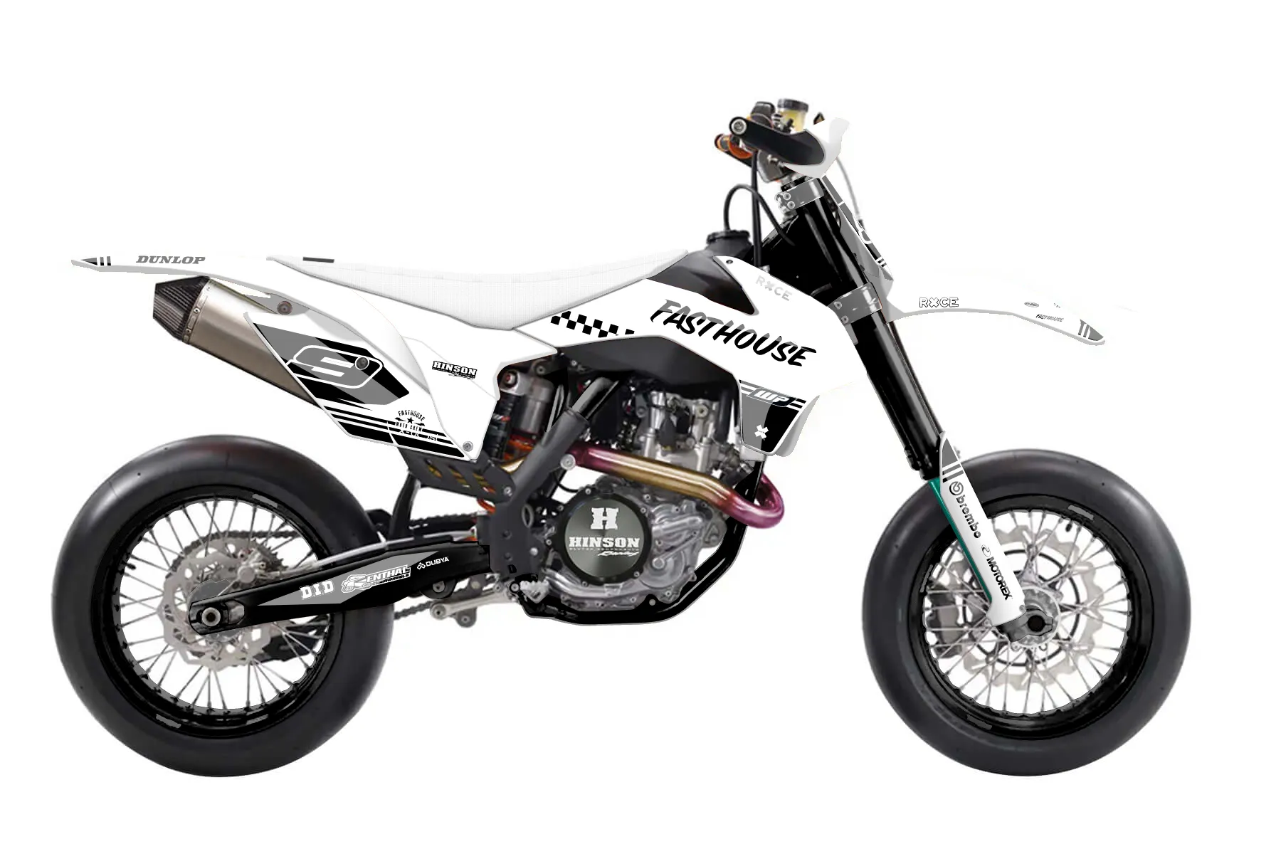 «DesignHouse» — готовый комплект графики серии Untucked для KTM Supermoto KTM SMR 450 2013. В комплекте: графика на бак и боковые облицовки, крылья (переднее и заднее), передний щиток, номерные таблички, защита вилки. Материал: ПВХ-винил 80 мкр с холодной ламинацией 300 мкр, общая толщина 380 мкр; покрытие глянцевое или матовое на выбор. Устойчив к UV-излучению, воде, бензину и мойке высокого давления. Клей акриловый на сольвентной основе — постоянный, для гибких пластиков. На простых поверхностях монтируется без нагрева; для сложных изгибов рекомендуем фен. Этот пресет можно заказать как есть или взять за основу в конструкторе: поменять цвета, добавить стартовый номер и свой бренд. Производство — 3–5 рабочих дней, доставка по России СДЭКом или Почтой, по СНГ — курьерскими службами.