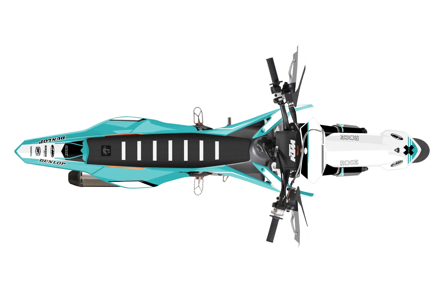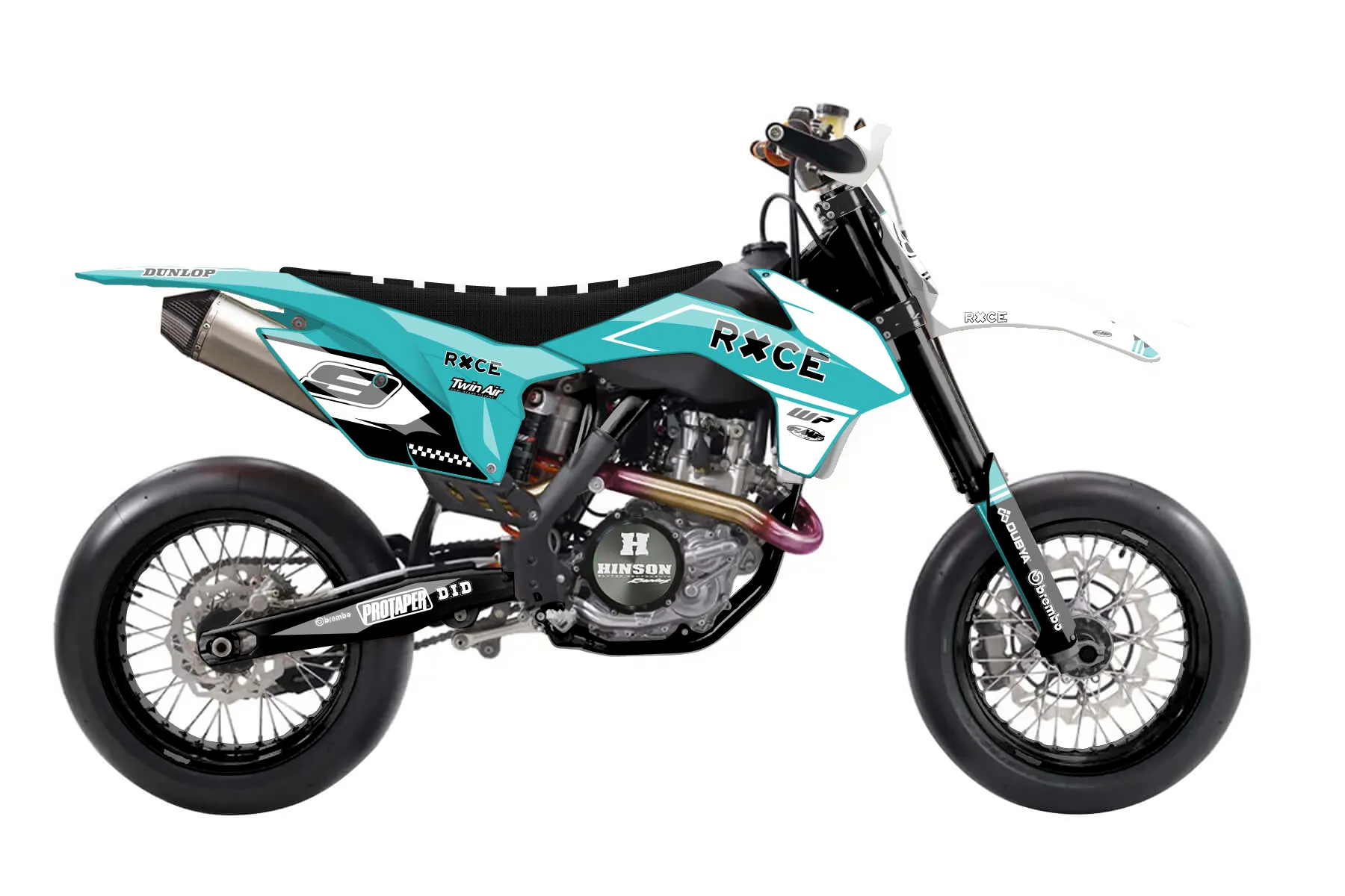 «Dynamic» — готовый комплект графики серии Untucked для KTM Supermoto KTM SMR 450 2013. В комплекте: графика на бак и боковые облицовки, крылья (переднее и заднее), передний щиток, номерные таблички, защита вилки. Материал: ПВХ-винил 80 мкр с холодной ламинацией 300 мкр, общая толщина 380 мкр; покрытие глянцевое или матовое на выбор. Устойчив к UV-излучению, воде, бензину и мойке высокого давления. Клей акриловый на сольвентной основе — постоянный, для гибких пластиков. На простых поверхностях монтируется без нагрева; для сложных изгибов рекомендуем фен. Этот пресет можно заказать как есть или взять за основу в конструкторе: поменять цвета, добавить стартовый номер и свой бренд. Производство — 3–5 рабочих дней, доставка по России СДЭКом или Почтой, по СНГ — курьерскими службами.