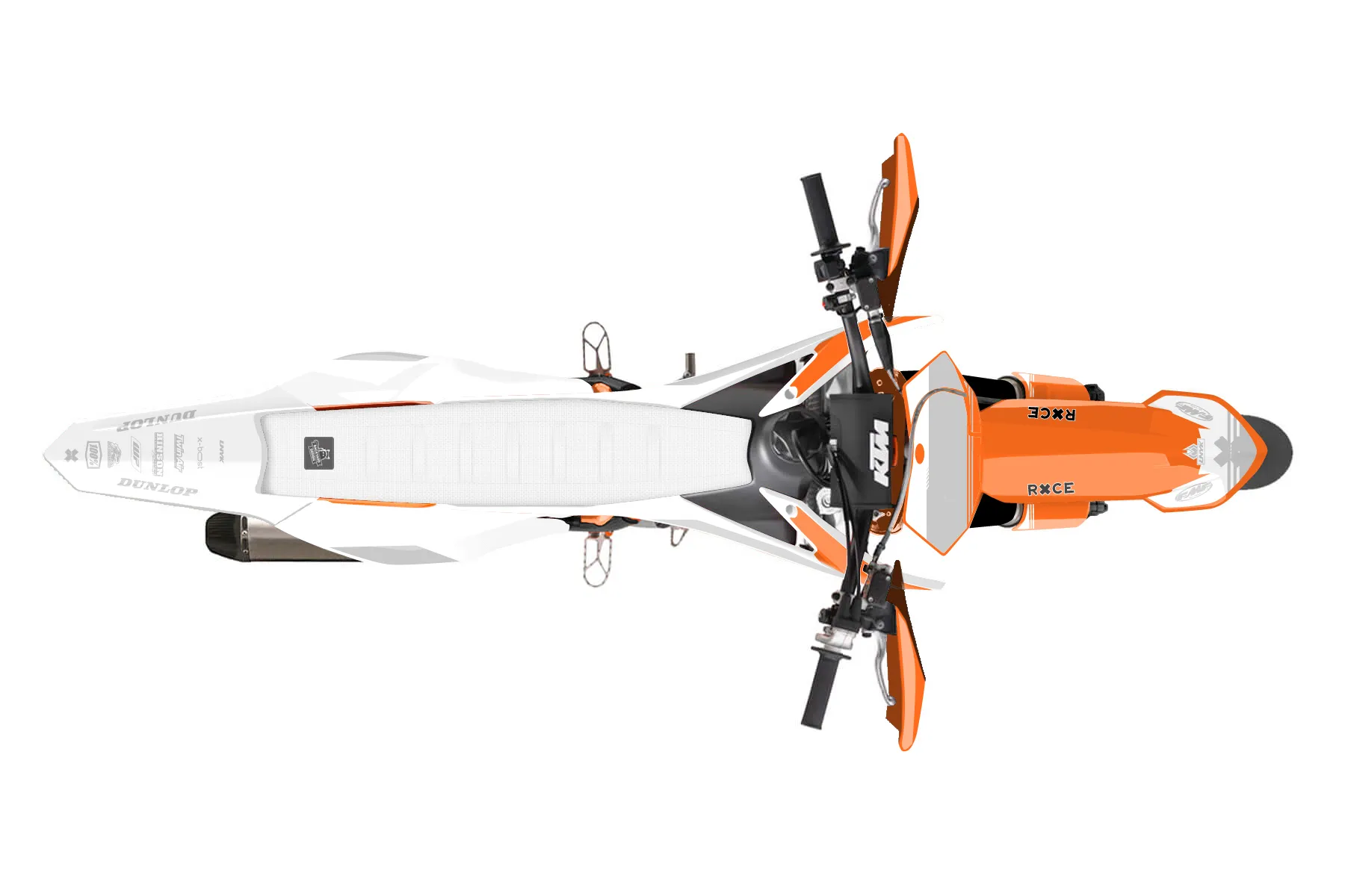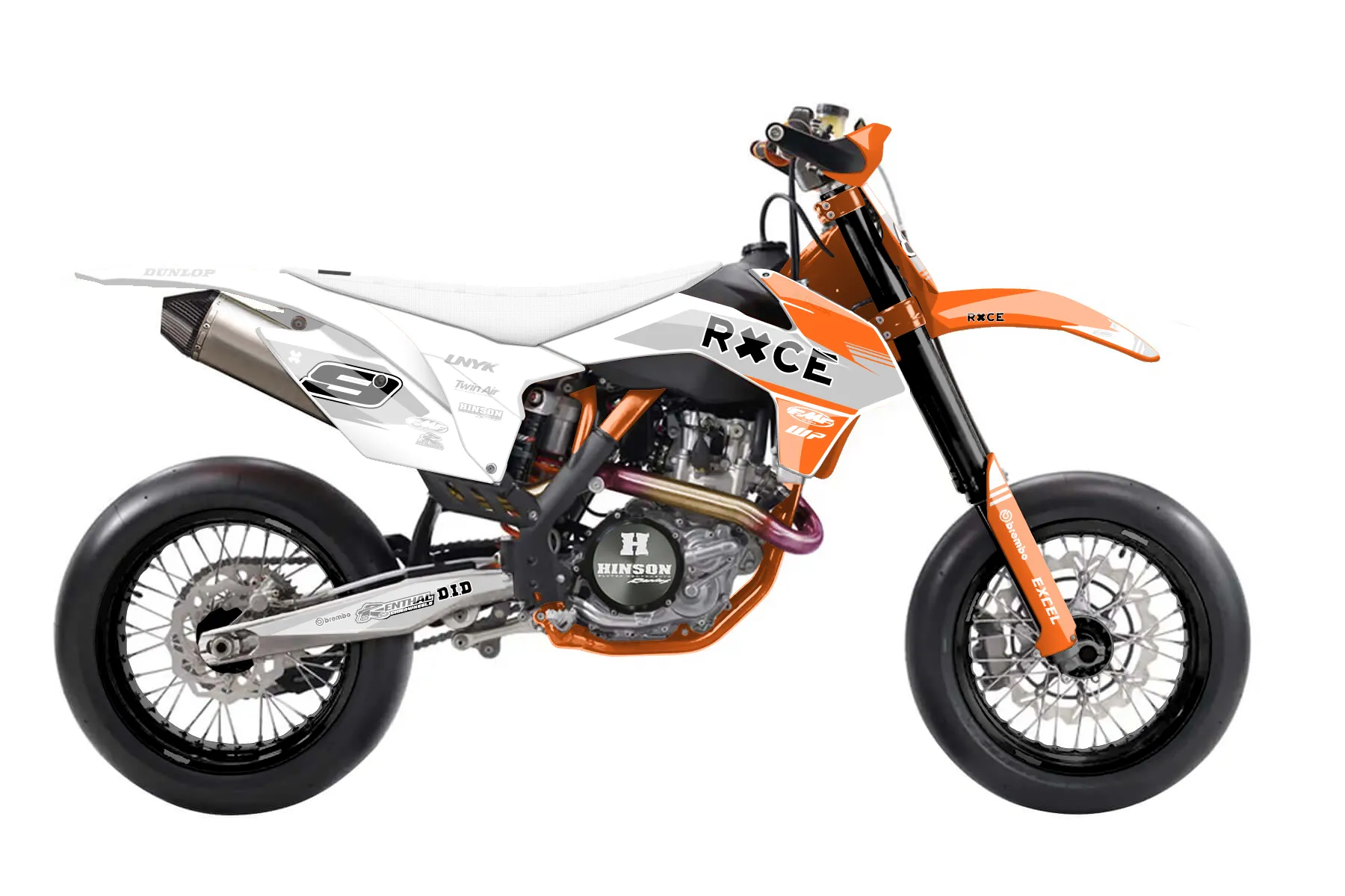 «Flying» — готовый комплект графики серии Untucked для KTM Supermoto KTM SMR 450 2013. В комплекте: графика на бак и боковые облицовки, крылья (переднее и заднее), передний щиток, номерные таблички, защита вилки. Материал: ПВХ-винил 80 мкр с холодной ламинацией 300 мкр, общая толщина 380 мкр; покрытие глянцевое или матовое на выбор. Устойчив к UV-излучению, воде, бензину и мойке высокого давления. Клей акриловый на сольвентной основе — постоянный, для гибких пластиков. На простых поверхностях монтируется без нагрева; для сложных изгибов рекомендуем фен. Этот пресет можно заказать как есть или взять за основу в конструкторе: поменять цвета, добавить стартовый номер и свой бренд. Производство — 3–5 рабочих дней, доставка по России СДЭКом или Почтой, по СНГ — курьерскими службами.