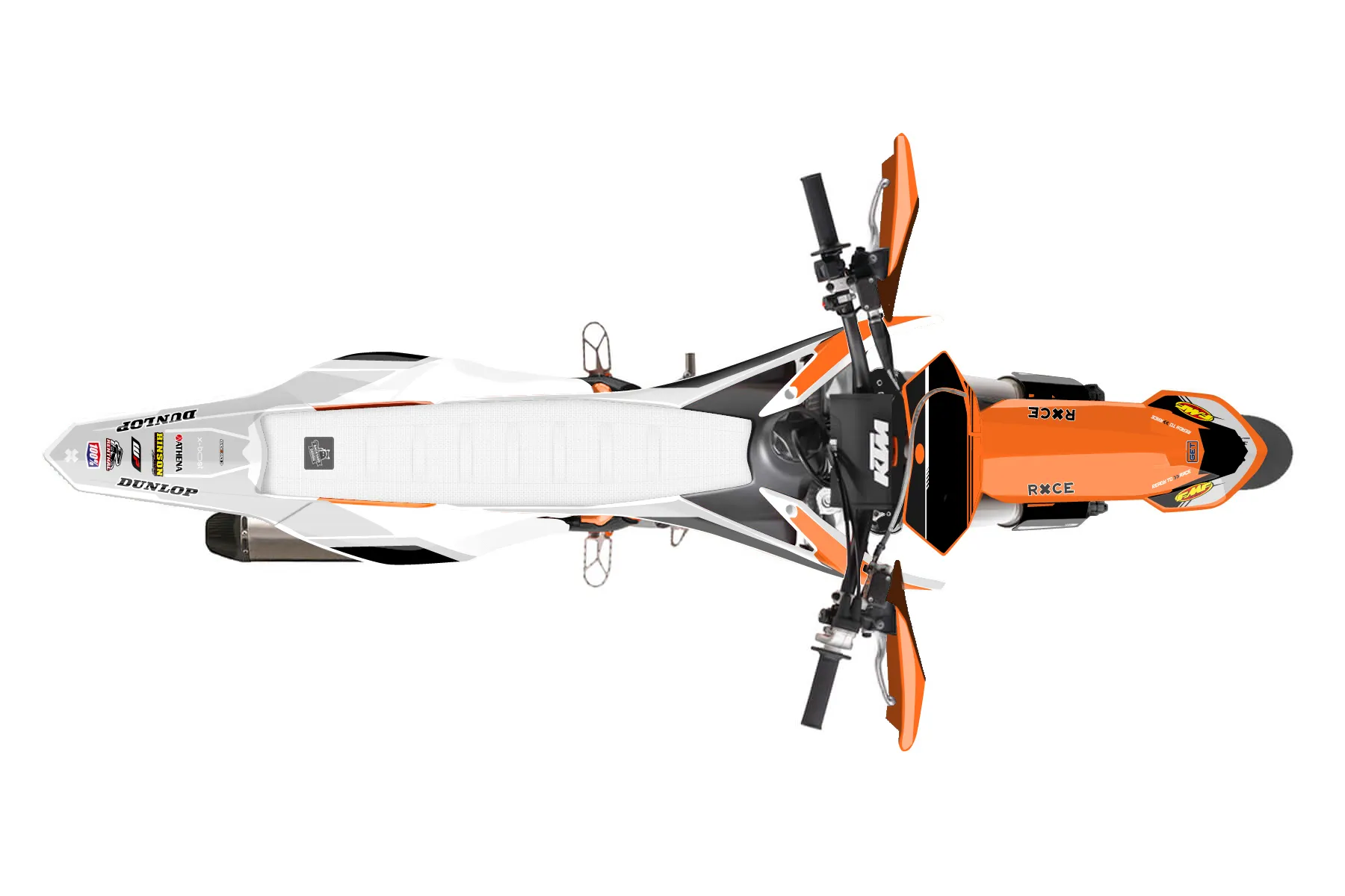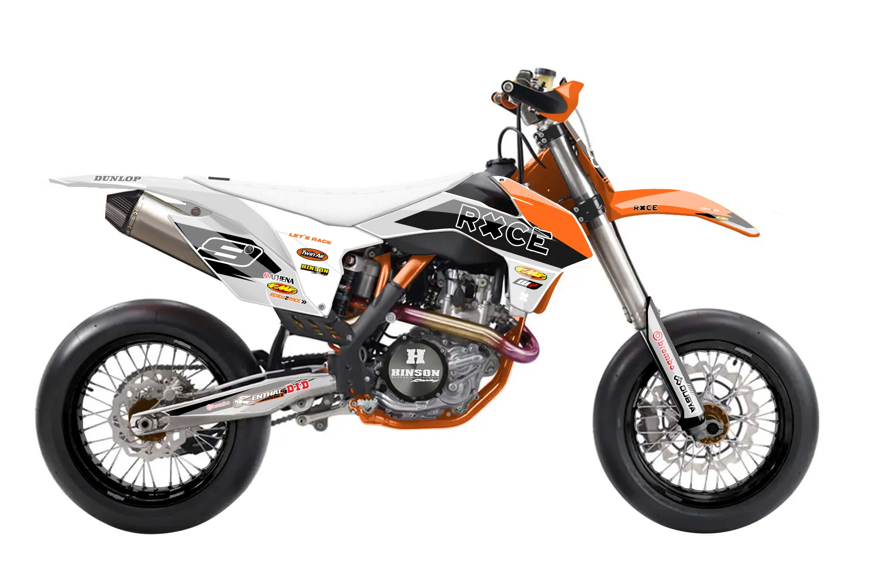 «Illusison» — готовый комплект графики серии Untucked для KTM Supermoto KTM SMR 450 2013. В комплекте: графика на бак и боковые облицовки, крылья (переднее и заднее), передний щиток, номерные таблички, защита вилки. Материал: ПВХ-винил 80 мкр с холодной ламинацией 300 мкр, общая толщина 380 мкр; покрытие глянцевое или матовое на выбор. Устойчив к UV-излучению, воде, бензину и мойке высокого давления. Клей акриловый на сольвентной основе — постоянный, для гибких пластиков. На простых поверхностях монтируется без нагрева; для сложных изгибов рекомендуем фен. Этот пресет можно заказать как есть или взять за основу в конструкторе: поменять цвета, добавить стартовый номер и свой бренд. Производство — 3–5 рабочих дней, доставка по России СДЭКом или Почтой, по СНГ — курьерскими службами.