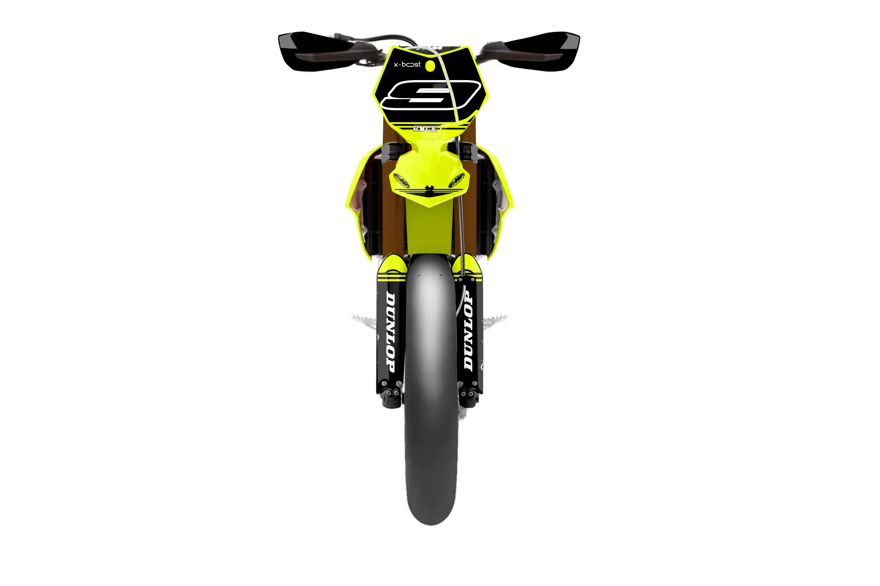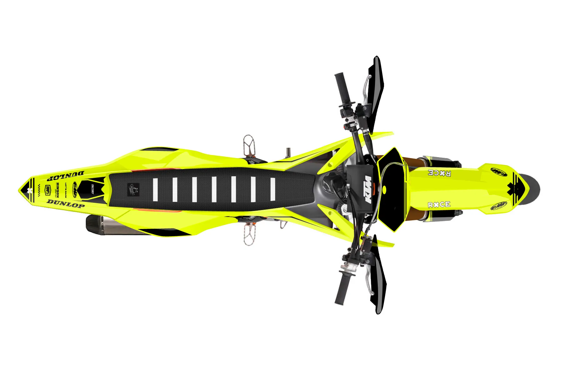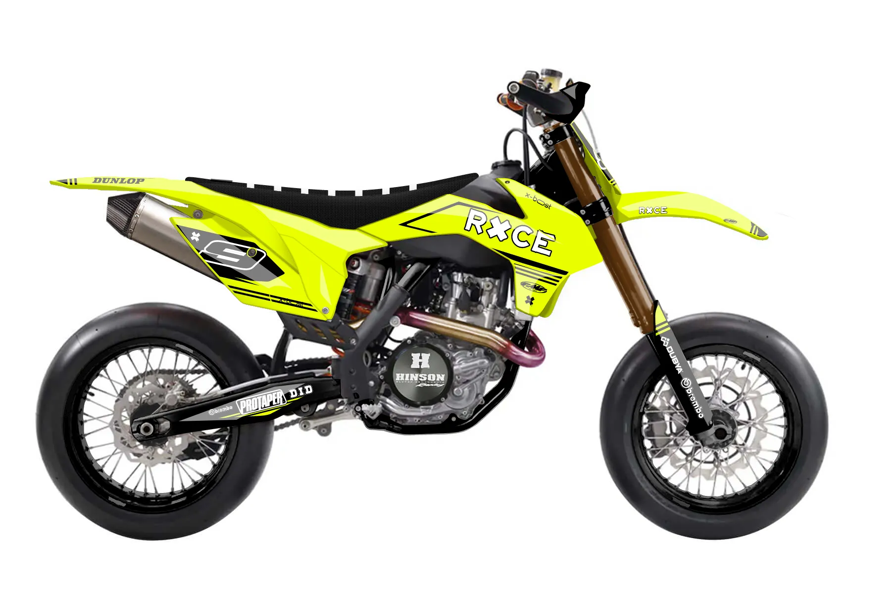 «Loose Neon» — готовый комплект графики серии Untucked для KTM Supermoto KTM SMR 450 2013. В комплекте: графика на бак и боковые облицовки, крылья (переднее и заднее), передний щиток, номерные таблички, защита вилки. Материал: ПВХ-винил 80 мкр с холодной ламинацией 300 мкр, общая толщина 380 мкр; покрытие глянцевое или матовое на выбор. Устойчив к UV-излучению, воде, бензину и мойке высокого давления. Клей акриловый на сольвентной основе — постоянный, для гибких пластиков. На простых поверхностях монтируется без нагрева; для сложных изгибов рекомендуем фен. Этот пресет можно заказать как есть или взять за основу в конструкторе: поменять цвета, добавить стартовый номер и свой бренд. Производство — 3–5 рабочих дней, доставка по России СДЭКом или Почтой, по СНГ — курьерскими службами.