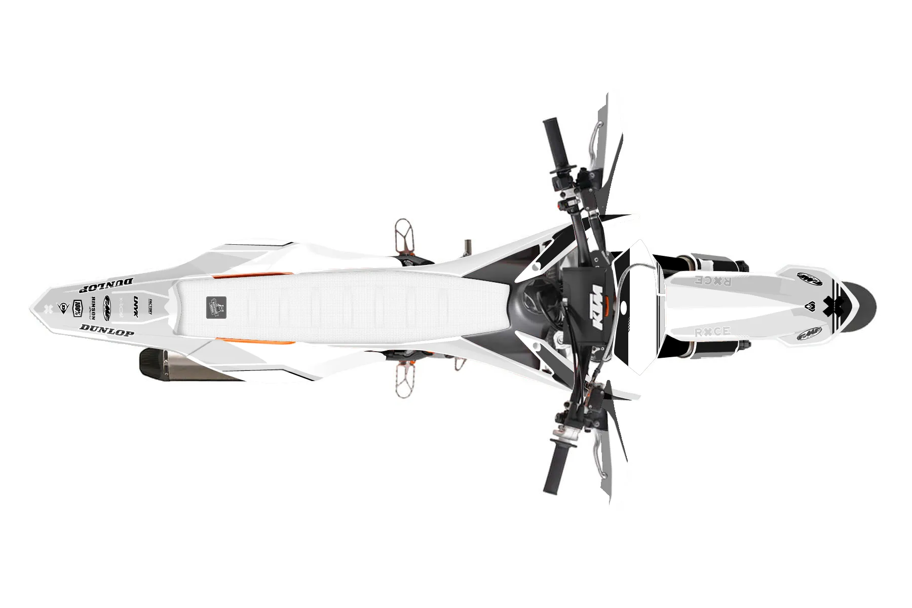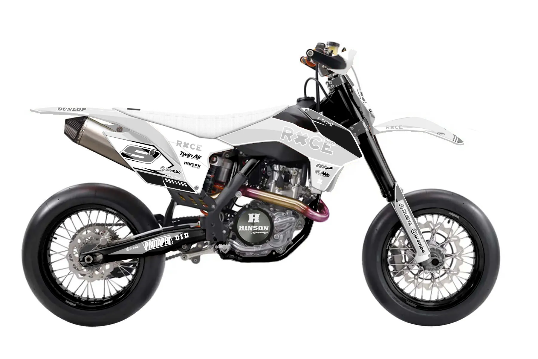 «Nifty» — готовый комплект графики серии Untucked для KTM Supermoto KTM SMR 450 2013. В комплекте: графика на бак и боковые облицовки, крылья (переднее и заднее), передний щиток, номерные таблички, защита вилки. Материал: ПВХ-винил 80 мкр с холодной ламинацией 300 мкр, общая толщина 380 мкр; покрытие глянцевое или матовое на выбор. Устойчив к UV-излучению, воде, бензину и мойке высокого давления. Клей акриловый на сольвентной основе — постоянный, для гибких пластиков. На простых поверхностях монтируется без нагрева; для сложных изгибов рекомендуем фен. Этот пресет можно заказать как есть или взять за основу в конструкторе: поменять цвета, добавить стартовый номер и свой бренд. Производство — 3–5 рабочих дней, доставка по России СДЭКом или Почтой, по СНГ — курьерскими службами.