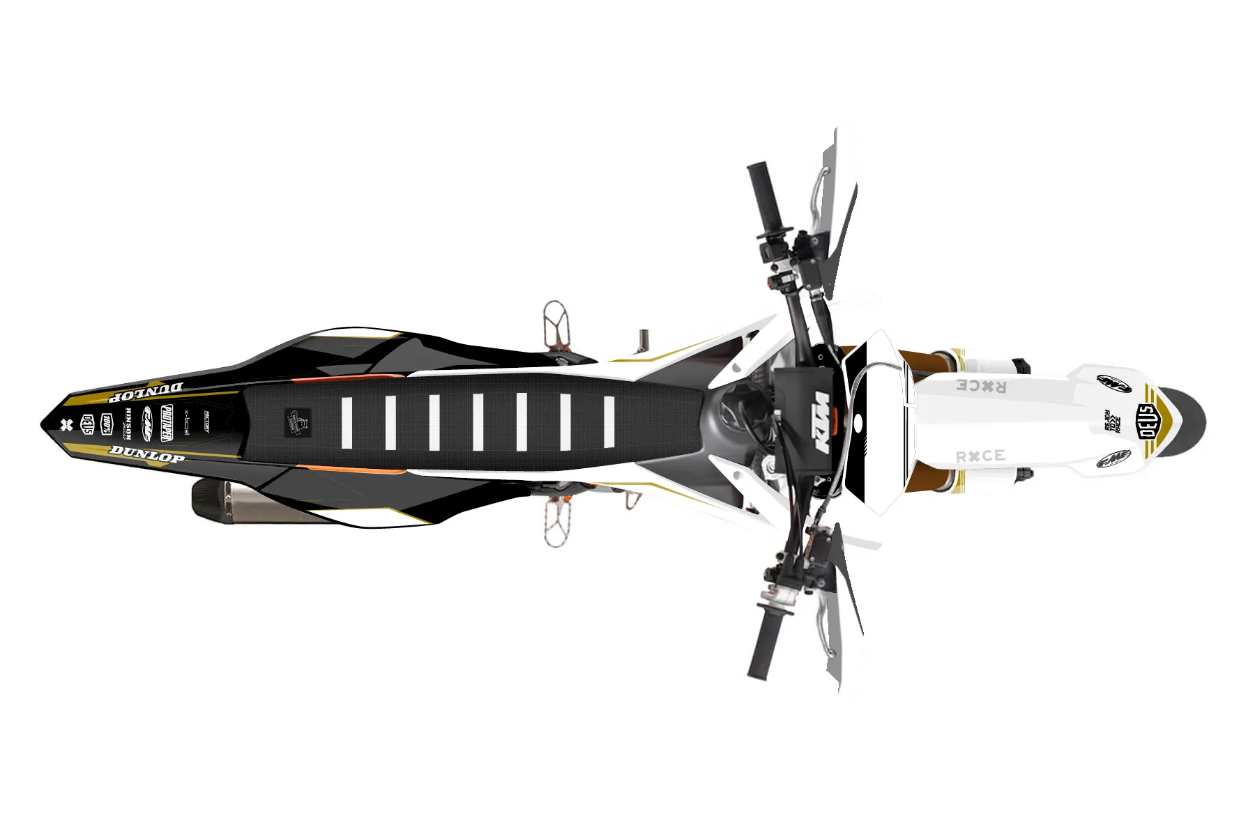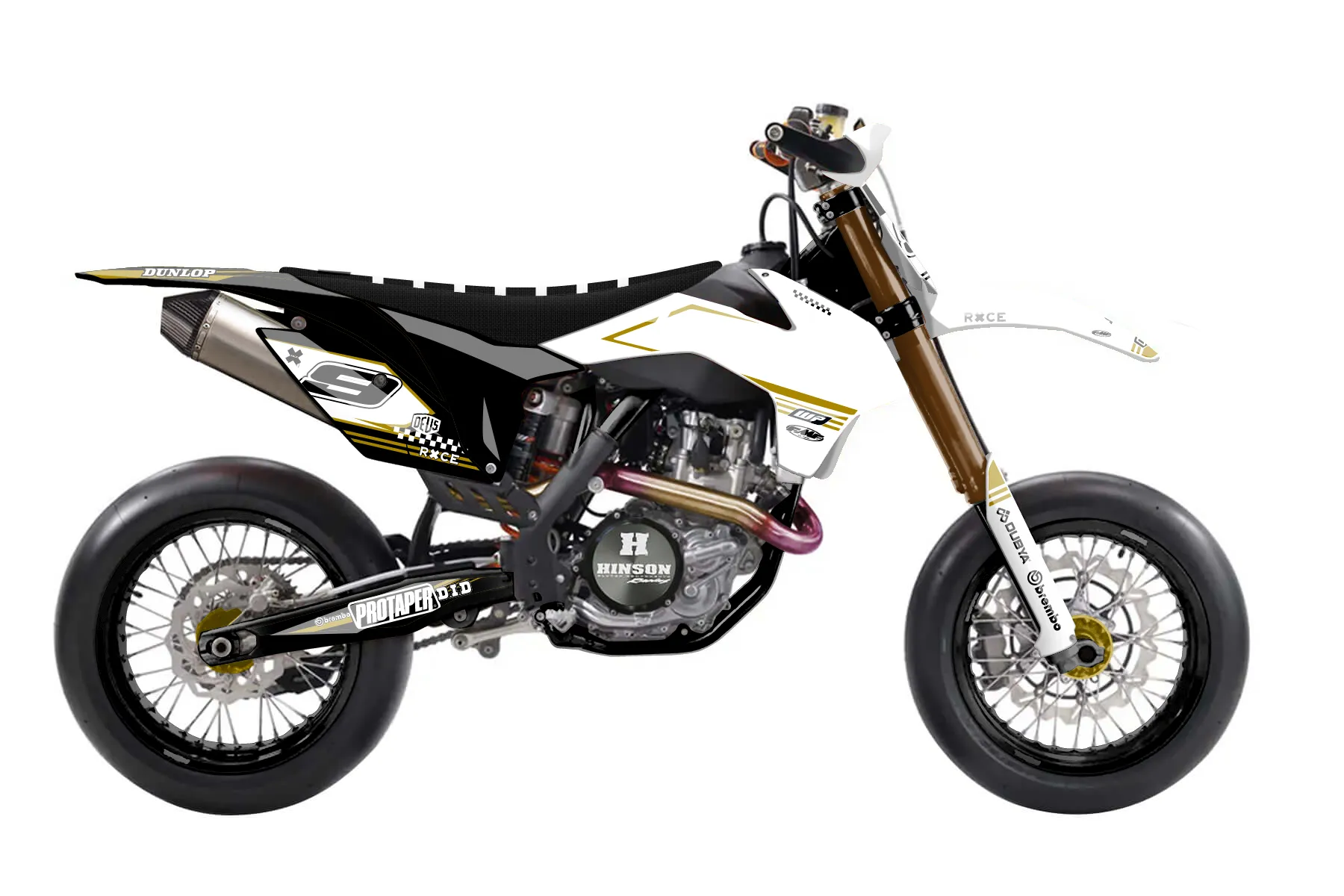 «Sharp» — готовый комплект графики серии Untucked для KTM Supermoto KTM SMR 450 2013. В комплекте: графика на бак и боковые облицовки, крылья (переднее и заднее), передний щиток, номерные таблички, защита вилки. Материал: ПВХ-винил 80 мкр с холодной ламинацией 300 мкр, общая толщина 380 мкр; покрытие глянцевое или матовое на выбор. Устойчив к UV-излучению, воде, бензину и мойке высокого давления. Клей акриловый на сольвентной основе — постоянный, для гибких пластиков. На простых поверхностях монтируется без нагрева; для сложных изгибов рекомендуем фен. Этот пресет можно заказать как есть или взять за основу в конструкторе: поменять цвета, добавить стартовый номер и свой бренд. Производство — 3–5 рабочих дней, доставка по России СДЭКом или Почтой, по СНГ — курьерскими службами.