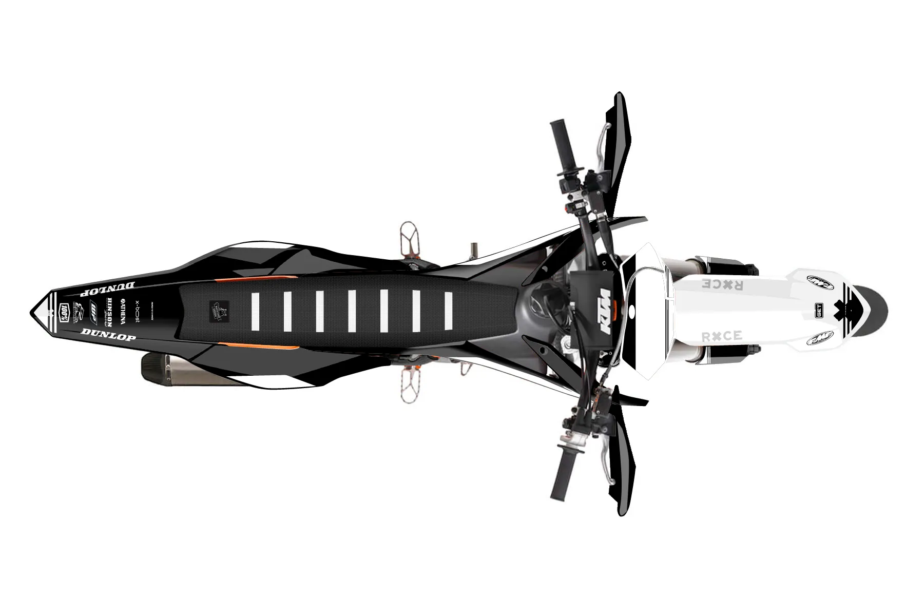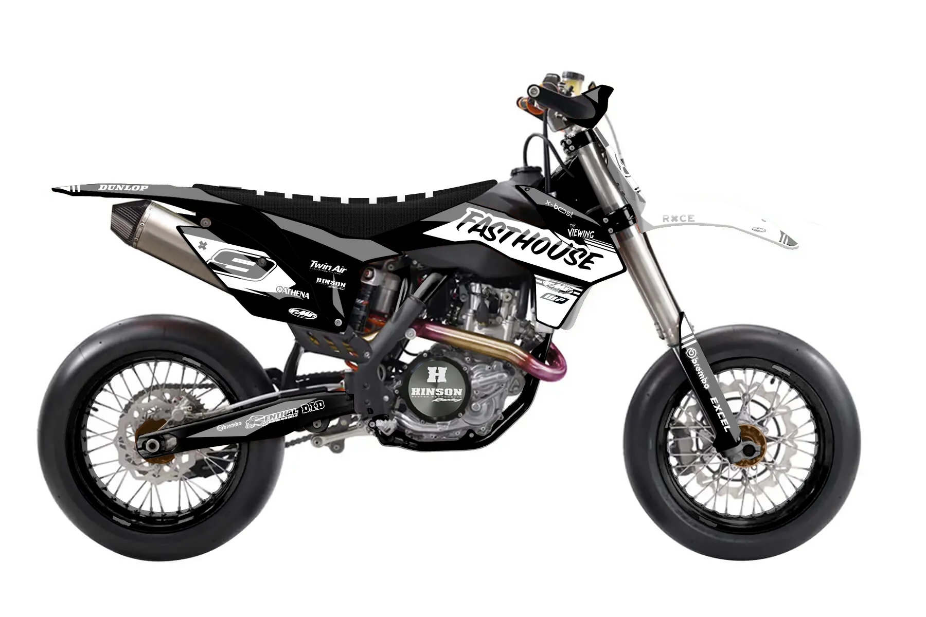 «Specific» — готовый комплект графики серии Untucked для KTM Supermoto KTM SMR 450 2013. В комплекте: графика на бак и боковые облицовки, крылья (переднее и заднее), передний щиток, номерные таблички, защита вилки. Материал: ПВХ-винил 80 мкр с холодной ламинацией 300 мкр, общая толщина 380 мкр; покрытие глянцевое или матовое на выбор. Устойчив к UV-излучению, воде, бензину и мойке высокого давления. Клей акриловый на сольвентной основе — постоянный, для гибких пластиков. На простых поверхностях монтируется без нагрева; для сложных изгибов рекомендуем фен. Этот пресет можно заказать как есть или взять за основу в конструкторе: поменять цвета, добавить стартовый номер и свой бренд. Производство — 3–5 рабочих дней, доставка по России СДЭКом или Почтой, по СНГ — курьерскими службами.