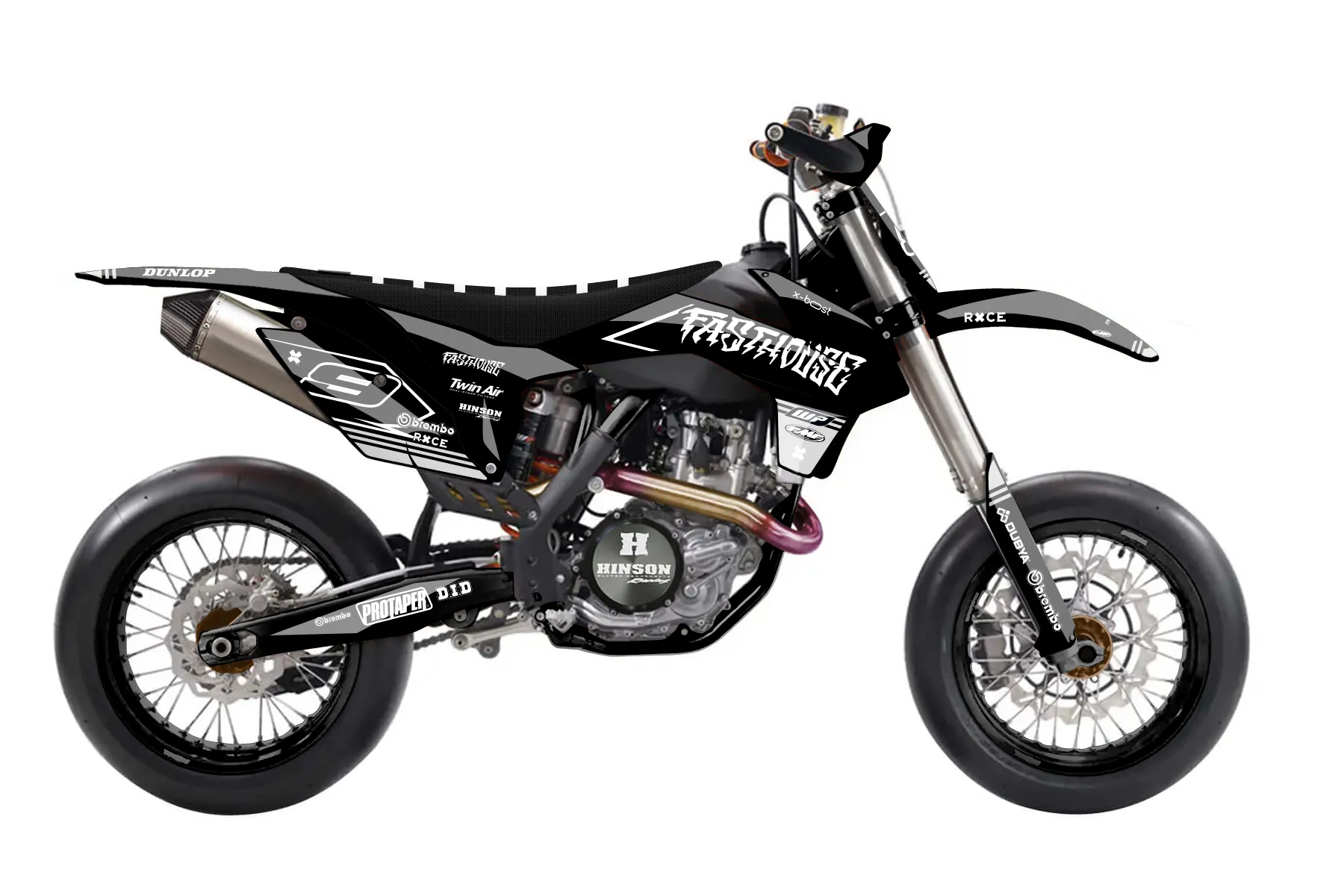 «Speedhouse» — готовый комплект графики серии Untucked для KTM Supermoto KTM SMR 450 2013. В комплекте: графика на бак и боковые облицовки, крылья (переднее и заднее), передний щиток, номерные таблички, защита вилки. Материал: ПВХ-винил 80 мкр с холодной ламинацией 300 мкр, общая толщина 380 мкр; покрытие глянцевое или матовое на выбор. Устойчив к UV-излучению, воде, бензину и мойке высокого давления. Клей акриловый на сольвентной основе — постоянный, для гибких пластиков. На простых поверхностях монтируется без нагрева; для сложных изгибов рекомендуем фен. Этот пресет можно заказать как есть или взять за основу в конструкторе: поменять цвета, добавить стартовый номер и свой бренд. Производство — 3–5 рабочих дней, доставка по России СДЭКом или Почтой, по СНГ — курьерскими службами.