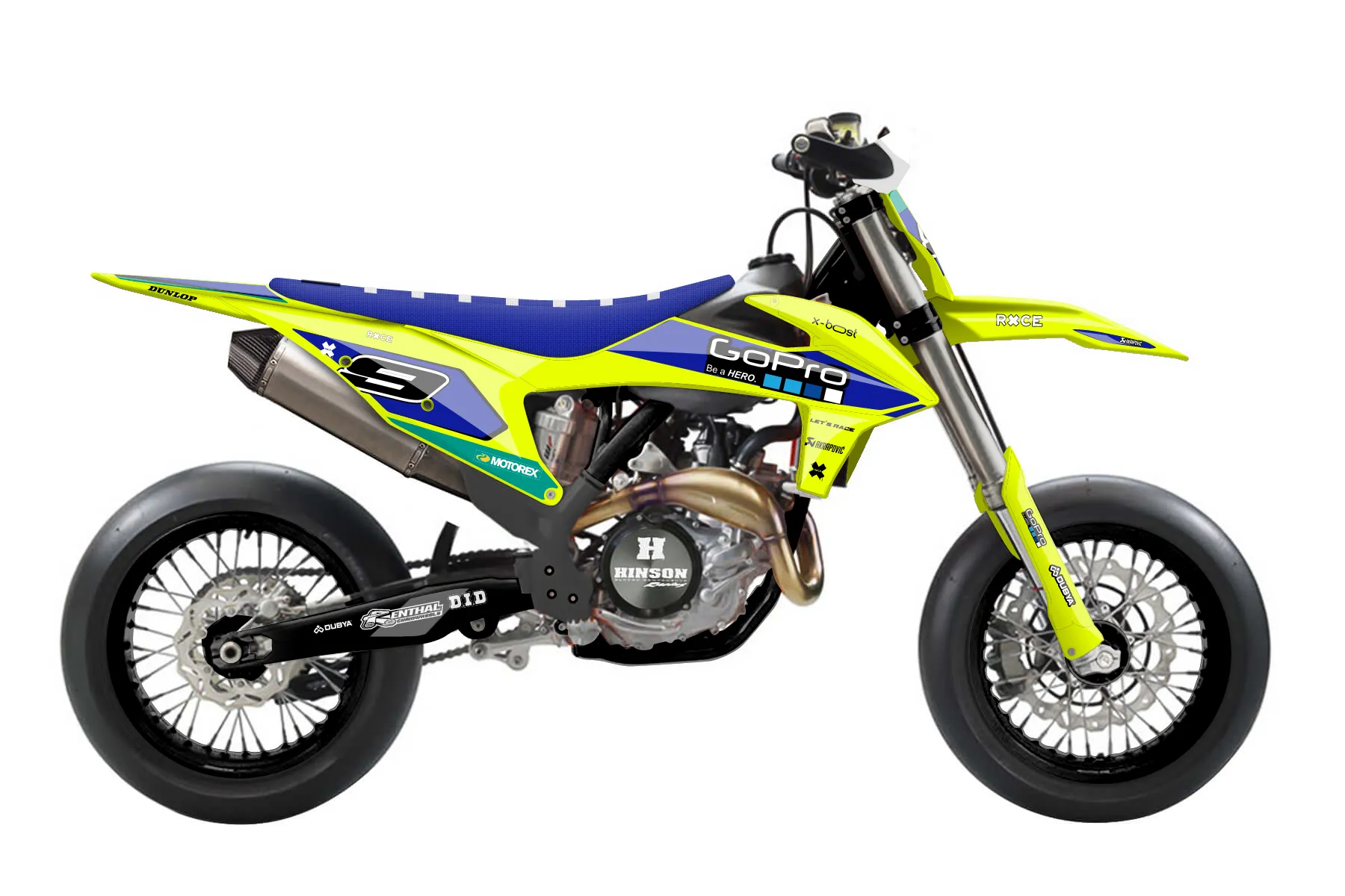 «Brilliant Neon» — готовый комплект графики серии Flow для KTM Supermoto KTM SMR 450 2021. В комплекте: графика на бак и боковые облицовки, крылья (переднее и заднее), передний щиток, номерные таблички, защита вилки. Материал: ПВХ-винил 80 мкр с холодной ламинацией 300 мкр, общая толщина 380 мкр; покрытие глянцевое или матовое на выбор. Устойчив к UV-излучению, воде, бензину и мойке высокого давления. Клей акриловый на сольвентной основе — постоянный, для гибких пластиков. На простых поверхностях монтируется без нагрева; для сложных изгибов рекомендуем фен. Этот пресет можно заказать как есть или взять за основу в конструкторе: поменять цвета, добавить стартовый номер и свой бренд. Производство — 3–5 рабочих дней, доставка по России СДЭКом или Почтой, по СНГ — курьерскими службами.