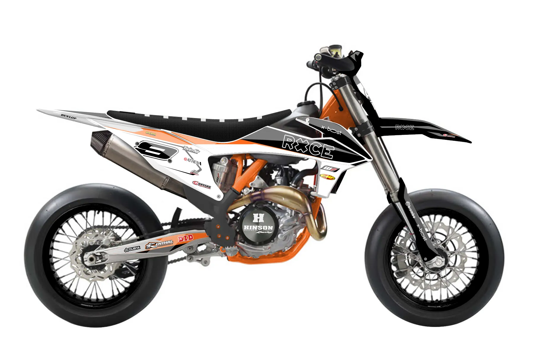 «Dew» — готовый комплект графики серии Flow для KTM Supermoto KTM SMR 450 2021. В комплекте: графика на бак и боковые облицовки, крылья (переднее и заднее), передний щиток, номерные таблички, защита вилки. Материал: ПВХ-винил 80 мкр с холодной ламинацией 300 мкр, общая толщина 380 мкр; покрытие глянцевое или матовое на выбор. Устойчив к UV-излучению, воде, бензину и мойке высокого давления. Клей акриловый на сольвентной основе — постоянный, для гибких пластиков. На простых поверхностях монтируется без нагрева; для сложных изгибов рекомендуем фен. Этот пресет можно заказать как есть или взять за основу в конструкторе: поменять цвета, добавить стартовый номер и свой бренд. Производство — 3–5 рабочих дней, доставка по России СДЭКом или Почтой, по СНГ — курьерскими службами.