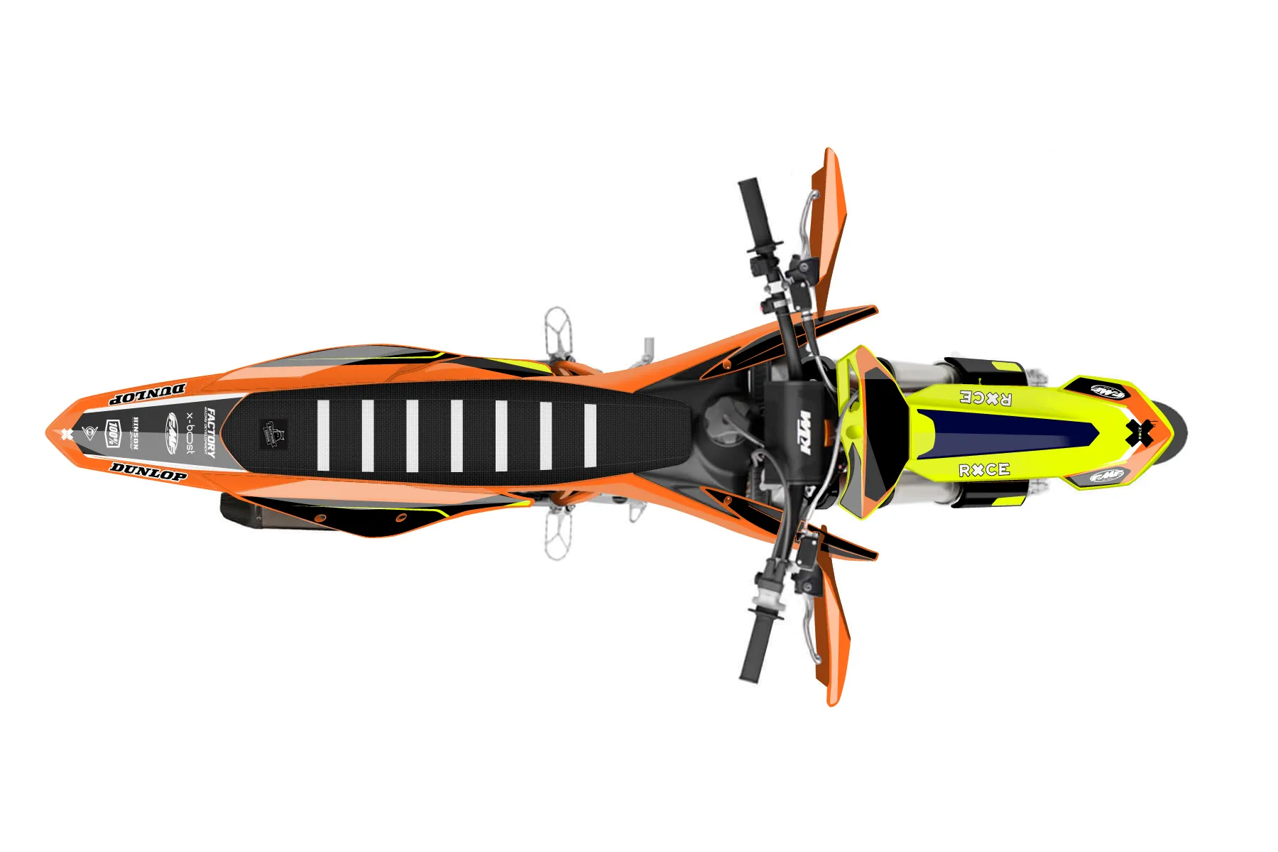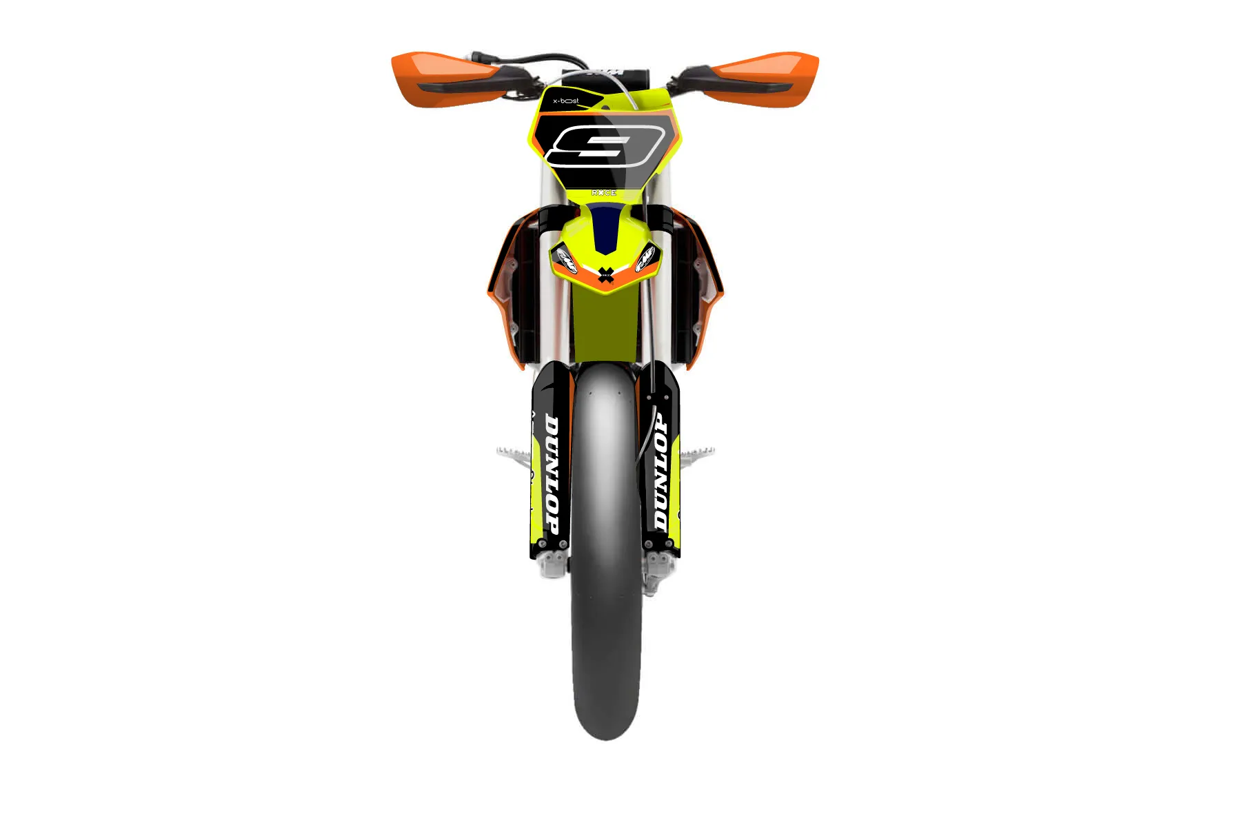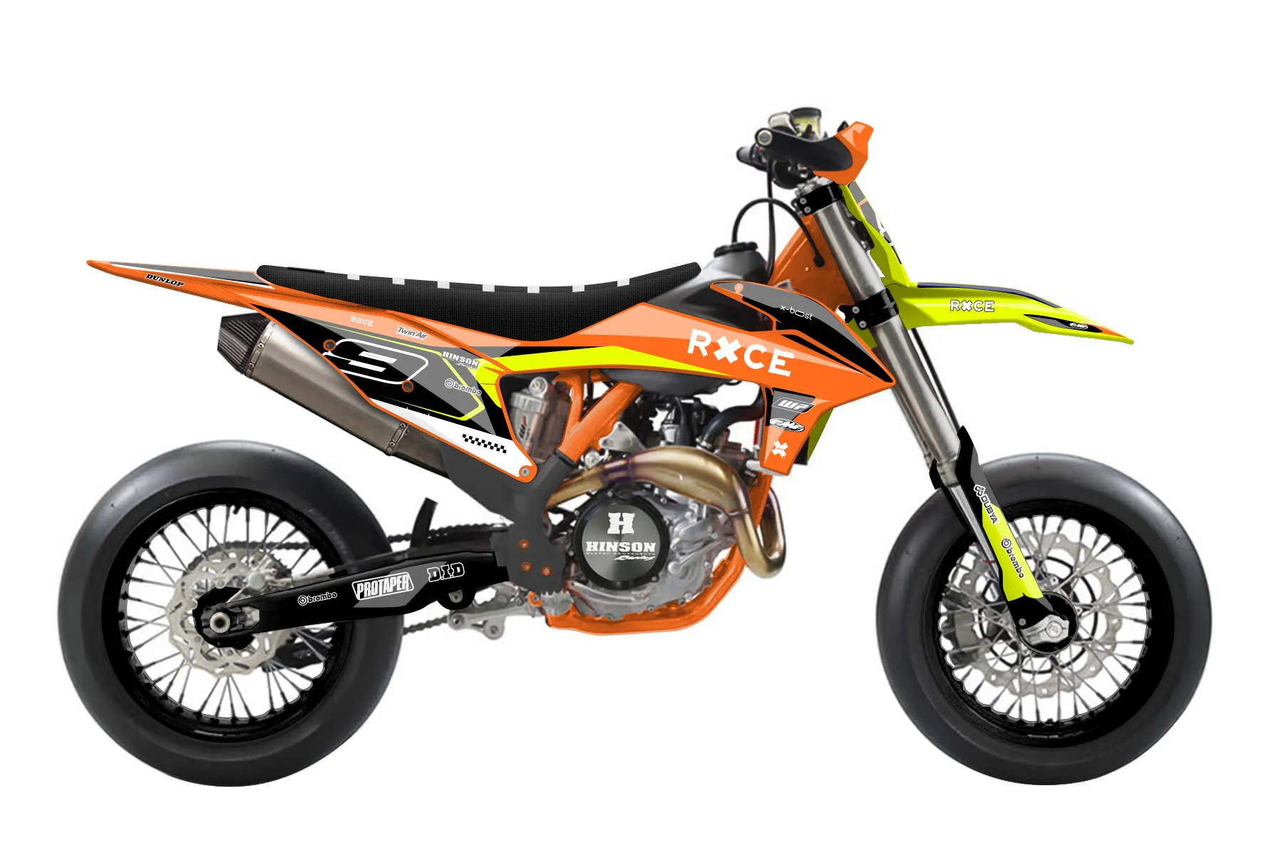 «Fluorescent» — готовый комплект графики серии Flow для KTM Supermoto KTM SMR 450 2021. В комплекте: графика на бак и боковые облицовки, крылья (переднее и заднее), передний щиток, номерные таблички, защита вилки. Материал: ПВХ-винил 80 мкр с холодной ламинацией 300 мкр, общая толщина 380 мкр; покрытие глянцевое или матовое на выбор. Устойчив к UV-излучению, воде, бензину и мойке высокого давления. Клей акриловый на сольвентной основе — постоянный, для гибких пластиков. На простых поверхностях монтируется без нагрева; для сложных изгибов рекомендуем фен. Этот пресет можно заказать как есть или взять за основу в конструкторе: поменять цвета, добавить стартовый номер и свой бренд. Производство — 3–5 рабочих дней, доставка по России СДЭКом или Почтой, по СНГ — курьерскими службами.