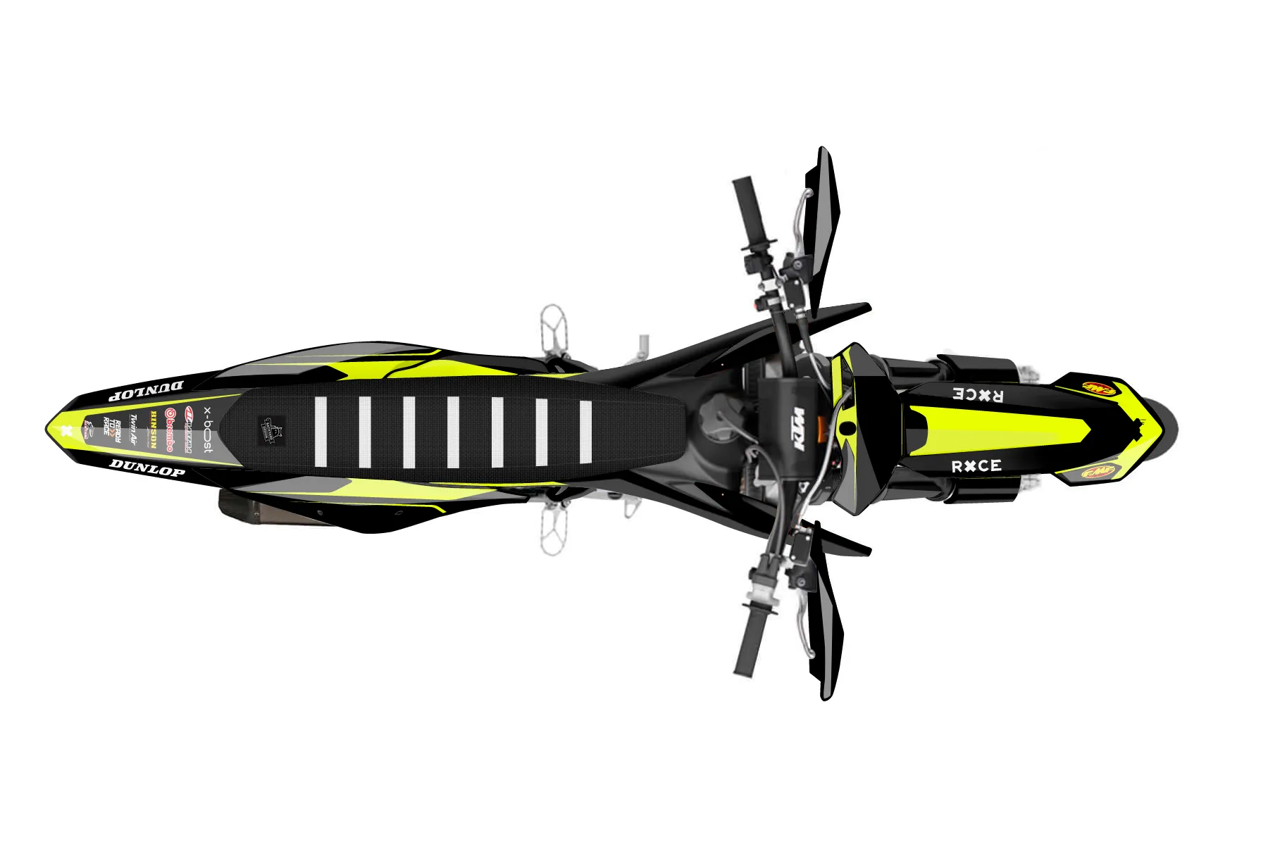 «Form» — готовый комплект графики серии Flow для KTM Supermoto KTM SMR 450 2021. В комплекте: графика на бак и боковые облицовки, крылья (переднее и заднее), передний щиток, номерные таблички, защита вилки. Материал: ПВХ-винил 80 мкр с холодной ламинацией 300 мкр, общая толщина 380 мкр; покрытие глянцевое или матовое на выбор. Устойчив к UV-излучению, воде, бензину и мойке высокого давления. Клей акриловый на сольвентной основе — постоянный, для гибких пластиков. На простых поверхностях монтируется без нагрева; для сложных изгибов рекомендуем фен. Этот пресет можно заказать как есть или взять за основу в конструкторе: поменять цвета, добавить стартовый номер и свой бренд. Производство — 3–5 рабочих дней, доставка по России СДЭКом или Почтой, по СНГ — курьерскими службами.