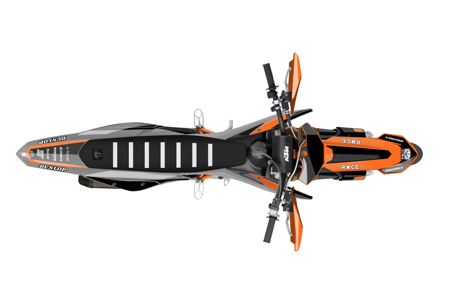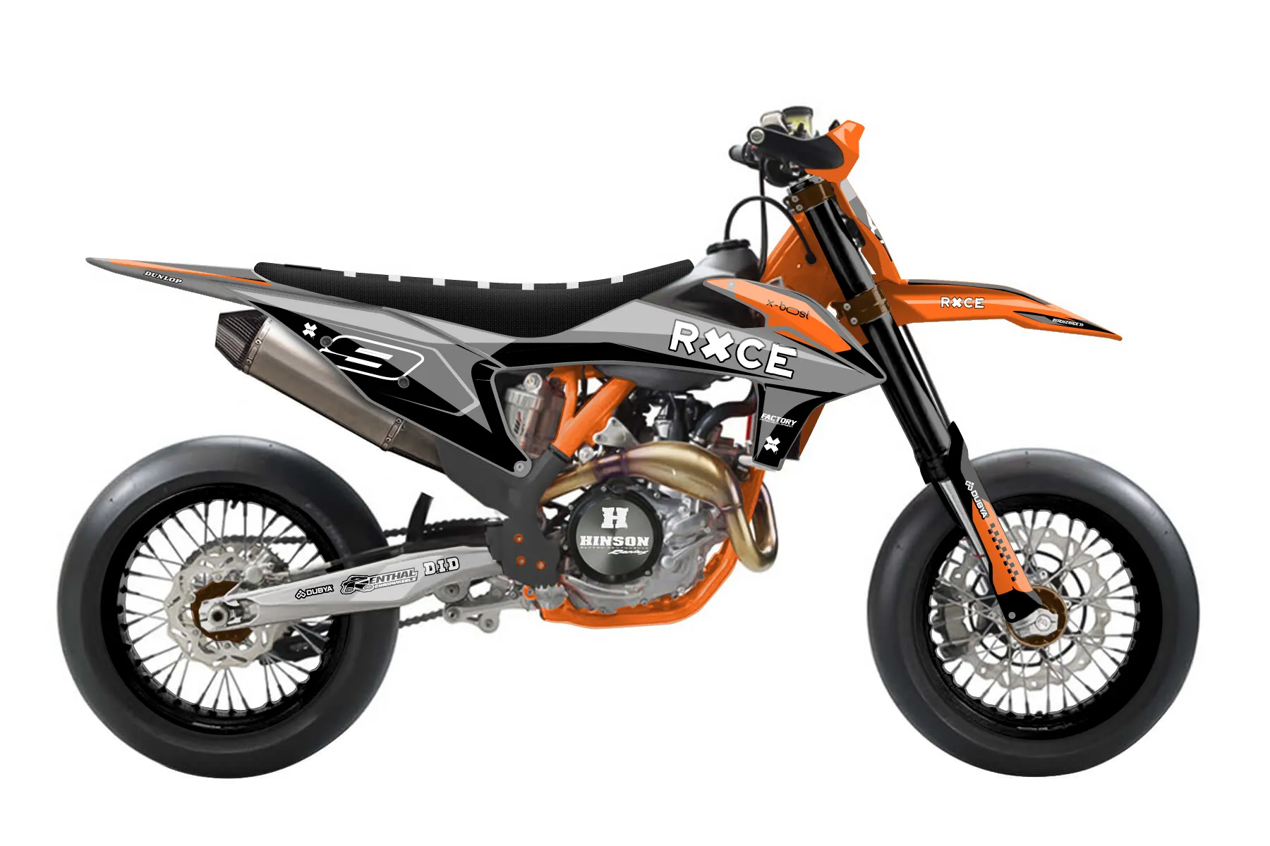«Global» — готовый комплект графики серии Flow для KTM Supermoto KTM SMR 450 2021. В комплекте: графика на бак и боковые облицовки, крылья (переднее и заднее), передний щиток, номерные таблички, защита вилки. Материал: ПВХ-винил 80 мкр с холодной ламинацией 300 мкр, общая толщина 380 мкр; покрытие глянцевое или матовое на выбор. Устойчив к UV-излучению, воде, бензину и мойке высокого давления. Клей акриловый на сольвентной основе — постоянный, для гибких пластиков. На простых поверхностях монтируется без нагрева; для сложных изгибов рекомендуем фен. Этот пресет можно заказать как есть или взять за основу в конструкторе: поменять цвета, добавить стартовый номер и свой бренд. Производство — 3–5 рабочих дней, доставка по России СДЭКом или Почтой, по СНГ — курьерскими службами.