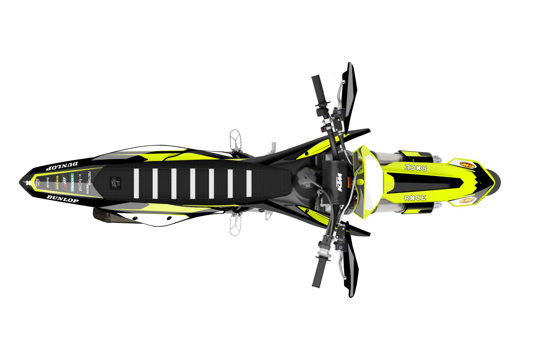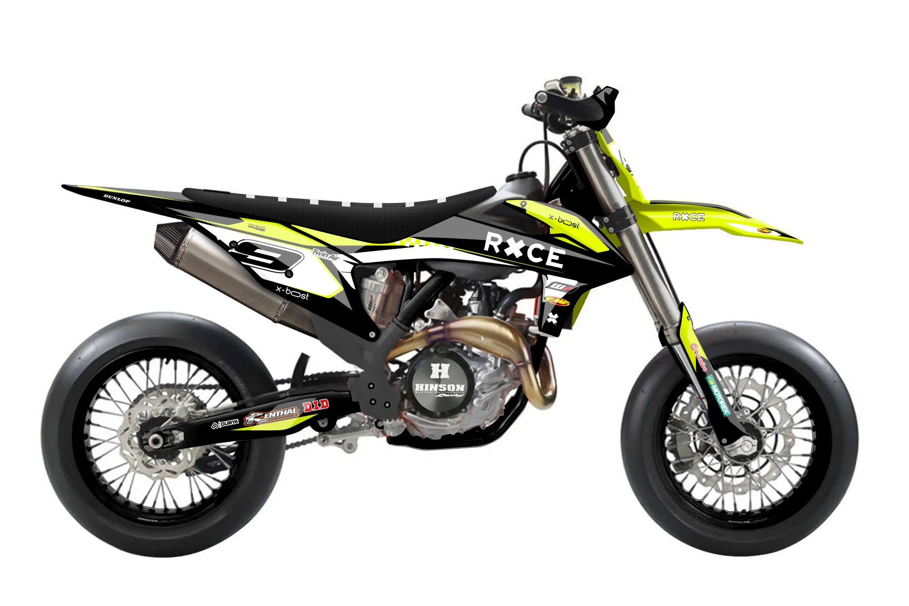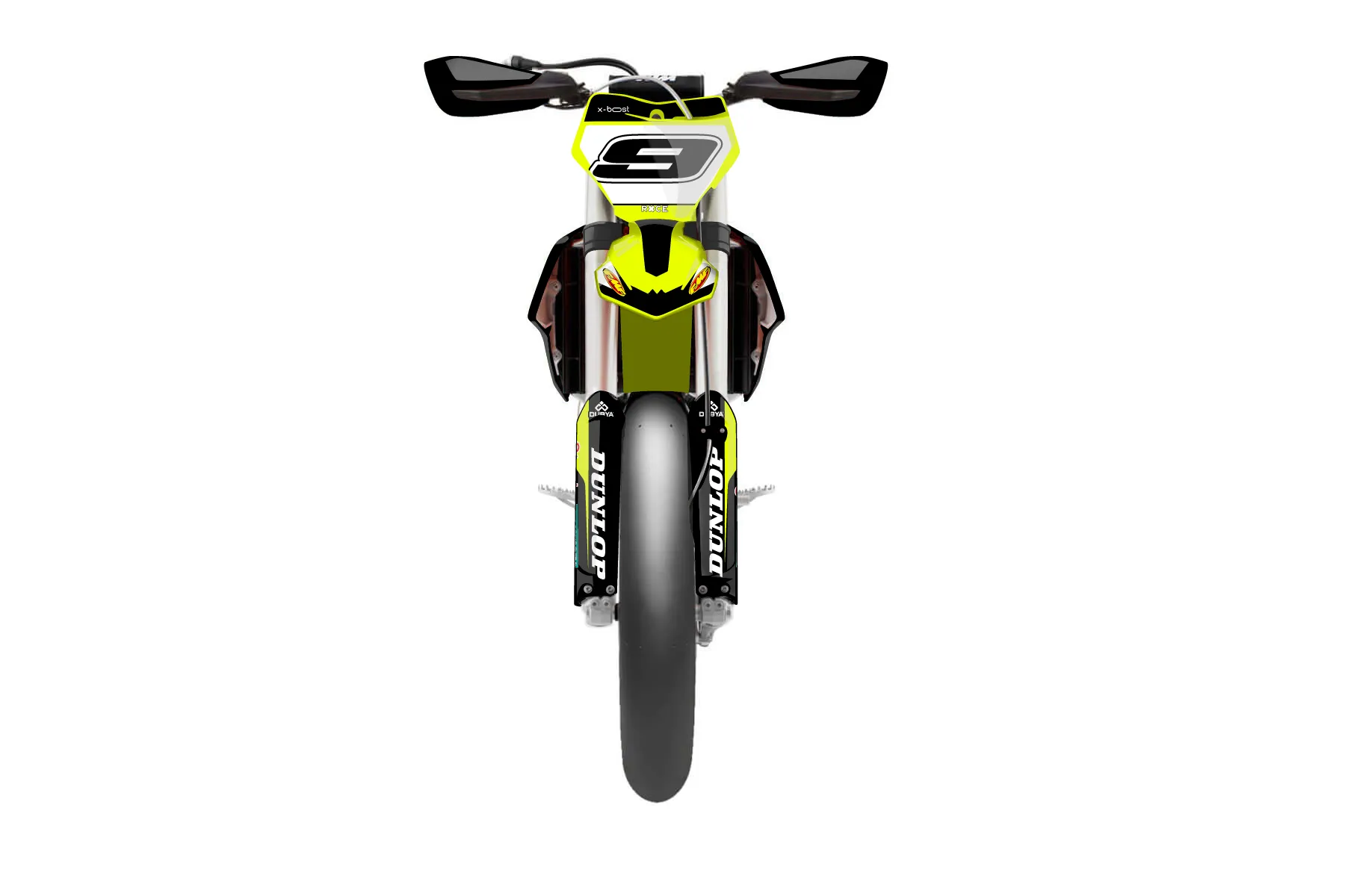 «Lucent Neon» — готовый комплект графики серии Flow для KTM Supermoto KTM SMR 450 2021. В комплекте: графика на бак и боковые облицовки, крылья (переднее и заднее), передний щиток, номерные таблички, защита вилки. Материал: ПВХ-винил 80 мкр с холодной ламинацией 300 мкр, общая толщина 380 мкр; покрытие глянцевое или матовое на выбор. Устойчив к UV-излучению, воде, бензину и мойке высокого давления. Клей акриловый на сольвентной основе — постоянный, для гибких пластиков. На простых поверхностях монтируется без нагрева; для сложных изгибов рекомендуем фен. Этот пресет можно заказать как есть или взять за основу в конструкторе: поменять цвета, добавить стартовый номер и свой бренд. Производство — 3–5 рабочих дней, доставка по России СДЭКом или Почтой, по СНГ — курьерскими службами.