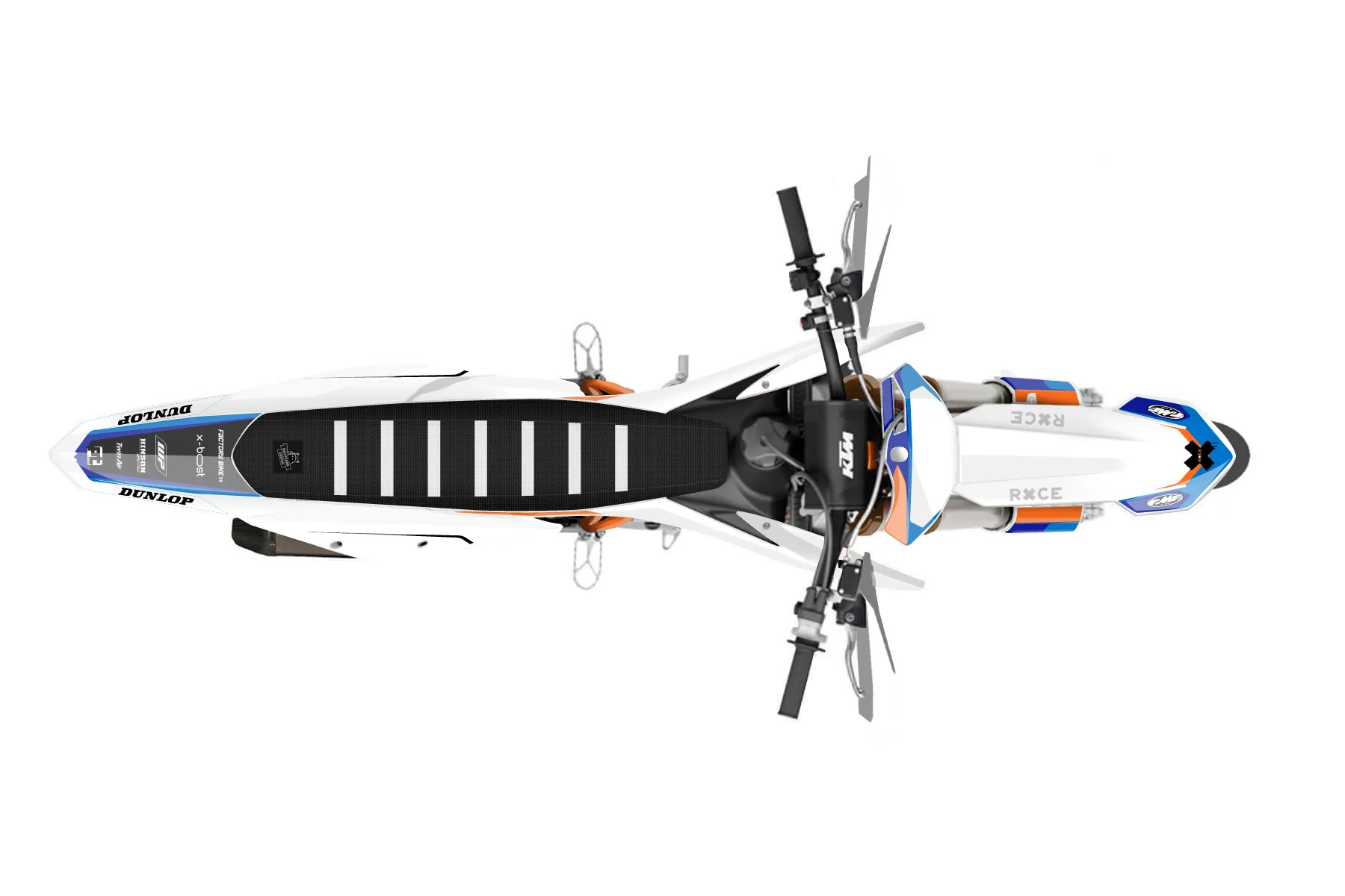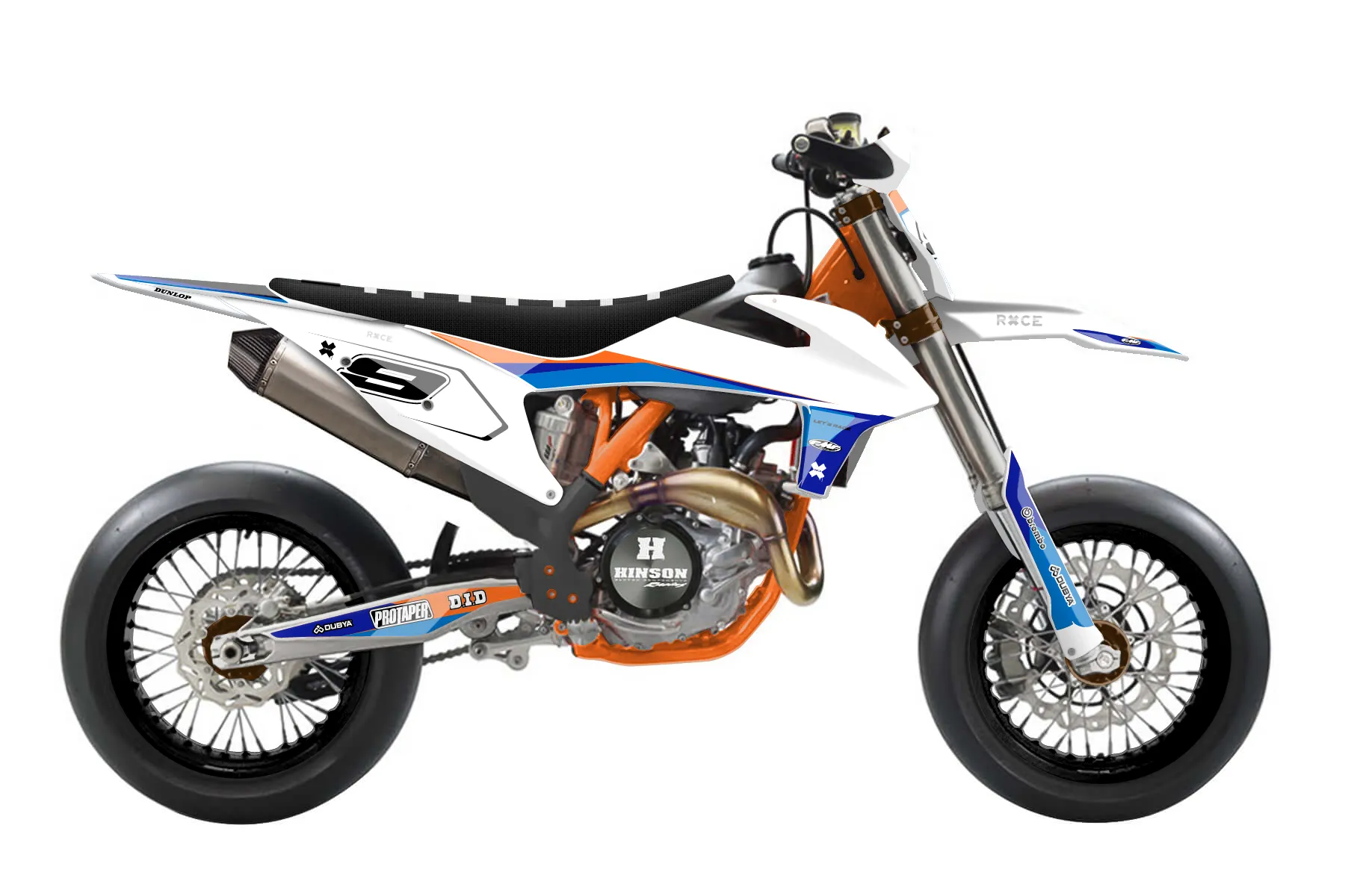 «Oldschool» — готовый комплект графики серии Flow для KTM Supermoto KTM SMR 450 2021. В комплекте: графика на бак и боковые облицовки, крылья (переднее и заднее), передний щиток, номерные таблички, защита вилки. Материал: ПВХ-винил 80 мкр с холодной ламинацией 300 мкр, общая толщина 380 мкр; покрытие глянцевое или матовое на выбор. Устойчив к UV-излучению, воде, бензину и мойке высокого давления. Клей акриловый на сольвентной основе — постоянный, для гибких пластиков. На простых поверхностях монтируется без нагрева; для сложных изгибов рекомендуем фен. Этот пресет можно заказать как есть или взять за основу в конструкторе: поменять цвета, добавить стартовый номер и свой бренд. Производство — 3–5 рабочих дней, доставка по России СДЭКом или Почтой, по СНГ — курьерскими службами.