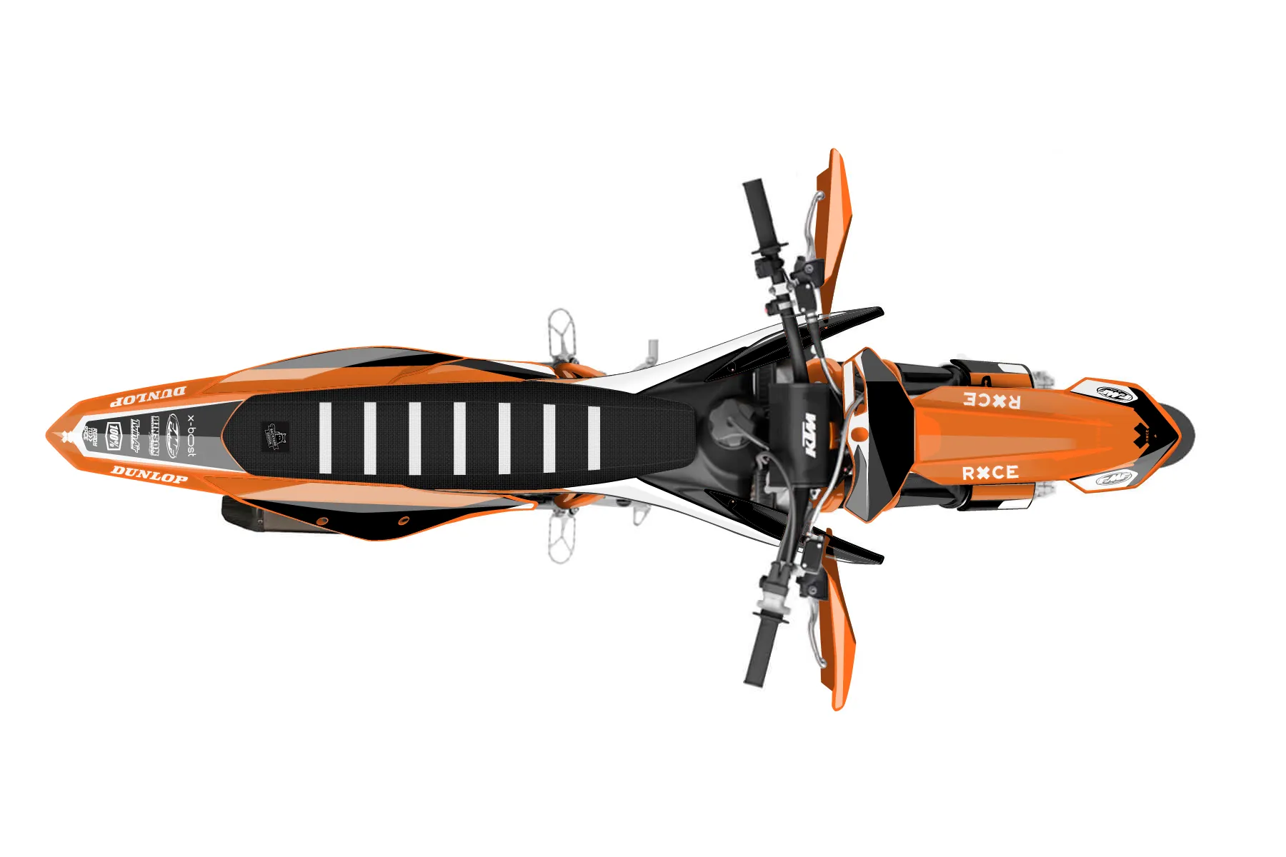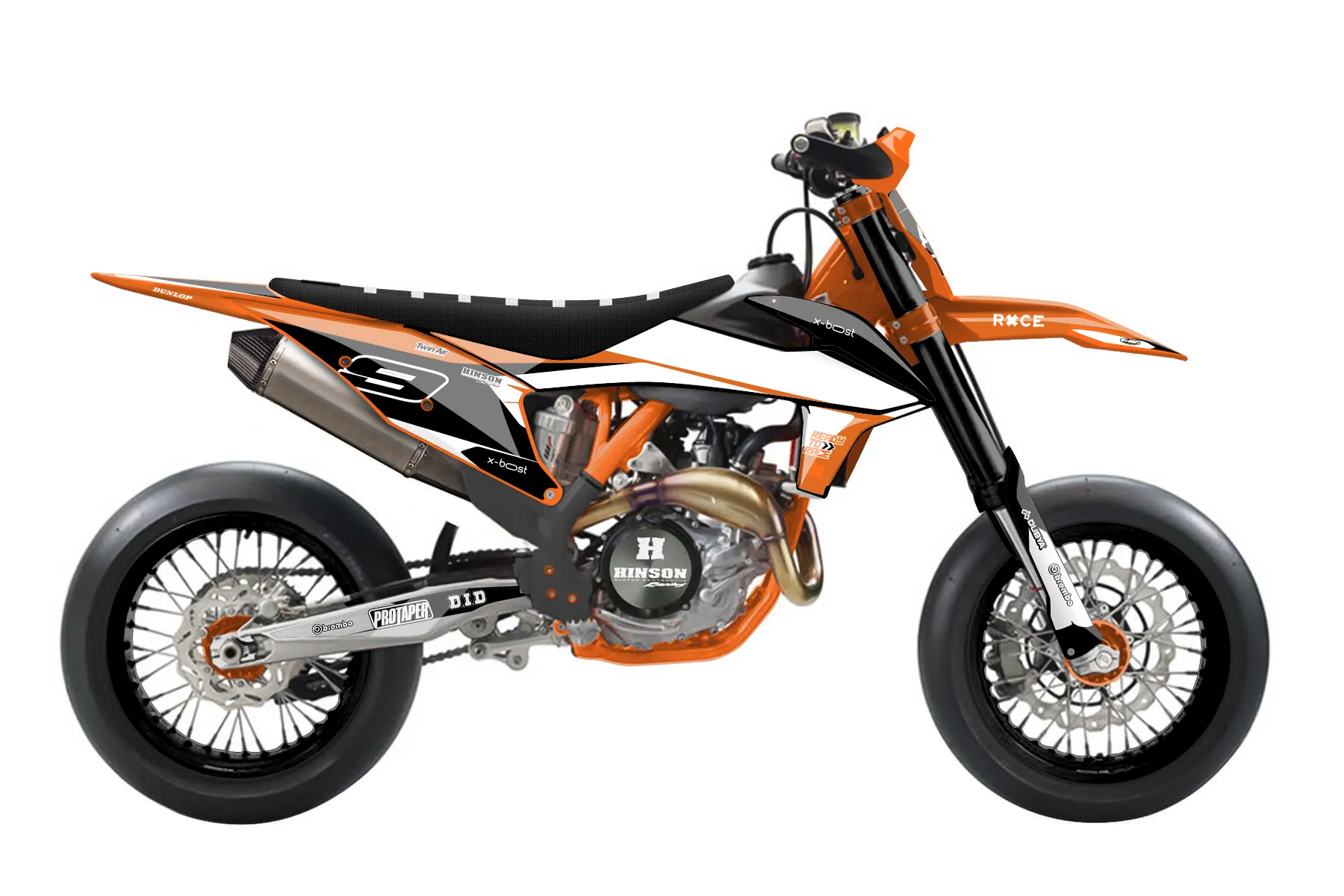 «Race» — готовый комплект графики серии Flow для KTM Supermoto KTM SMR 450 2021. В комплекте: графика на бак и боковые облицовки, крылья (переднее и заднее), передний щиток, номерные таблички, защита вилки. Материал: ПВХ-винил 80 мкр с холодной ламинацией 300 мкр, общая толщина 380 мкр; покрытие глянцевое или матовое на выбор. Устойчив к UV-излучению, воде, бензину и мойке высокого давления. Клей акриловый на сольвентной основе — постоянный, для гибких пластиков. На простых поверхностях монтируется без нагрева; для сложных изгибов рекомендуем фен. Этот пресет можно заказать как есть или взять за основу в конструкторе: поменять цвета, добавить стартовый номер и свой бренд. Производство — 3–5 рабочих дней, доставка по России СДЭКом или Почтой, по СНГ — курьерскими службами.