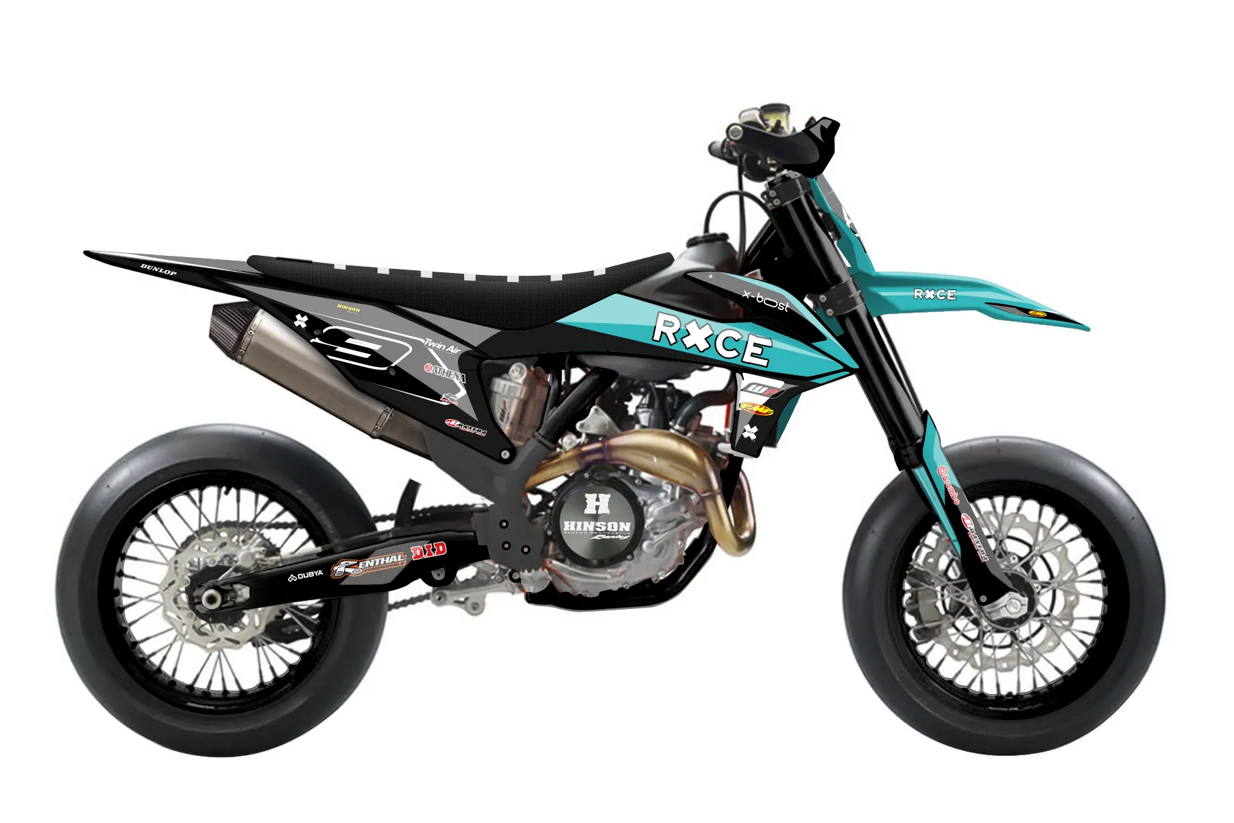 «Trademark» — готовый комплект графики серии Flow для KTM Supermoto KTM SMR 450 2021. В комплекте: графика на бак и боковые облицовки, крылья (переднее и заднее), передний щиток, номерные таблички, защита вилки. Материал: ПВХ-винил 80 мкр с холодной ламинацией 300 мкр, общая толщина 380 мкр; покрытие глянцевое или матовое на выбор. Устойчив к UV-излучению, воде, бензину и мойке высокого давления. Клей акриловый на сольвентной основе — постоянный, для гибких пластиков. На простых поверхностях монтируется без нагрева; для сложных изгибов рекомендуем фен. Этот пресет можно заказать как есть или взять за основу в конструкторе: поменять цвета, добавить стартовый номер и свой бренд. Производство — 3–5 рабочих дней, доставка по России СДЭКом или Почтой, по СНГ — курьерскими службами.
