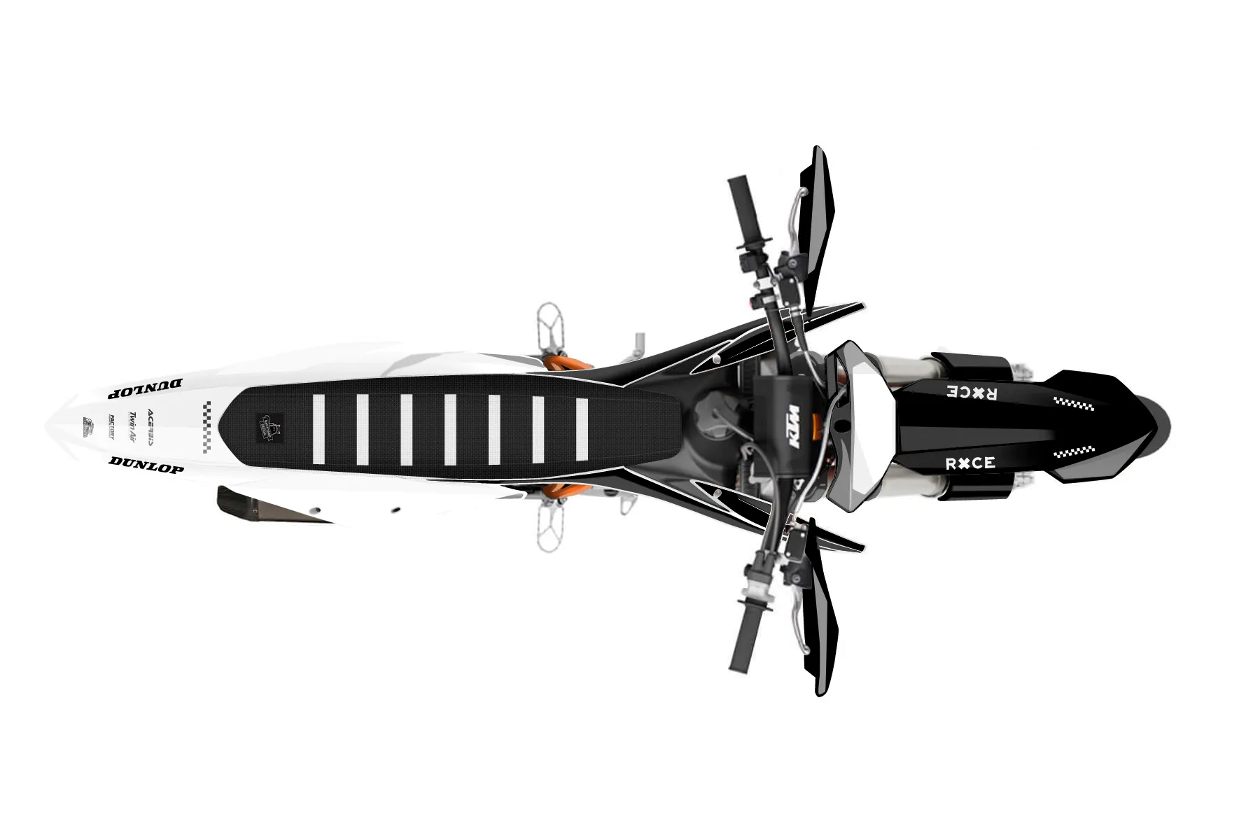 «Vector» — готовый комплект графики серии Flow для KTM Supermoto KTM SMR 450 2021. В комплекте: графика на бак и боковые облицовки, крылья (переднее и заднее), передний щиток, номерные таблички, защита вилки. Материал: ПВХ-винил 80 мкр с холодной ламинацией 300 мкр, общая толщина 380 мкр; покрытие глянцевое или матовое на выбор. Устойчив к UV-излучению, воде, бензину и мойке высокого давления. Клей акриловый на сольвентной основе — постоянный, для гибких пластиков. На простых поверхностях монтируется без нагрева; для сложных изгибов рекомендуем фен. Этот пресет можно заказать как есть или взять за основу в конструкторе: поменять цвета, добавить стартовый номер и свой бренд. Производство — 3–5 рабочих дней, доставка по России СДЭКом или Почтой, по СНГ — курьерскими службами.