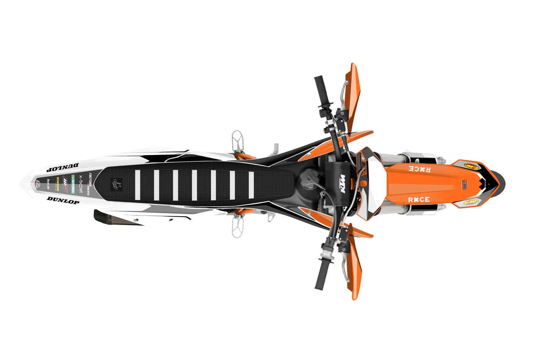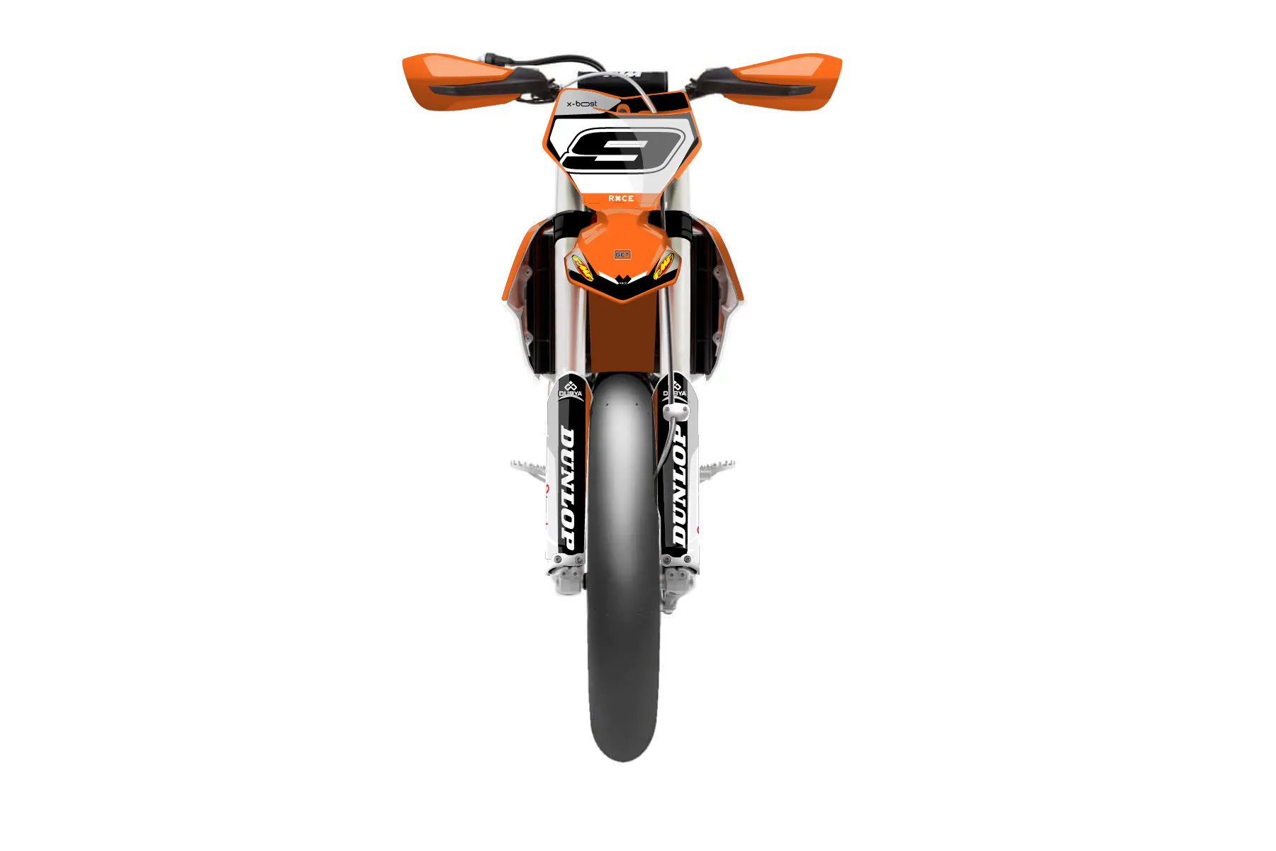 «Whip» — готовый комплект графики серии Flow для KTM Supermoto KTM SMR 450 2021. В комплекте: графика на бак и боковые облицовки, крылья (переднее и заднее), передний щиток, номерные таблички, защита вилки. Материал: ПВХ-винил 80 мкр с холодной ламинацией 300 мкр, общая толщина 380 мкр; покрытие глянцевое или матовое на выбор. Устойчив к UV-излучению, воде, бензину и мойке высокого давления. Клей акриловый на сольвентной основе — постоянный, для гибких пластиков. На простых поверхностях монтируется без нагрева; для сложных изгибов рекомендуем фен. Этот пресет можно заказать как есть или взять за основу в конструкторе: поменять цвета, добавить стартовый номер и свой бренд. Производство — 3–5 рабочих дней, доставка по России СДЭКом или Почтой, по СНГ — курьерскими службами.