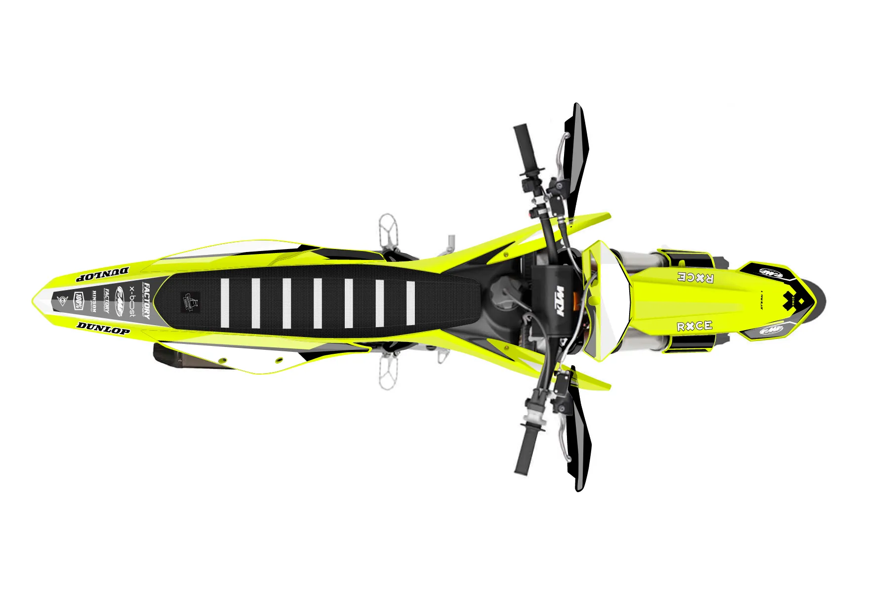 «Bright Neon» — готовый комплект графики серии Maverick для KTM Supermoto KTM SMR 450 2021. В комплекте: графика на бак и боковые облицовки, крылья (переднее и заднее), передний щиток, номерные таблички, защита вилки. Материал: ПВХ-винил 80 мкр с холодной ламинацией 300 мкр, общая толщина 380 мкр; покрытие глянцевое или матовое на выбор. Устойчив к UV-излучению, воде, бензину и мойке высокого давления. Клей акриловый на сольвентной основе — постоянный, для гибких пластиков. На простых поверхностях монтируется без нагрева; для сложных изгибов рекомендуем фен. Этот пресет можно заказать как есть или взять за основу в конструкторе: поменять цвета, добавить стартовый номер и свой бренд. Производство — 3–5 рабочих дней, доставка по России СДЭКом или Почтой, по СНГ — курьерскими службами.