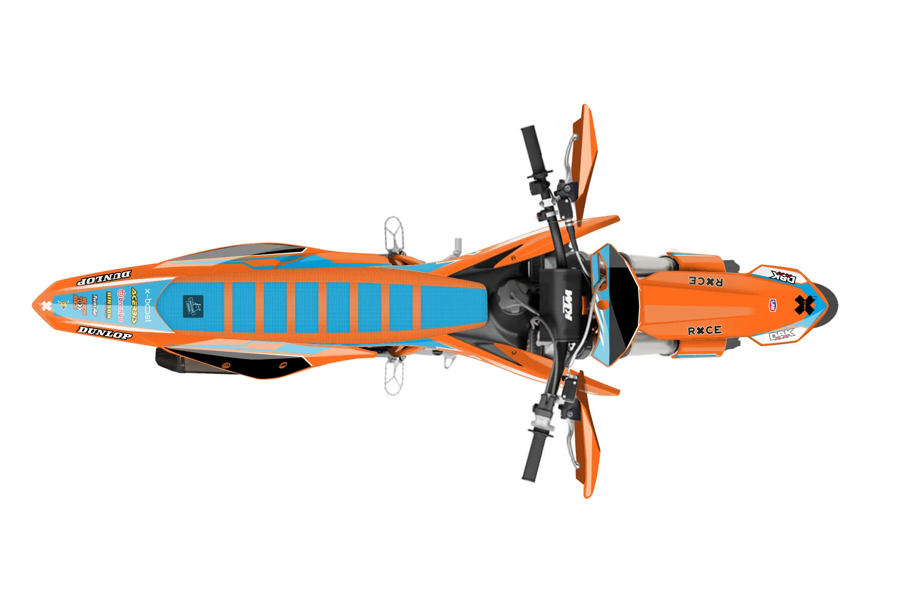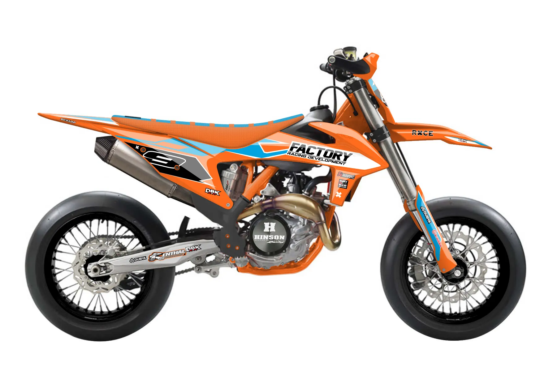 «Coach» — готовый комплект графики серии Maverick для KTM Supermoto KTM SMR 450 2021. В комплекте: графика на бак и боковые облицовки, крылья (переднее и заднее), передний щиток, номерные таблички, защита вилки. Материал: ПВХ-винил 80 мкр с холодной ламинацией 300 мкр, общая толщина 380 мкр; покрытие глянцевое или матовое на выбор. Устойчив к UV-излучению, воде, бензину и мойке высокого давления. Клей акриловый на сольвентной основе — постоянный, для гибких пластиков. На простых поверхностях монтируется без нагрева; для сложных изгибов рекомендуем фен. Этот пресет можно заказать как есть или взять за основу в конструкторе: поменять цвета, добавить стартовый номер и свой бренд. Производство — 3–5 рабочих дней, доставка по России СДЭКом или Почтой, по СНГ — курьерскими службами.