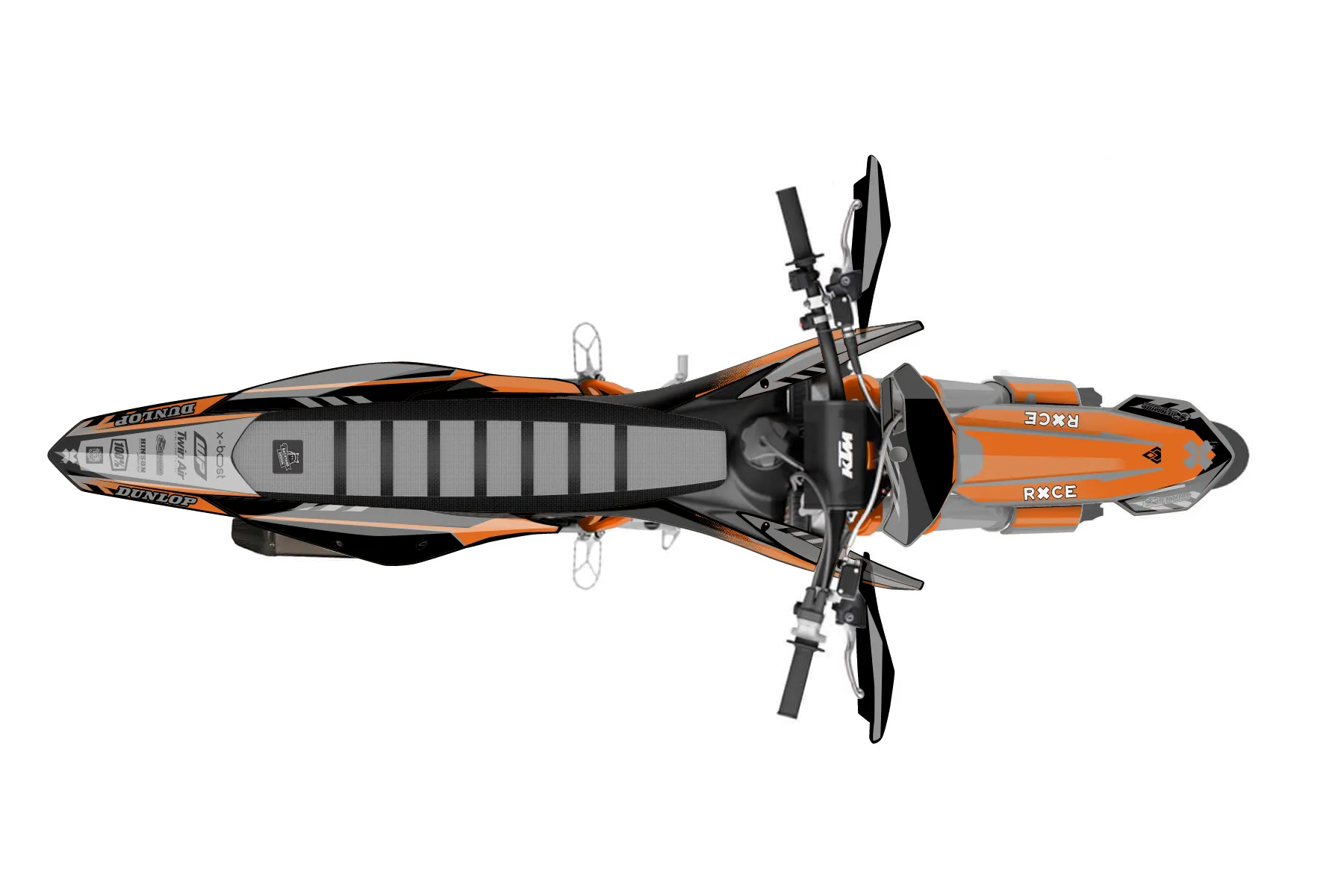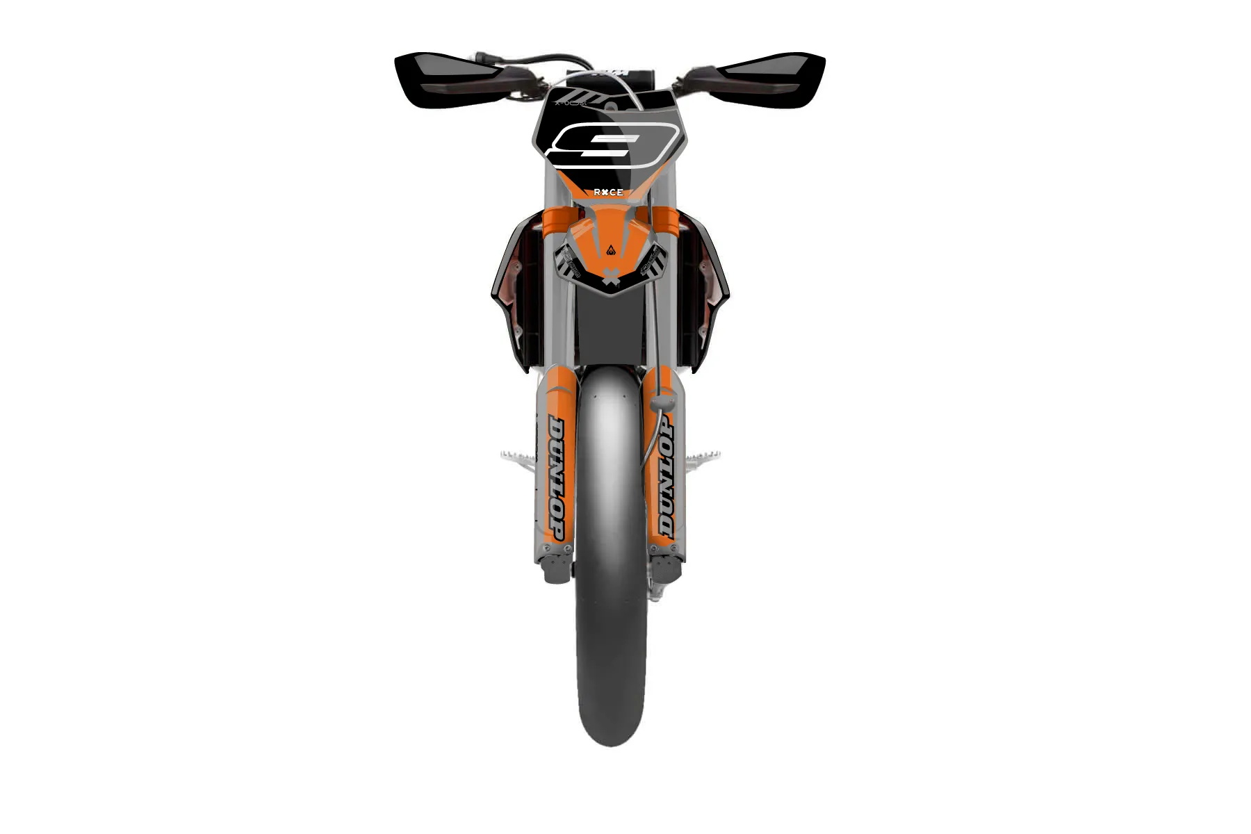 «CustomDesign» — готовый комплект графики серии Maverick для KTM Supermoto KTM SMR 450 2021. В комплекте: графика на бак и боковые облицовки, крылья (переднее и заднее), передний щиток, номерные таблички, защита вилки. Материал: ПВХ-винил 80 мкр с холодной ламинацией 300 мкр, общая толщина 380 мкр; покрытие глянцевое или матовое на выбор. Устойчив к UV-излучению, воде, бензину и мойке высокого давления. Клей акриловый на сольвентной основе — постоянный, для гибких пластиков. На простых поверхностях монтируется без нагрева; для сложных изгибов рекомендуем фен. Этот пресет можно заказать как есть или взять за основу в конструкторе: поменять цвета, добавить стартовый номер и свой бренд. Производство — 3–5 рабочих дней, доставка по России СДЭКом или Почтой, по СНГ — курьерскими службами.