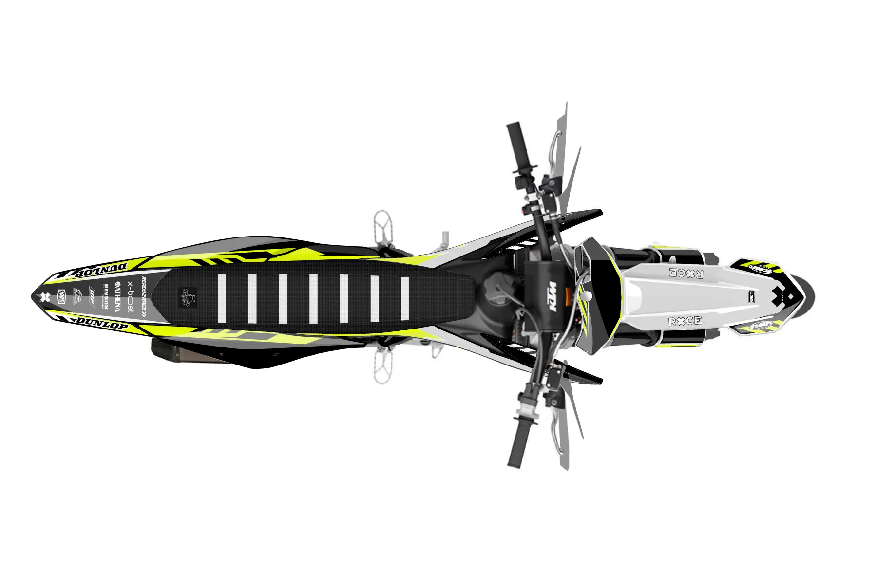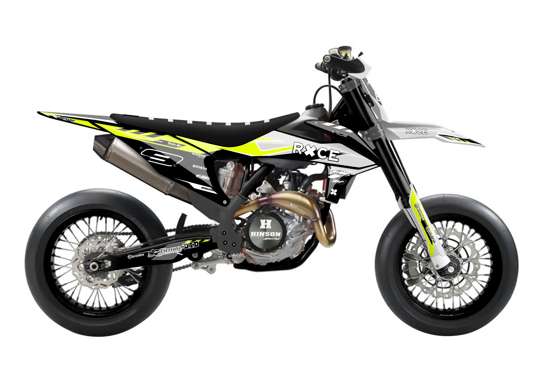 «Daze Fluo» — готовый комплект графики серии Maverick для KTM Supermoto KTM SMR 450 2021. В комплекте: графика на бак и боковые облицовки, крылья (переднее и заднее), передний щиток, номерные таблички, защита вилки. Материал: ПВХ-винил 80 мкр с холодной ламинацией 300 мкр, общая толщина 380 мкр; покрытие глянцевое или матовое на выбор. Устойчив к UV-излучению, воде, бензину и мойке высокого давления. Клей акриловый на сольвентной основе — постоянный, для гибких пластиков. На простых поверхностях монтируется без нагрева; для сложных изгибов рекомендуем фен. Этот пресет можно заказать как есть или взять за основу в конструкторе: поменять цвета, добавить стартовый номер и свой бренд. Производство — 3–5 рабочих дней, доставка по России СДЭКом или Почтой, по СНГ — курьерскими службами.