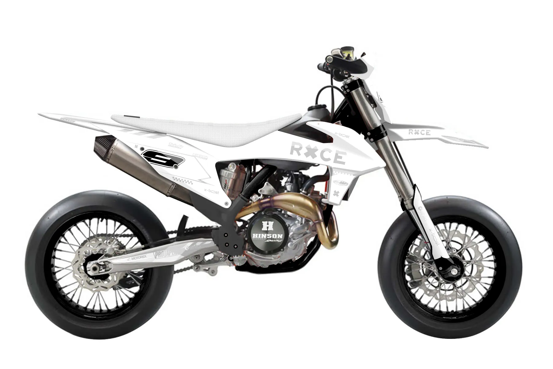 «Ghost» — готовый комплект графики серии Maverick для KTM Supermoto KTM SMR 450 2021. В комплекте: графика на бак и боковые облицовки, крылья (переднее и заднее), передний щиток, номерные таблички, защита вилки. Материал: ПВХ-винил 80 мкр с холодной ламинацией 300 мкр, общая толщина 380 мкр; покрытие глянцевое или матовое на выбор. Устойчив к UV-излучению, воде, бензину и мойке высокого давления. Клей акриловый на сольвентной основе — постоянный, для гибких пластиков. На простых поверхностях монтируется без нагрева; для сложных изгибов рекомендуем фен. Этот пресет можно заказать как есть или взять за основу в конструкторе: поменять цвета, добавить стартовый номер и свой бренд. Производство — 3–5 рабочих дней, доставка по России СДЭКом или Почтой, по СНГ — курьерскими службами.