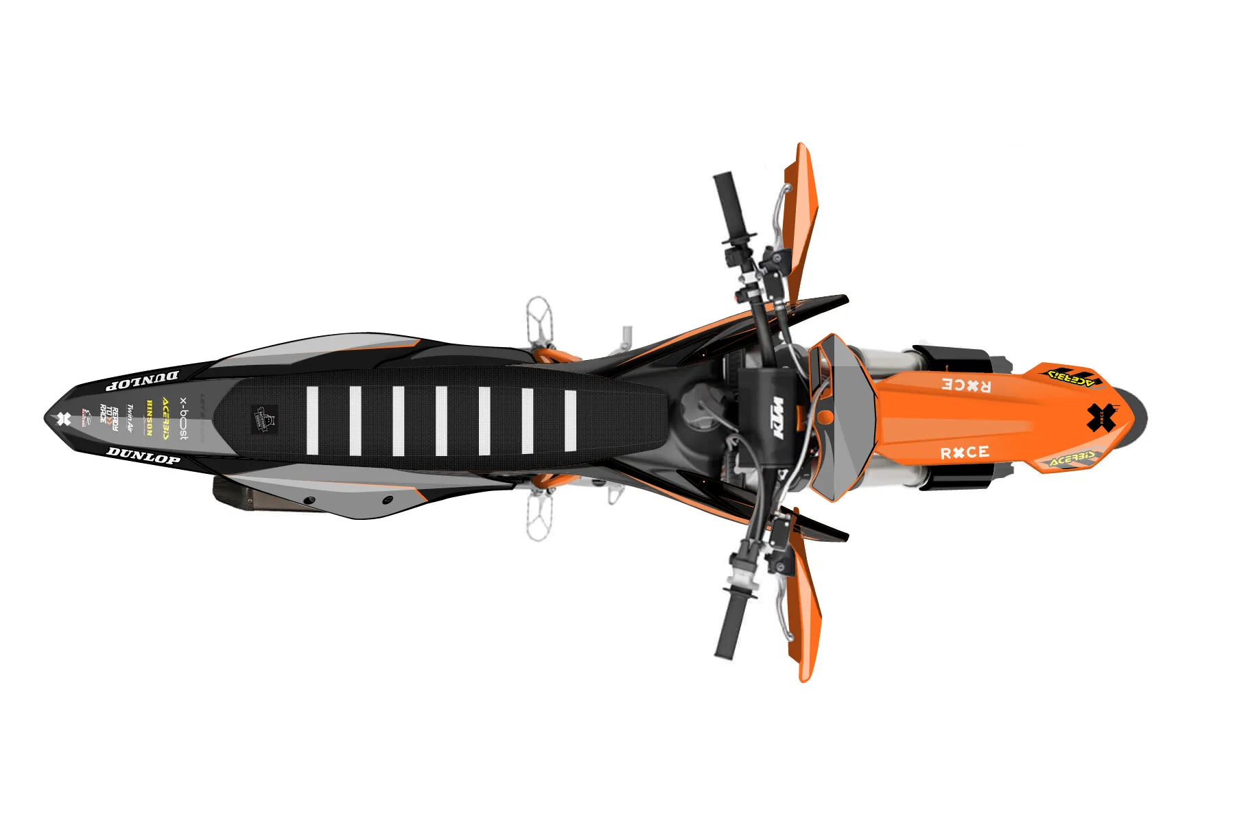 «Loose» — готовый комплект графики серии Maverick для KTM Supermoto KTM SMR 450 2021. В комплекте: графика на бак и боковые облицовки, крылья (переднее и заднее), передний щиток, номерные таблички, защита вилки. Материал: ПВХ-винил 80 мкр с холодной ламинацией 300 мкр, общая толщина 380 мкр; покрытие глянцевое или матовое на выбор. Устойчив к UV-излучению, воде, бензину и мойке высокого давления. Клей акриловый на сольвентной основе — постоянный, для гибких пластиков. На простых поверхностях монтируется без нагрева; для сложных изгибов рекомендуем фен. Этот пресет можно заказать как есть или взять за основу в конструкторе: поменять цвета, добавить стартовый номер и свой бренд. Производство — 3–5 рабочих дней, доставка по России СДЭКом или Почтой, по СНГ — курьерскими службами.