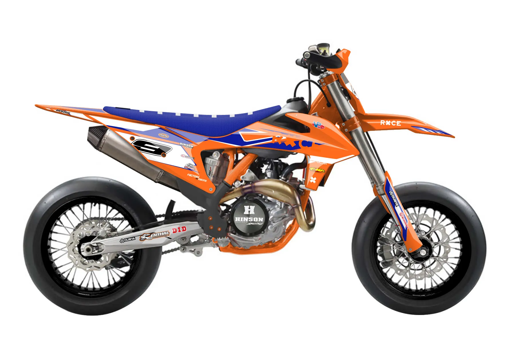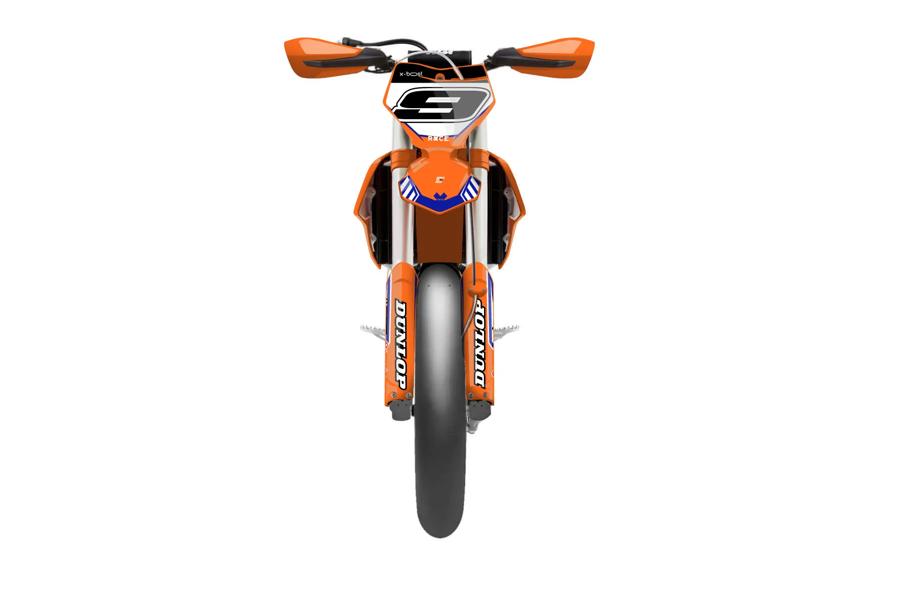 «Showtime» — готовый комплект графики серии Maverick для KTM Supermoto KTM SMR 450 2021. В комплекте: графика на бак и боковые облицовки, крылья (переднее и заднее), передний щиток, номерные таблички, защита вилки. Материал: ПВХ-винил 80 мкр с холодной ламинацией 300 мкр, общая толщина 380 мкр; покрытие глянцевое или матовое на выбор. Устойчив к UV-излучению, воде, бензину и мойке высокого давления. Клей акриловый на сольвентной основе — постоянный, для гибких пластиков. На простых поверхностях монтируется без нагрева; для сложных изгибов рекомендуем фен. Этот пресет можно заказать как есть или взять за основу в конструкторе: поменять цвета, добавить стартовый номер и свой бренд. Производство — 3–5 рабочих дней, доставка по России СДЭКом или Почтой, по СНГ — курьерскими службами.