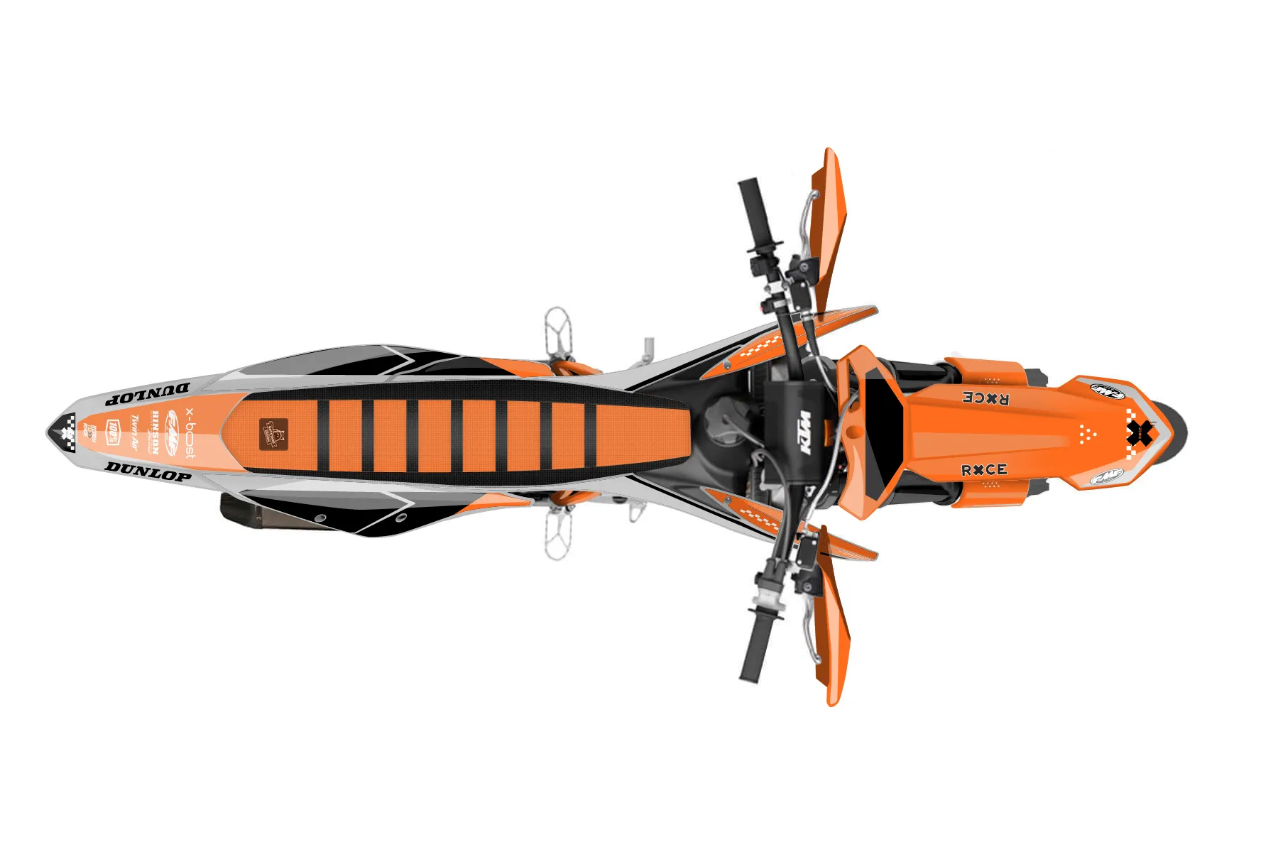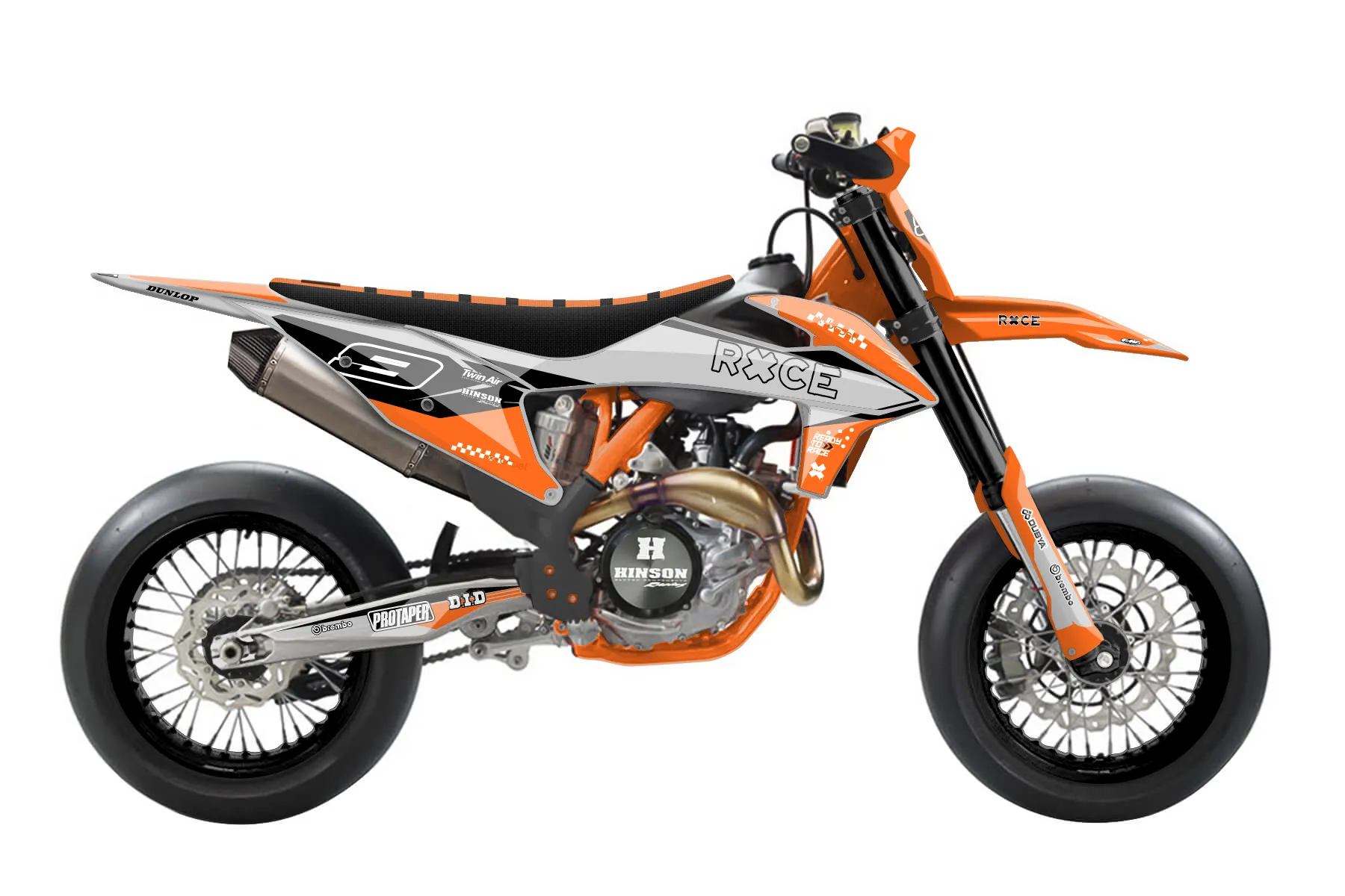 «Canon» — готовый комплект графики серии Staple для KTM Supermoto KTM SMR 450 2021. В комплекте: графика на бак и боковые облицовки, крылья (переднее и заднее), передний щиток, номерные таблички, защита вилки. Материал: ПВХ-винил 80 мкр с холодной ламинацией 300 мкр, общая толщина 380 мкр; покрытие глянцевое или матовое на выбор. Устойчив к UV-излучению, воде, бензину и мойке высокого давления. Клей акриловый на сольвентной основе — постоянный, для гибких пластиков. На простых поверхностях монтируется без нагрева; для сложных изгибов рекомендуем фен. Этот пресет можно заказать как есть или взять за основу в конструкторе: поменять цвета, добавить стартовый номер и свой бренд. Производство — 3–5 рабочих дней, доставка по России СДЭКом или Почтой, по СНГ — курьерскими службами.