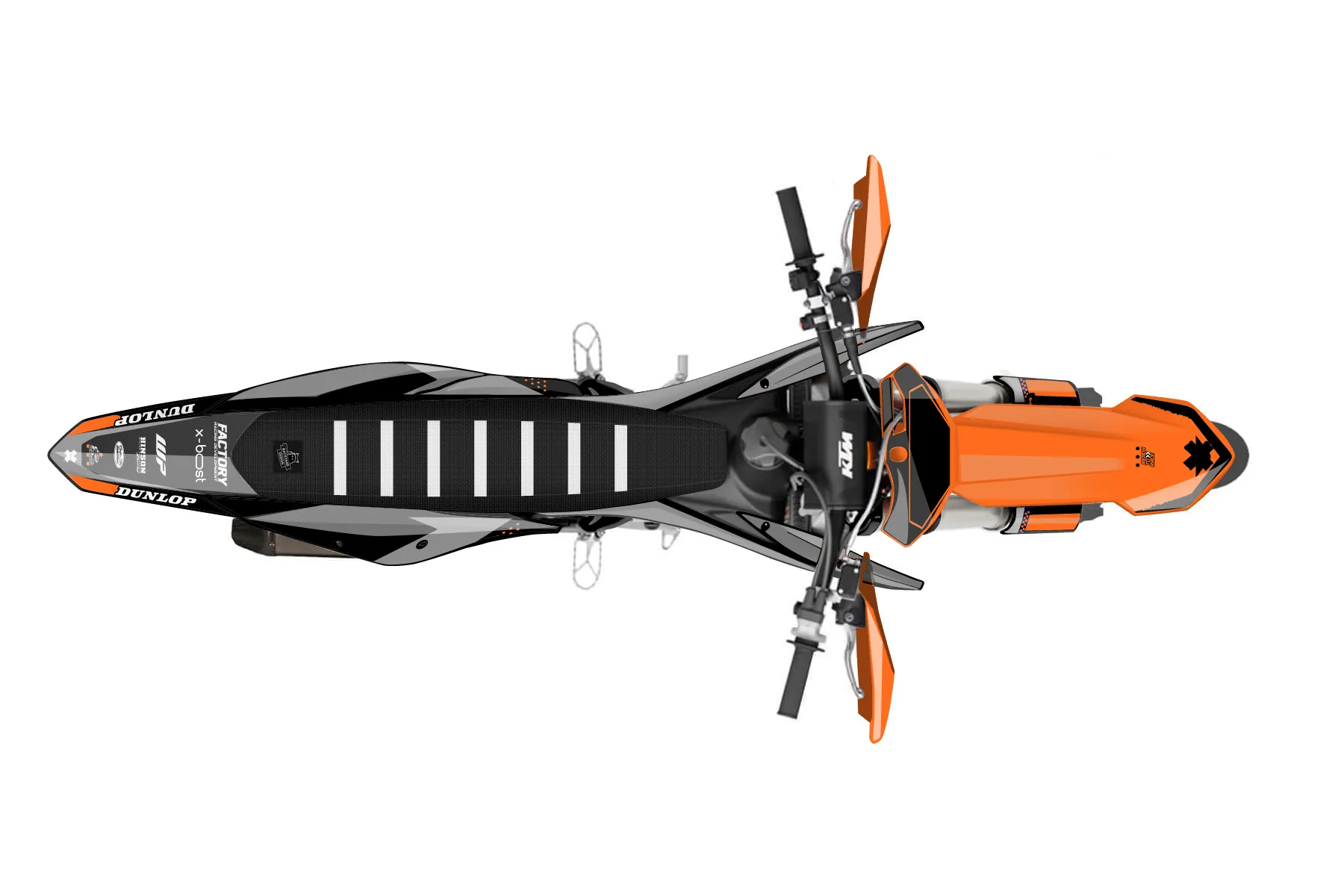 «Cape» — готовый комплект графики серии Staple для KTM Supermoto KTM SMR 450 2021. В комплекте: графика на бак и боковые облицовки, крылья (переднее и заднее), передний щиток, номерные таблички, защита вилки. Материал: ПВХ-винил 80 мкр с холодной ламинацией 300 мкр, общая толщина 380 мкр; покрытие глянцевое или матовое на выбор. Устойчив к UV-излучению, воде, бензину и мойке высокого давления. Клей акриловый на сольвентной основе — постоянный, для гибких пластиков. На простых поверхностях монтируется без нагрева; для сложных изгибов рекомендуем фен. Этот пресет можно заказать как есть или взять за основу в конструкторе: поменять цвета, добавить стартовый номер и свой бренд. Производство — 3–5 рабочих дней, доставка по России СДЭКом или Почтой, по СНГ — курьерскими службами.