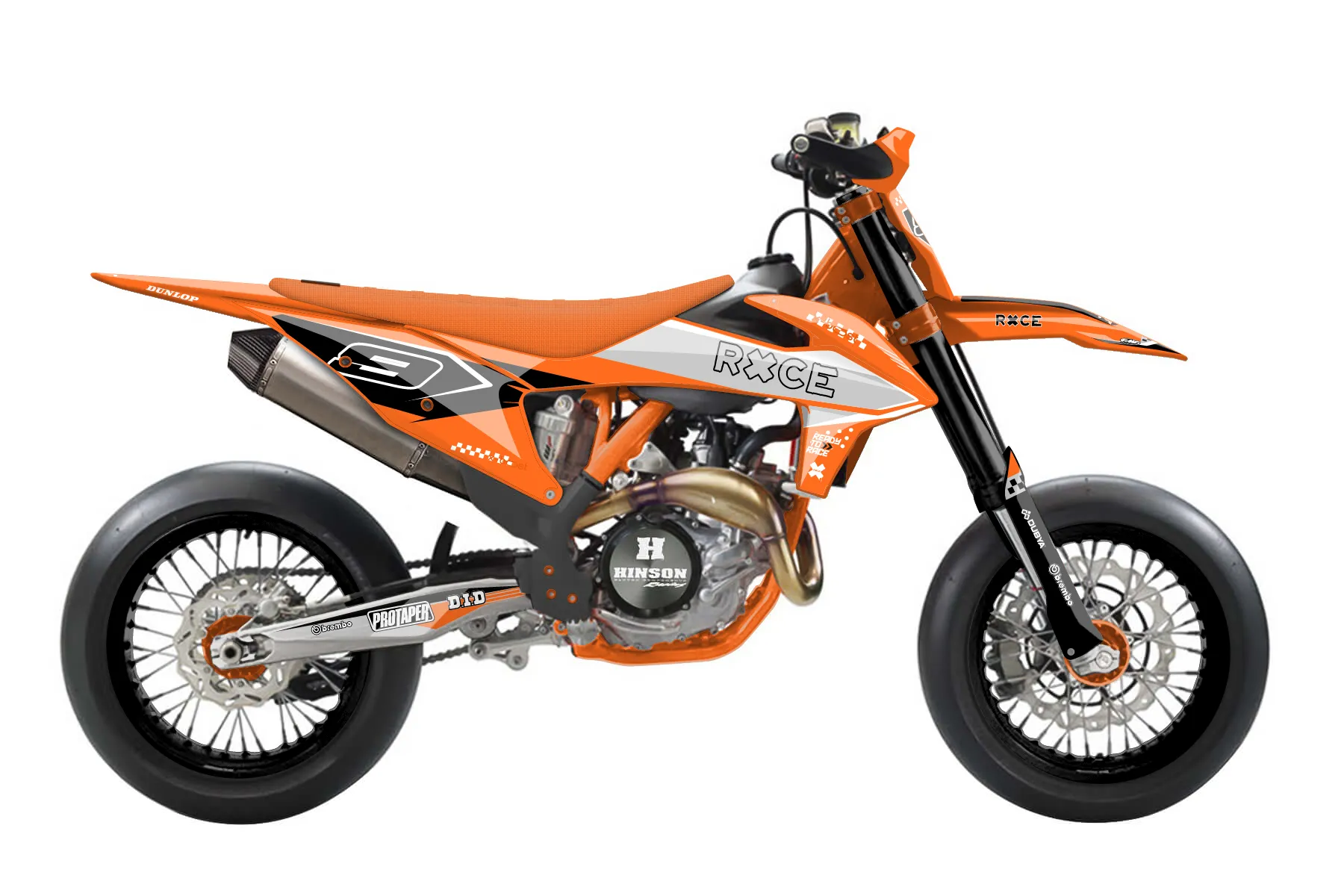«Data» — готовый комплект графики серии Staple для KTM Supermoto KTM SMR 450 2021. В комплекте: графика на бак и боковые облицовки, крылья (переднее и заднее), передний щиток, номерные таблички, защита вилки. Материал: ПВХ-винил 80 мкр с холодной ламинацией 300 мкр, общая толщина 380 мкр; покрытие глянцевое или матовое на выбор. Устойчив к UV-излучению, воде, бензину и мойке высокого давления. Клей акриловый на сольвентной основе — постоянный, для гибких пластиков. На простых поверхностях монтируется без нагрева; для сложных изгибов рекомендуем фен. Этот пресет можно заказать как есть или взять за основу в конструкторе: поменять цвета, добавить стартовый номер и свой бренд. Производство — 3–5 рабочих дней, доставка по России СДЭКом или Почтой, по СНГ — курьерскими службами.