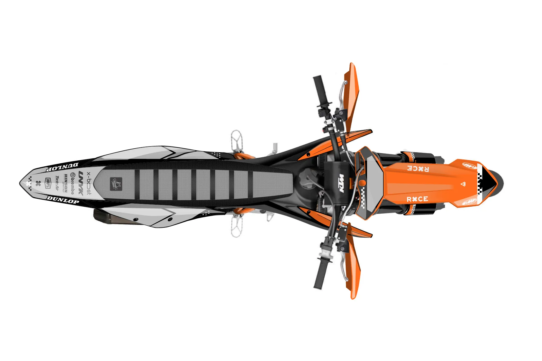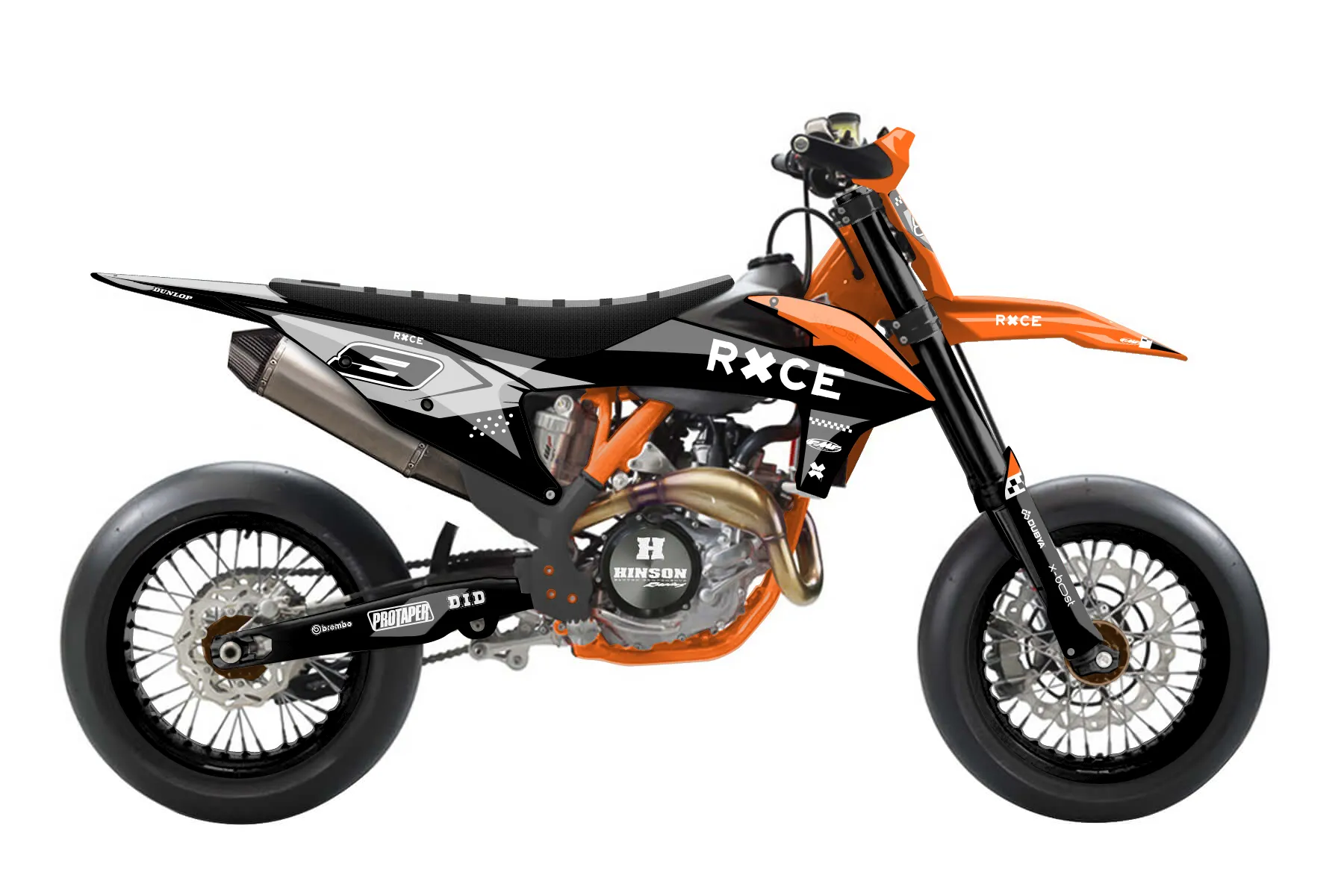 «Groove» — готовый комплект графики серии Staple для KTM Supermoto KTM SMR 450 2021. В комплекте: графика на бак и боковые облицовки, крылья (переднее и заднее), передний щиток, номерные таблички, защита вилки. Материал: ПВХ-винил 80 мкр с холодной ламинацией 300 мкр, общая толщина 380 мкр; покрытие глянцевое или матовое на выбор. Устойчив к UV-излучению, воде, бензину и мойке высокого давления. Клей акриловый на сольвентной основе — постоянный, для гибких пластиков. На простых поверхностях монтируется без нагрева; для сложных изгибов рекомендуем фен. Этот пресет можно заказать как есть или взять за основу в конструкторе: поменять цвета, добавить стартовый номер и свой бренд. Производство — 3–5 рабочих дней, доставка по России СДЭКом или Почтой, по СНГ — курьерскими службами.