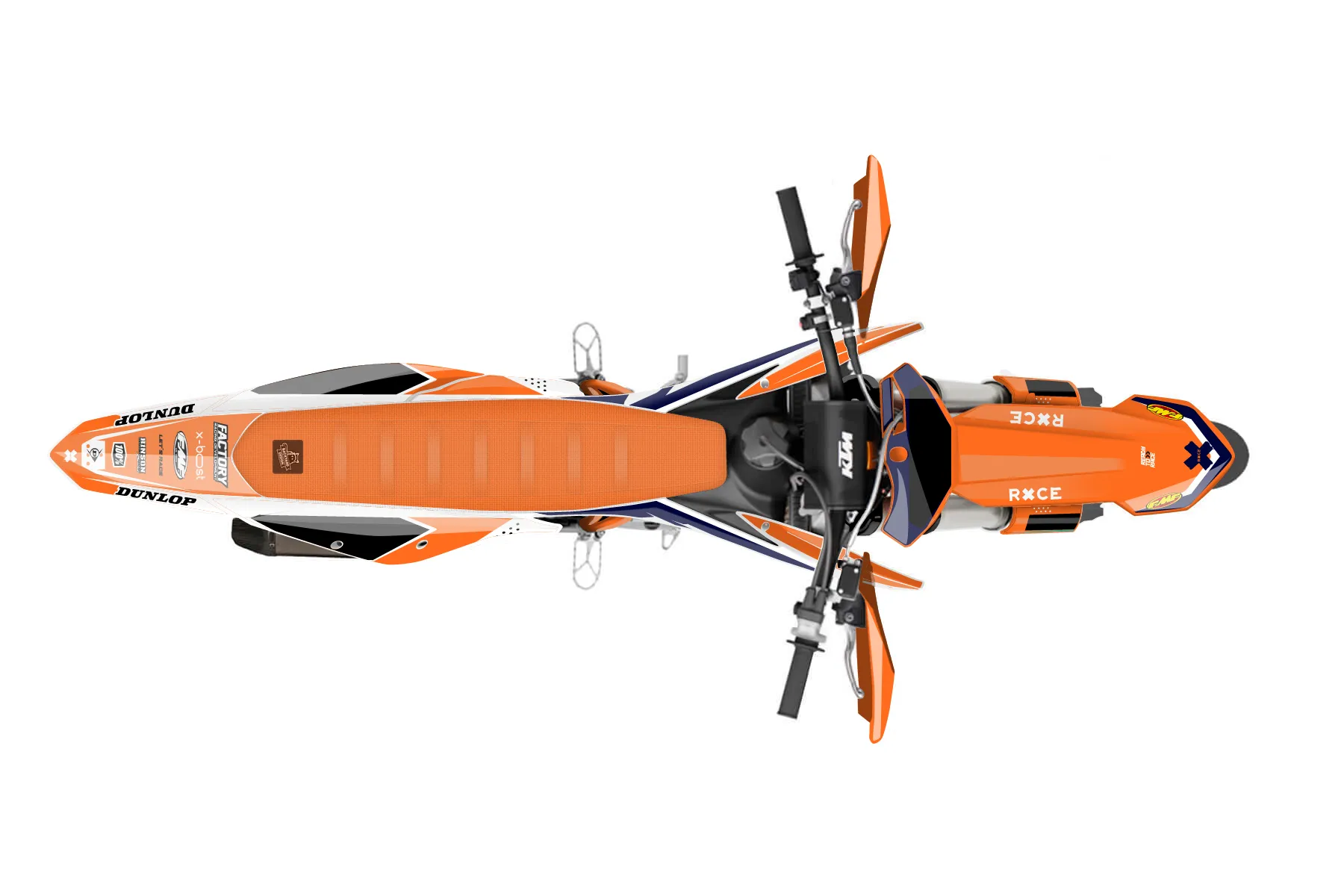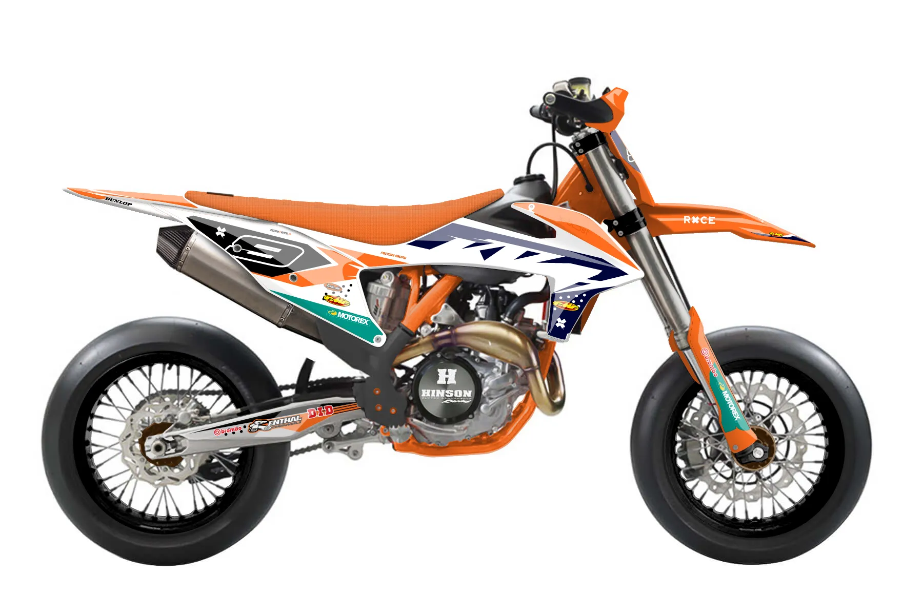 «Habit» — готовый комплект графики серии Staple для KTM Supermoto KTM SMR 450 2021. В комплекте: графика на бак и боковые облицовки, крылья (переднее и заднее), передний щиток, номерные таблички, защита вилки. Материал: ПВХ-винил 80 мкр с холодной ламинацией 300 мкр, общая толщина 380 мкр; покрытие глянцевое или матовое на выбор. Устойчив к UV-излучению, воде, бензину и мойке высокого давления. Клей акриловый на сольвентной основе — постоянный, для гибких пластиков. На простых поверхностях монтируется без нагрева; для сложных изгибов рекомендуем фен. Этот пресет можно заказать как есть или взять за основу в конструкторе: поменять цвета, добавить стартовый номер и свой бренд. Производство — 3–5 рабочих дней, доставка по России СДЭКом или Почтой, по СНГ — курьерскими службами.