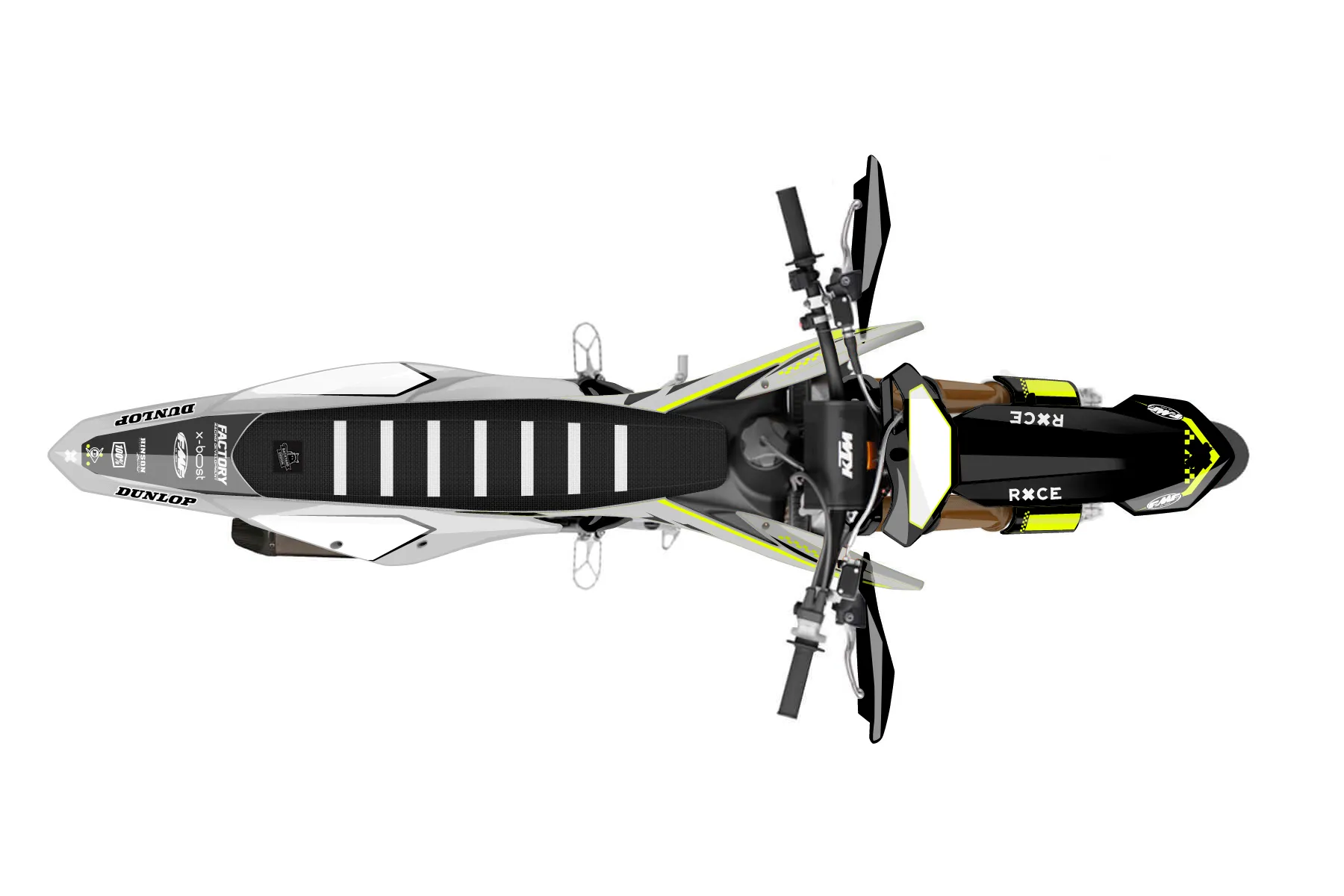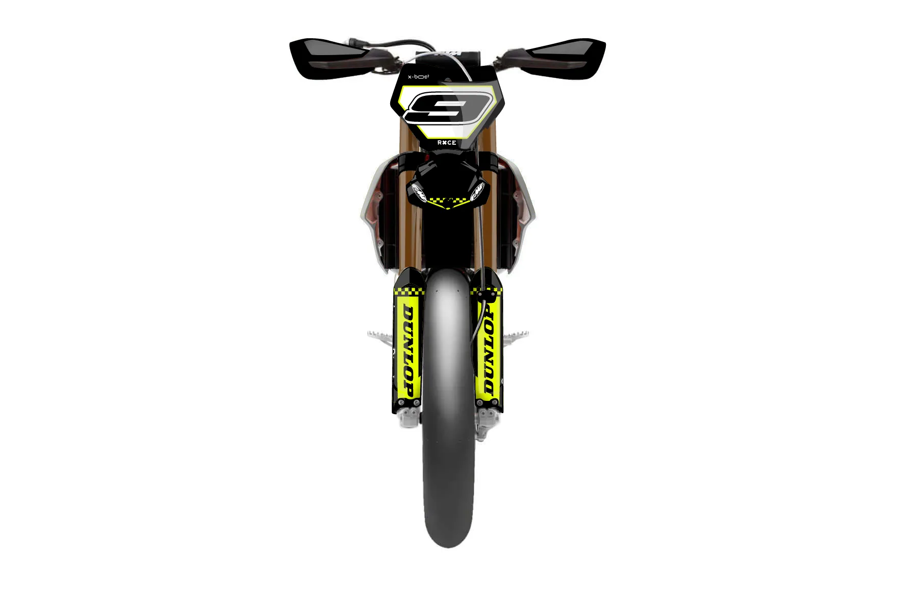 «Lusty Neon» — готовый комплект графики серии Staple для KTM Supermoto KTM SMR 450 2021. В комплекте: графика на бак и боковые облицовки, крылья (переднее и заднее), передний щиток, номерные таблички, защита вилки. Материал: ПВХ-винил 80 мкр с холодной ламинацией 300 мкр, общая толщина 380 мкр; покрытие глянцевое или матовое на выбор. Устойчив к UV-излучению, воде, бензину и мойке высокого давления. Клей акриловый на сольвентной основе — постоянный, для гибких пластиков. На простых поверхностях монтируется без нагрева; для сложных изгибов рекомендуем фен. Этот пресет можно заказать как есть или взять за основу в конструкторе: поменять цвета, добавить стартовый номер и свой бренд. Производство — 3–5 рабочих дней, доставка по России СДЭКом или Почтой, по СНГ — курьерскими службами.