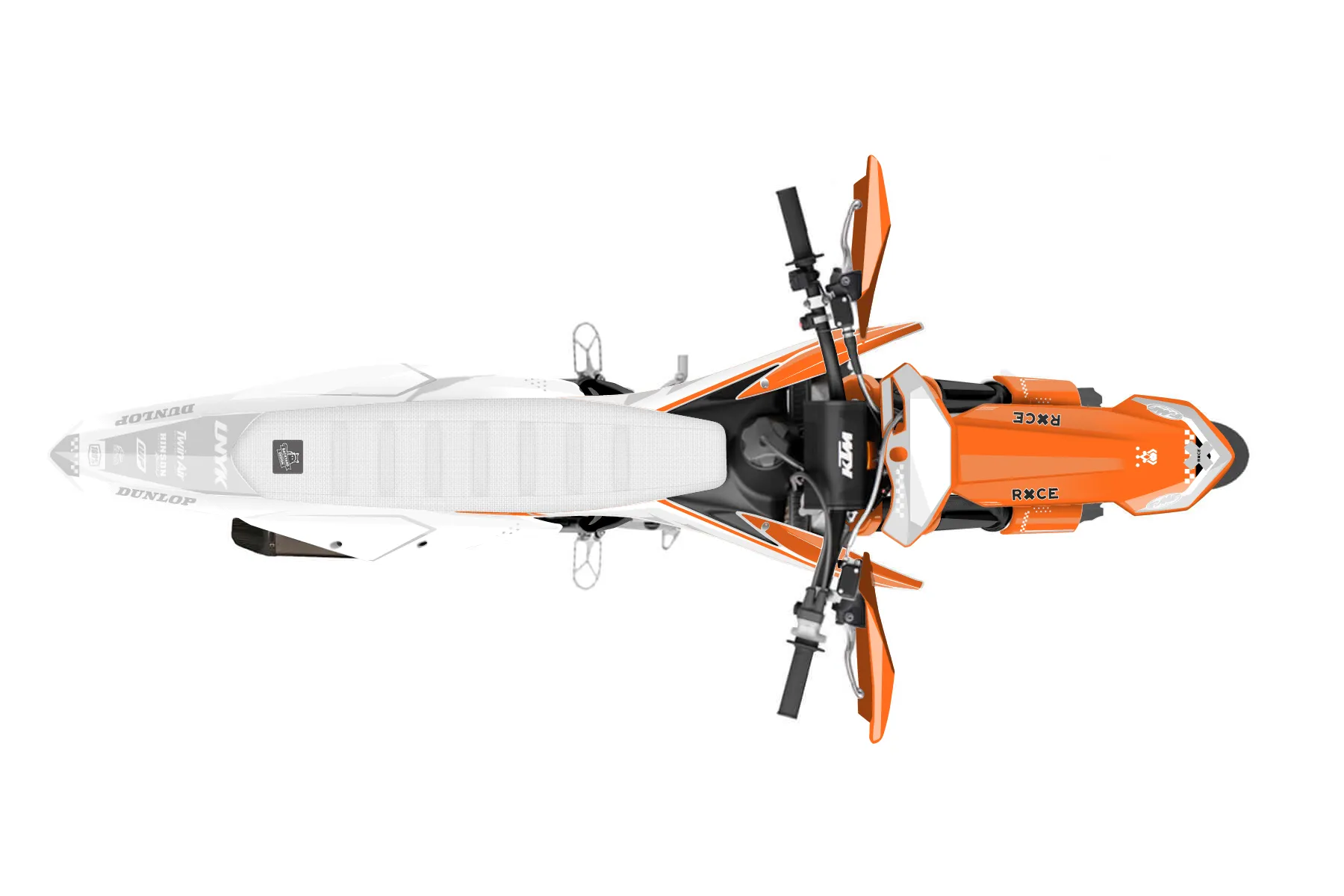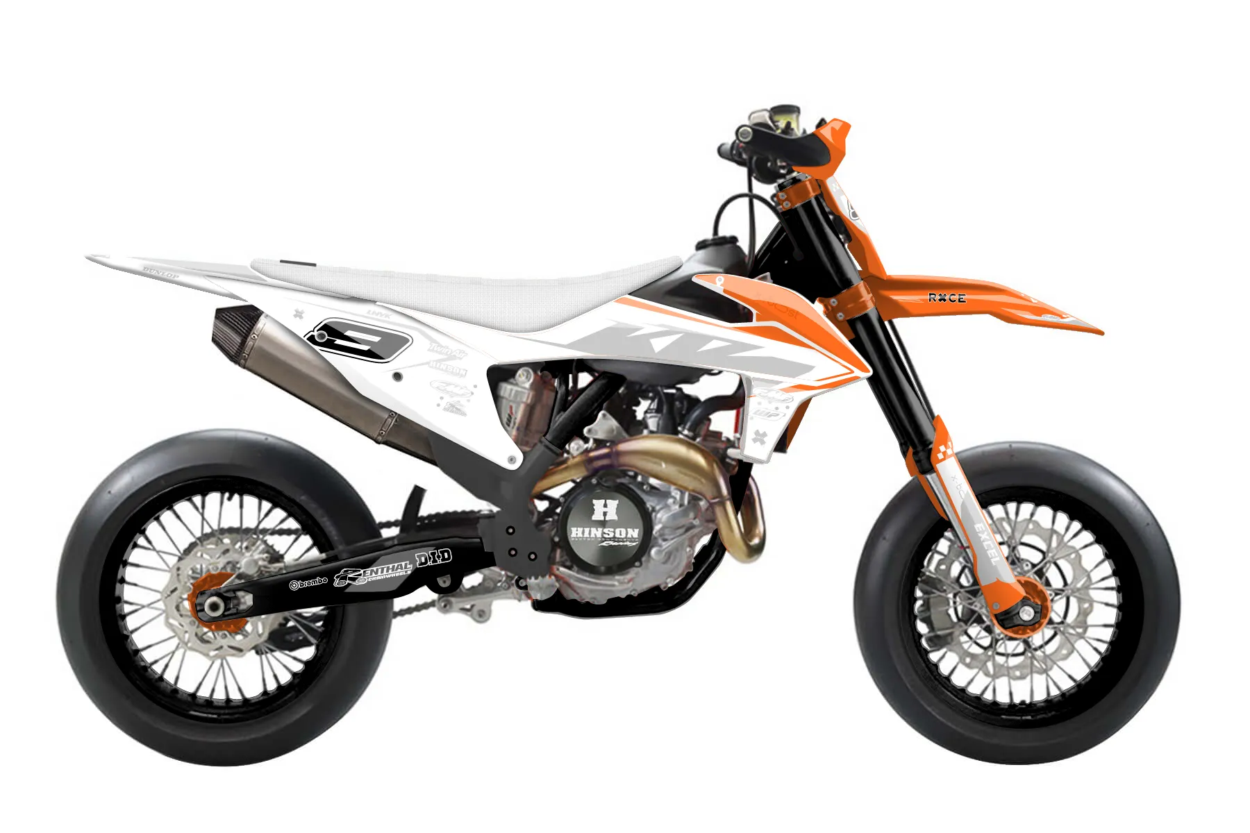 «Myth» — готовый комплект графики серии Staple для KTM Supermoto KTM SMR 450 2021. В комплекте: графика на бак и боковые облицовки, крылья (переднее и заднее), передний щиток, номерные таблички, защита вилки. Материал: ПВХ-винил 80 мкр с холодной ламинацией 300 мкр, общая толщина 380 мкр; покрытие глянцевое или матовое на выбор. Устойчив к UV-излучению, воде, бензину и мойке высокого давления. Клей акриловый на сольвентной основе — постоянный, для гибких пластиков. На простых поверхностях монтируется без нагрева; для сложных изгибов рекомендуем фен. Этот пресет можно заказать как есть или взять за основу в конструкторе: поменять цвета, добавить стартовый номер и свой бренд. Производство — 3–5 рабочих дней, доставка по России СДЭКом или Почтой, по СНГ — курьерскими службами.
