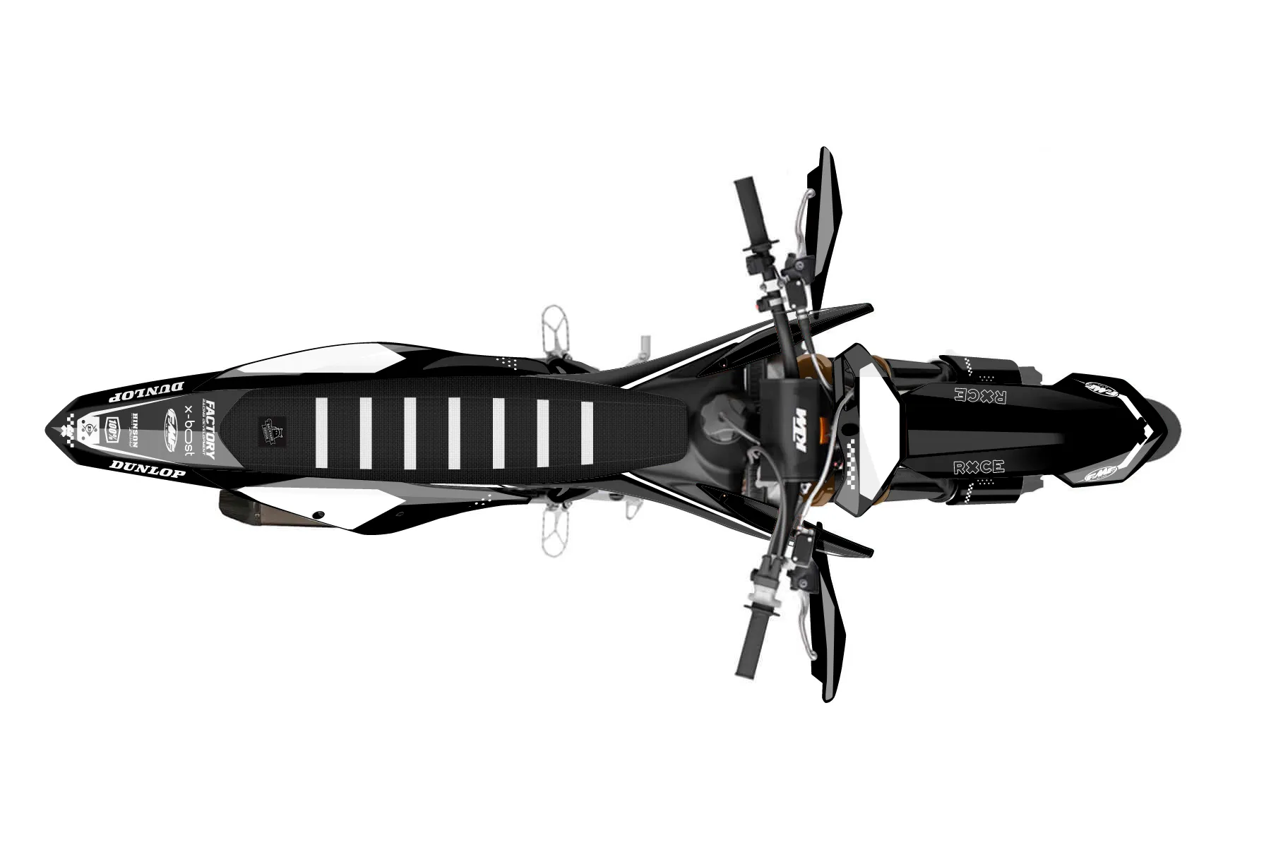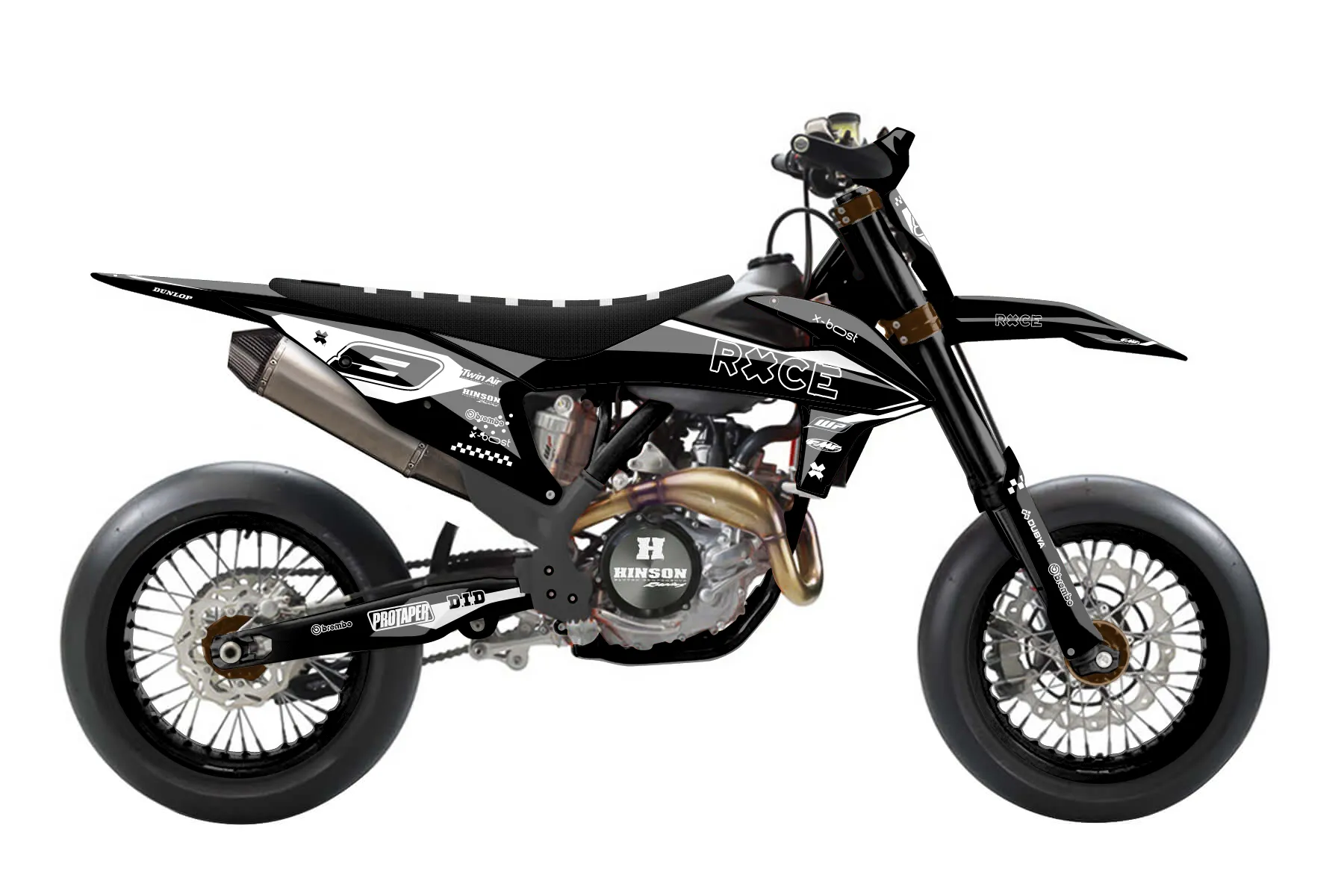 «Ryder» — готовый комплект графики серии Staple для KTM Supermoto KTM SMR 450 2021. В комплекте: графика на бак и боковые облицовки, крылья (переднее и заднее), передний щиток, номерные таблички, защита вилки. Материал: ПВХ-винил 80 мкр с холодной ламинацией 300 мкр, общая толщина 380 мкр; покрытие глянцевое или матовое на выбор. Устойчив к UV-излучению, воде, бензину и мойке высокого давления. Клей акриловый на сольвентной основе — постоянный, для гибких пластиков. На простых поверхностях монтируется без нагрева; для сложных изгибов рекомендуем фен. Этот пресет можно заказать как есть или взять за основу в конструкторе: поменять цвета, добавить стартовый номер и свой бренд. Производство — 3–5 рабочих дней, доставка по России СДЭКом или Почтой, по СНГ — курьерскими службами.