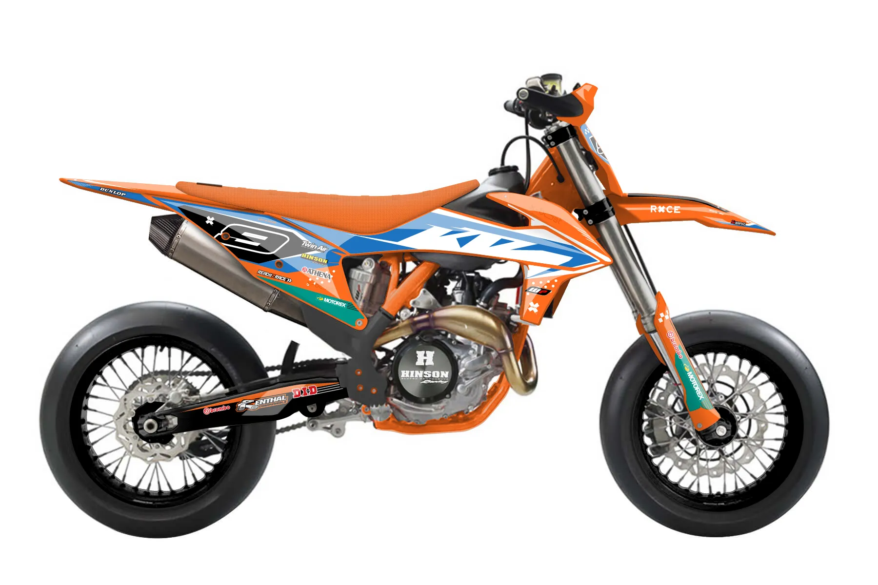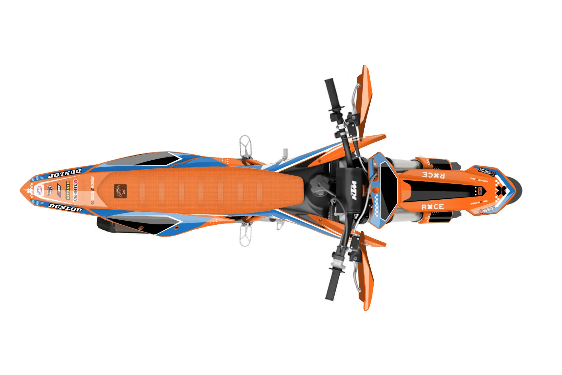«Stamp» — готовый комплект графики серии Staple для KTM Supermoto KTM SMR 450 2021. В комплекте: графика на бак и боковые облицовки, крылья (переднее и заднее), передний щиток, номерные таблички, защита вилки. Материал: ПВХ-винил 80 мкр с холодной ламинацией 300 мкр, общая толщина 380 мкр; покрытие глянцевое или матовое на выбор. Устойчив к UV-излучению, воде, бензину и мойке высокого давления. Клей акриловый на сольвентной основе — постоянный, для гибких пластиков. На простых поверхностях монтируется без нагрева; для сложных изгибов рекомендуем фен. Этот пресет можно заказать как есть или взять за основу в конструкторе: поменять цвета, добавить стартовый номер и свой бренд. Производство — 3–5 рабочих дней, доставка по России СДЭКом или Почтой, по СНГ — курьерскими службами.
