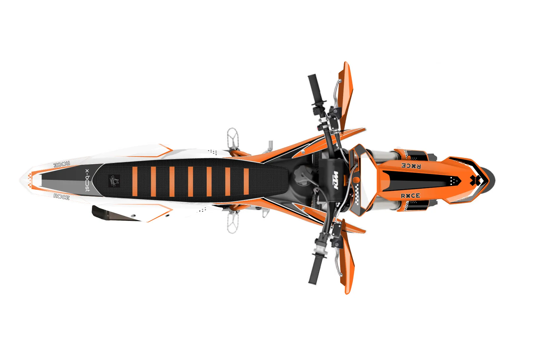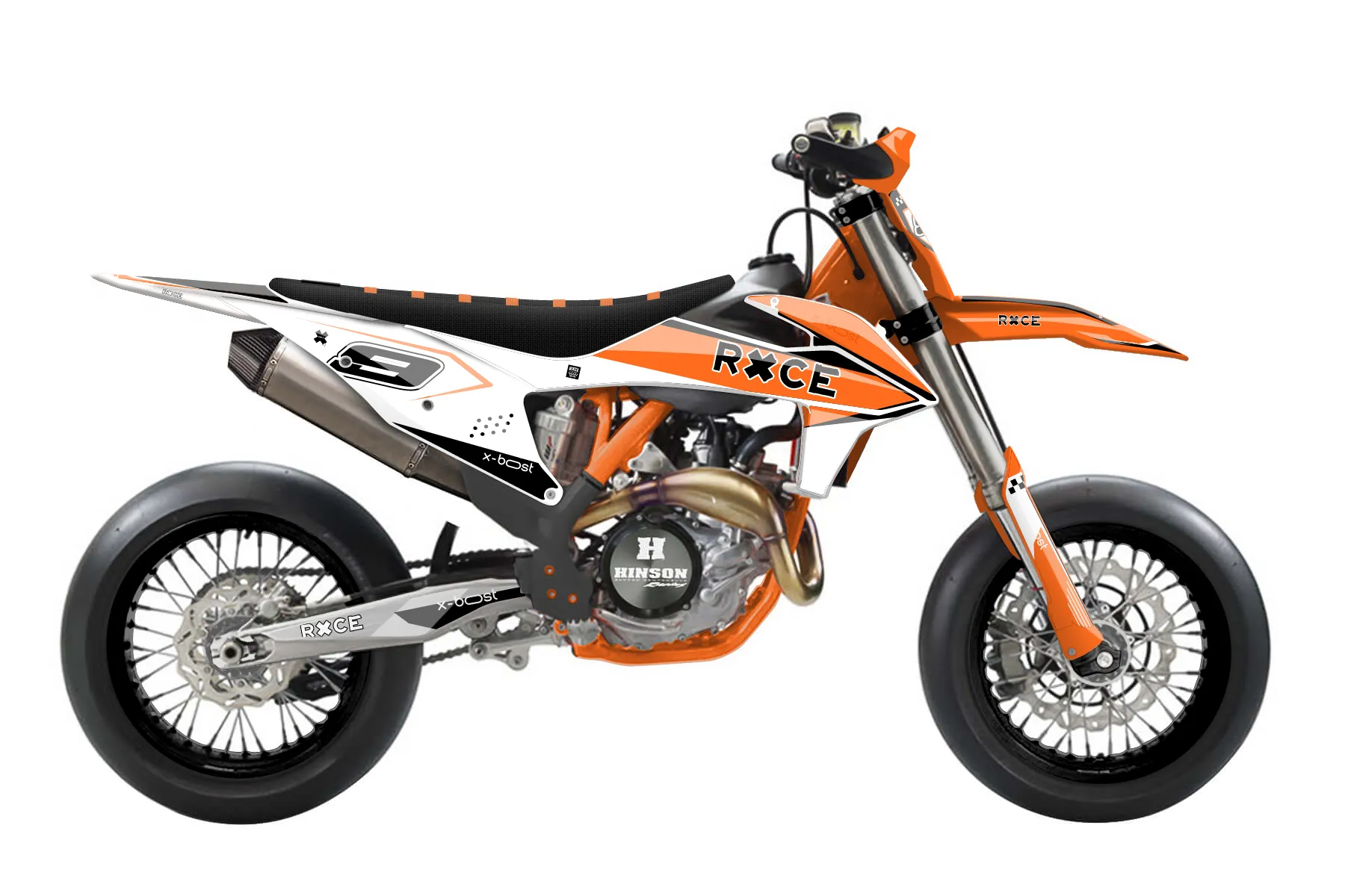 «Tag» — готовый комплект графики серии Staple для KTM Supermoto KTM SMR 450 2021. В комплекте: графика на бак и боковые облицовки, крылья (переднее и заднее), передний щиток, номерные таблички, защита вилки. Материал: ПВХ-винил 80 мкр с холодной ламинацией 300 мкр, общая толщина 380 мкр; покрытие глянцевое или матовое на выбор. Устойчив к UV-излучению, воде, бензину и мойке высокого давления. Клей акриловый на сольвентной основе — постоянный, для гибких пластиков. На простых поверхностях монтируется без нагрева; для сложных изгибов рекомендуем фен. Этот пресет можно заказать как есть или взять за основу в конструкторе: поменять цвета, добавить стартовый номер и свой бренд. Производство — 3–5 рабочих дней, доставка по России СДЭКом или Почтой, по СНГ — курьерскими службами.