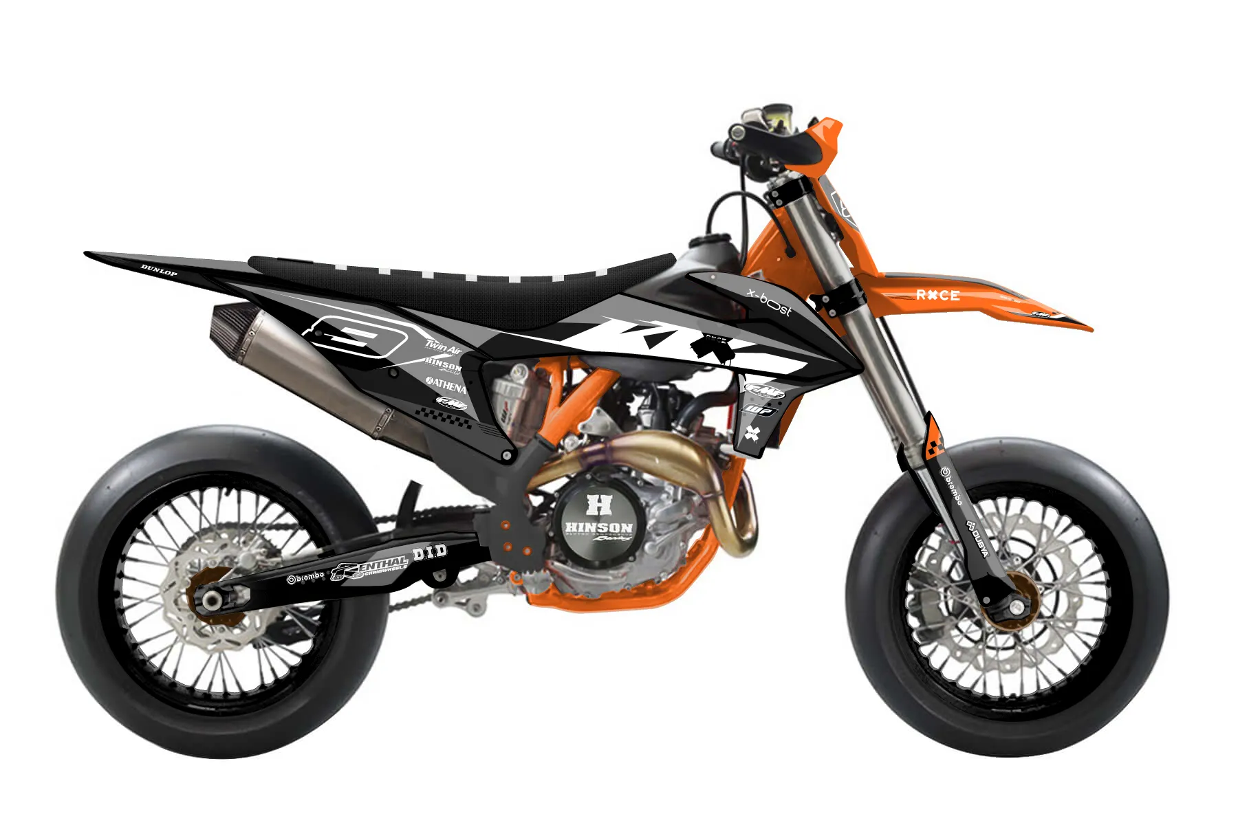 «Thrill» — готовый комплект графики серии Staple для KTM Supermoto KTM SMR 450 2021. В комплекте: графика на бак и боковые облицовки, крылья (переднее и заднее), передний щиток, номерные таблички, защита вилки. Материал: ПВХ-винил 80 мкр с холодной ламинацией 300 мкр, общая толщина 380 мкр; покрытие глянцевое или матовое на выбор. Устойчив к UV-излучению, воде, бензину и мойке высокого давления. Клей акриловый на сольвентной основе — постоянный, для гибких пластиков. На простых поверхностях монтируется без нагрева; для сложных изгибов рекомендуем фен. Этот пресет можно заказать как есть или взять за основу в конструкторе: поменять цвета, добавить стартовый номер и свой бренд. Производство — 3–5 рабочих дней, доставка по России СДЭКом или Почтой, по СНГ — курьерскими службами.