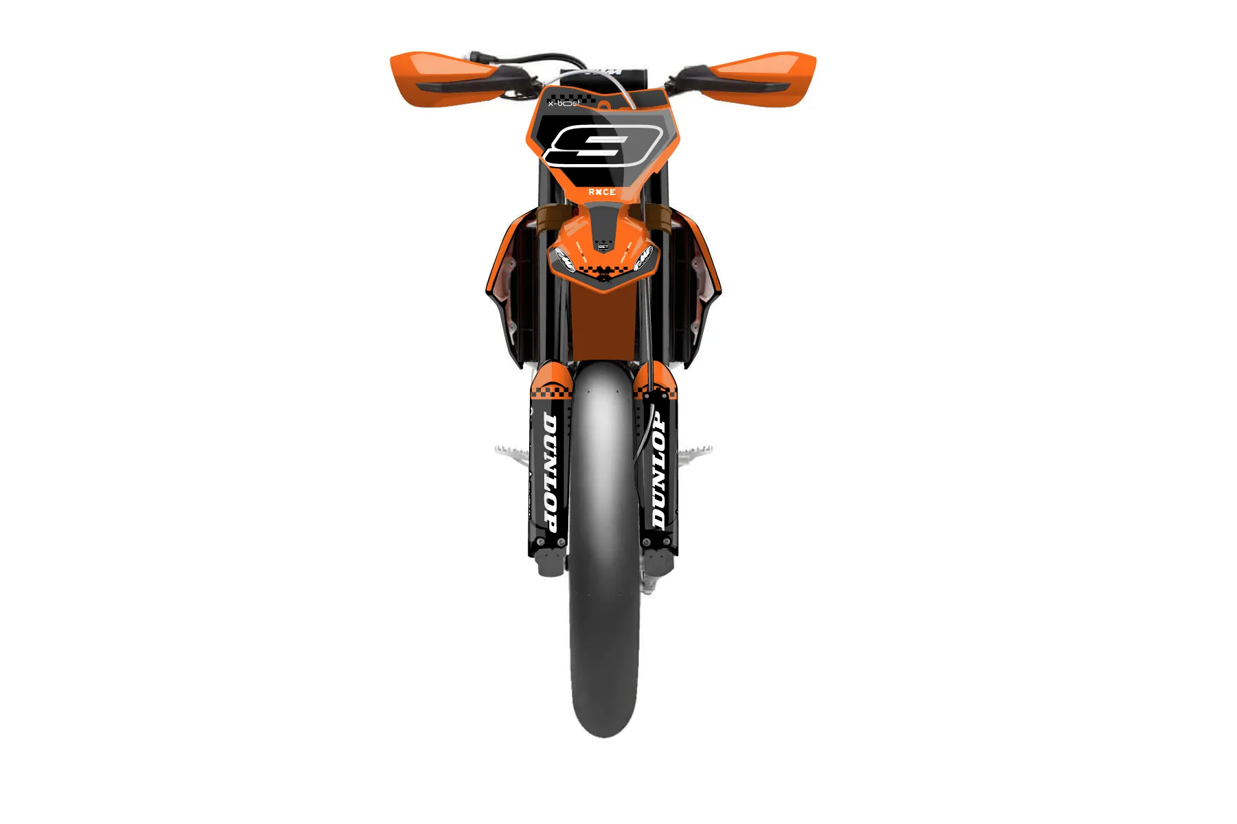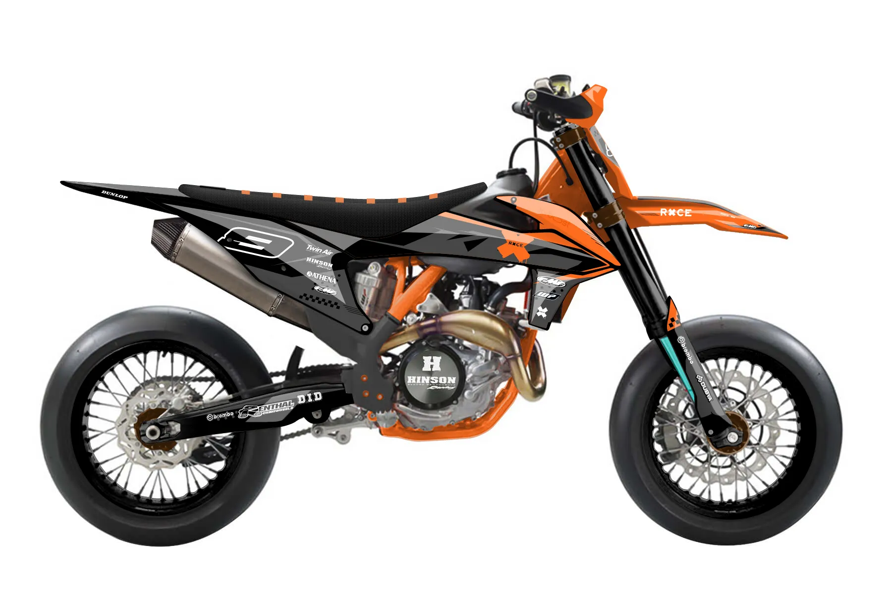 «Tide» — готовый комплект графики серии Staple для KTM Supermoto KTM SMR 450 2021. В комплекте: графика на бак и боковые облицовки, крылья (переднее и заднее), передний щиток, номерные таблички, защита вилки. Материал: ПВХ-винил 80 мкр с холодной ламинацией 300 мкр, общая толщина 380 мкр; покрытие глянцевое или матовое на выбор. Устойчив к UV-излучению, воде, бензину и мойке высокого давления. Клей акриловый на сольвентной основе — постоянный, для гибких пластиков. На простых поверхностях монтируется без нагрева; для сложных изгибов рекомендуем фен. Этот пресет можно заказать как есть или взять за основу в конструкторе: поменять цвета, добавить стартовый номер и свой бренд. Производство — 3–5 рабочих дней, доставка по России СДЭКом или Почтой, по СНГ — курьерскими службами.