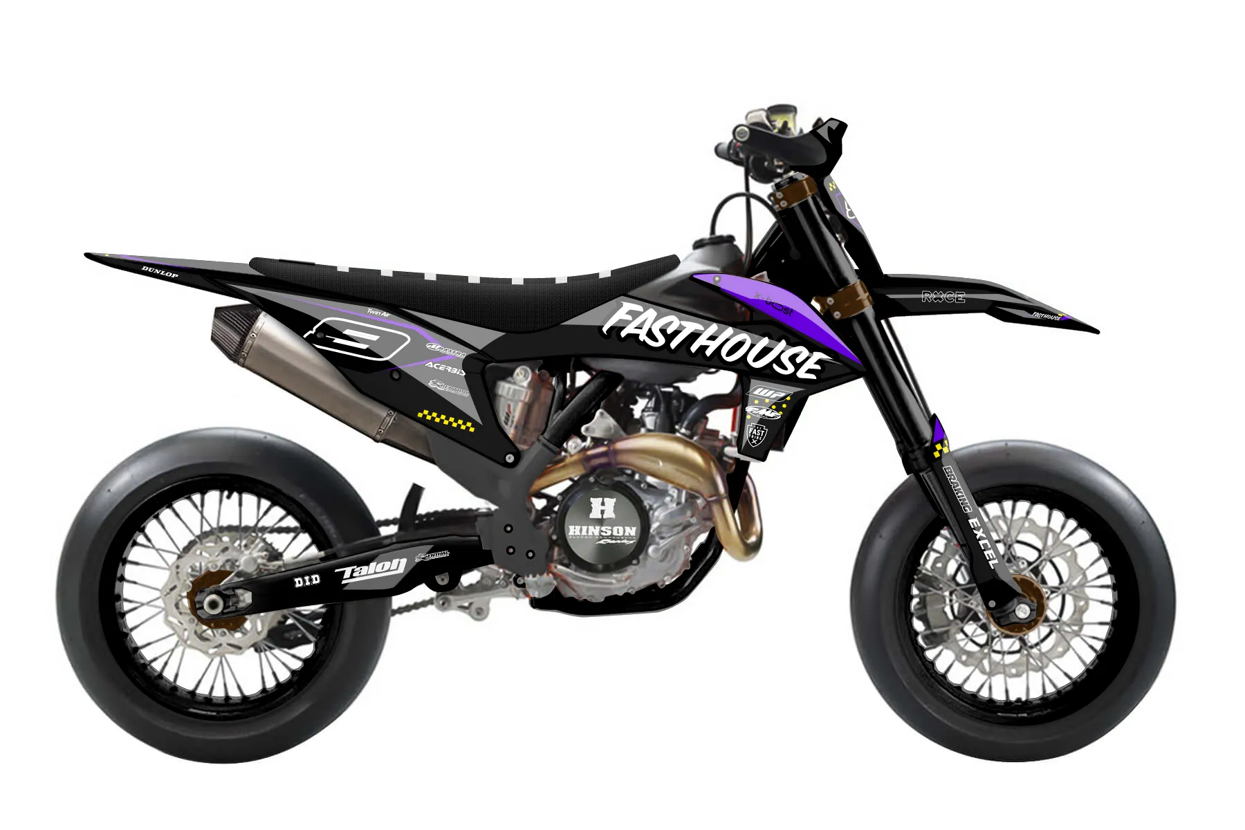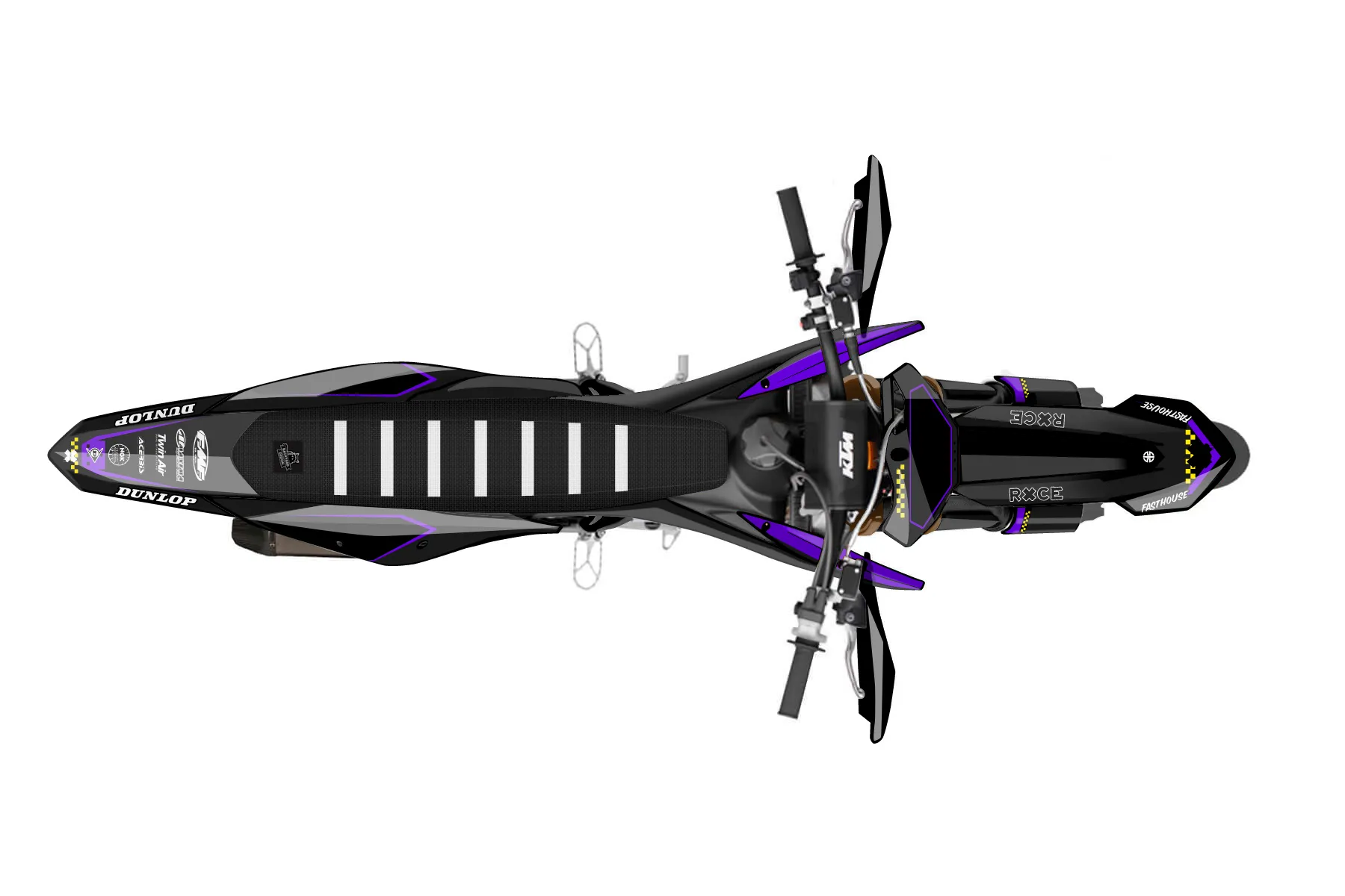 «Virtual» — готовый комплект графики серии Staple для KTM Supermoto KTM SMR 450 2021. В комплекте: графика на бак и боковые облицовки, крылья (переднее и заднее), передний щиток, номерные таблички, защита вилки. Материал: ПВХ-винил 80 мкр с холодной ламинацией 300 мкр, общая толщина 380 мкр; покрытие глянцевое или матовое на выбор. Устойчив к UV-излучению, воде, бензину и мойке высокого давления. Клей акриловый на сольвентной основе — постоянный, для гибких пластиков. На простых поверхностях монтируется без нагрева; для сложных изгибов рекомендуем фен. Этот пресет можно заказать как есть или взять за основу в конструкторе: поменять цвета, добавить стартовый номер и свой бренд. Производство — 3–5 рабочих дней, доставка по России СДЭКом или Почтой, по СНГ — курьерскими службами.