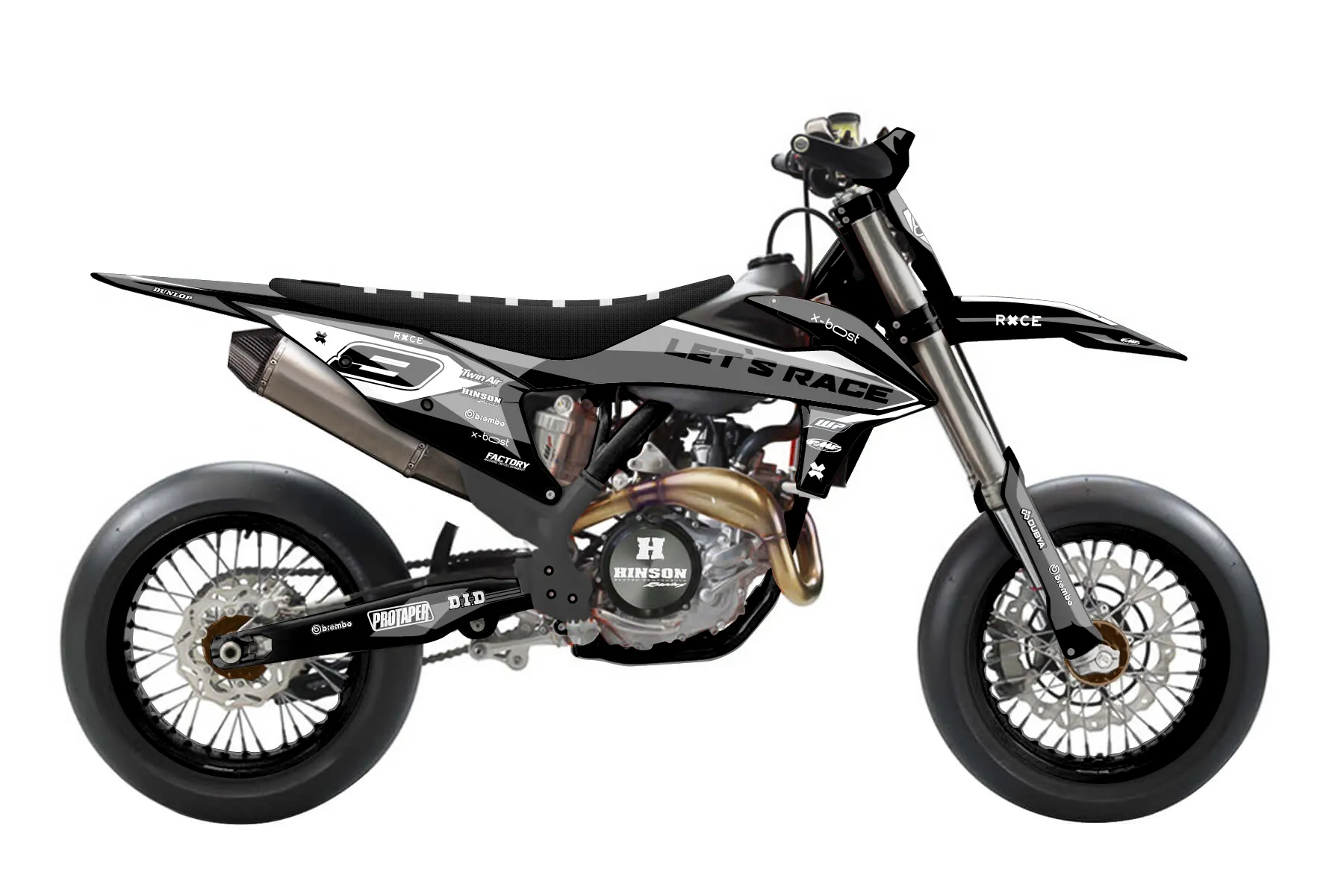 «Vogue» — готовый комплект графики серии Staple для KTM Supermoto KTM SMR 450 2021. В комплекте: графика на бак и боковые облицовки, крылья (переднее и заднее), передний щиток, номерные таблички, защита вилки. Материал: ПВХ-винил 80 мкр с холодной ламинацией 300 мкр, общая толщина 380 мкр; покрытие глянцевое или матовое на выбор. Устойчив к UV-излучению, воде, бензину и мойке высокого давления. Клей акриловый на сольвентной основе — постоянный, для гибких пластиков. На простых поверхностях монтируется без нагрева; для сложных изгибов рекомендуем фен. Этот пресет можно заказать как есть или взять за основу в конструкторе: поменять цвета, добавить стартовый номер и свой бренд. Производство — 3–5 рабочих дней, доставка по России СДЭКом или Почтой, по СНГ — курьерскими службами.