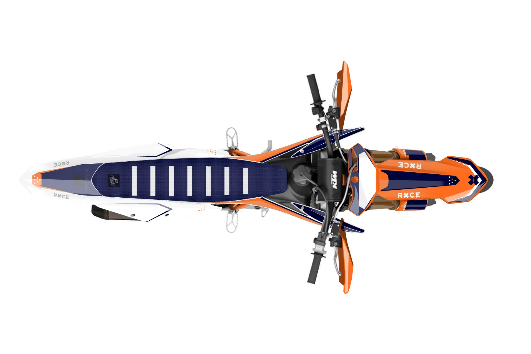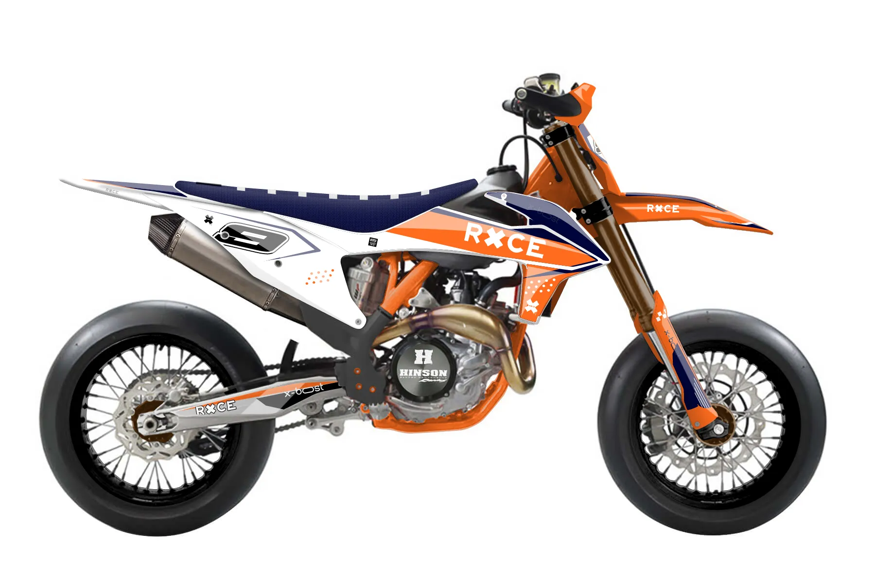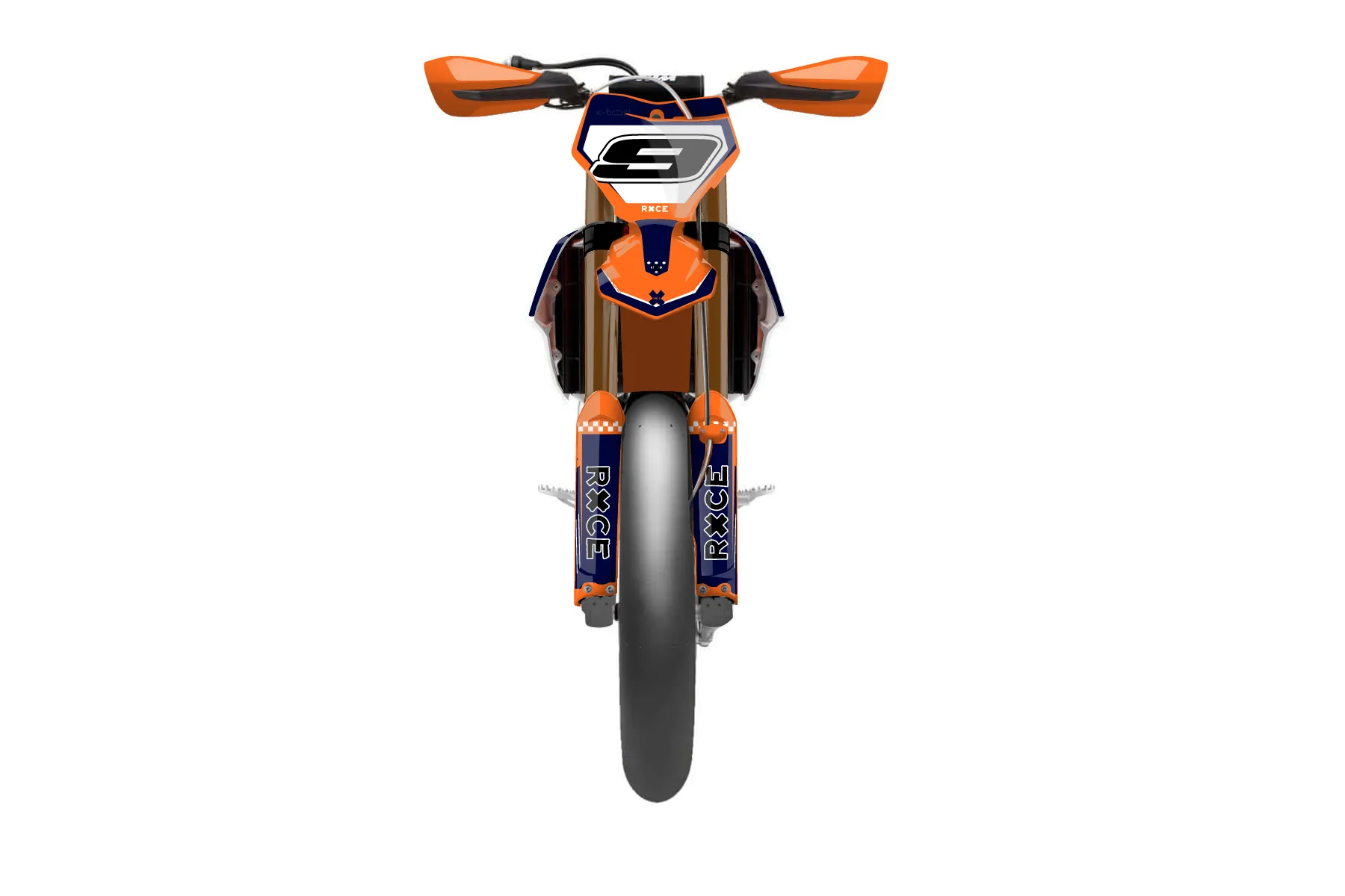«Wrapper» — готовый комплект графики серии Staple для KTM Supermoto KTM SMR 450 2021. В комплекте: графика на бак и боковые облицовки, крылья (переднее и заднее), передний щиток, номерные таблички, защита вилки. Материал: ПВХ-винил 80 мкр с холодной ламинацией 300 мкр, общая толщина 380 мкр; покрытие глянцевое или матовое на выбор. Устойчив к UV-излучению, воде, бензину и мойке высокого давления. Клей акриловый на сольвентной основе — постоянный, для гибких пластиков. На простых поверхностях монтируется без нагрева; для сложных изгибов рекомендуем фен. Этот пресет можно заказать как есть или взять за основу в конструкторе: поменять цвета, добавить стартовый номер и свой бренд. Производство — 3–5 рабочих дней, доставка по России СДЭКом или Почтой, по СНГ — курьерскими службами.