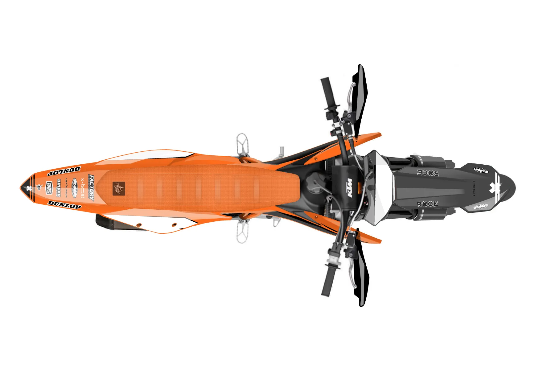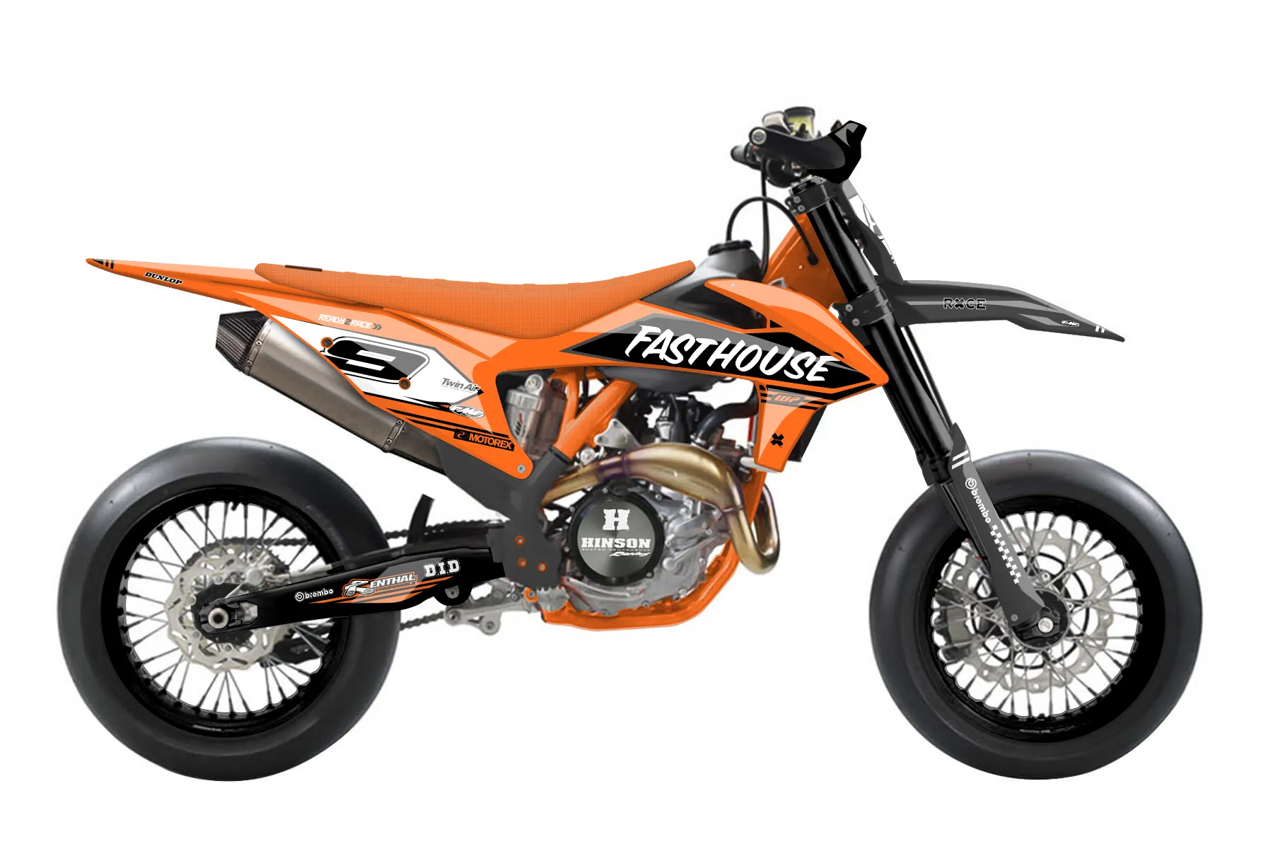 «Certain» — готовый комплект графики серии Untucked для KTM Supermoto KTM SMR 450 2021. В комплекте: графика на бак и боковые облицовки, крылья (переднее и заднее), передний щиток, номерные таблички, защита вилки. Материал: ПВХ-винил 80 мкр с холодной ламинацией 300 мкр, общая толщина 380 мкр; покрытие глянцевое или матовое на выбор. Устойчив к UV-излучению, воде, бензину и мойке высокого давления. Клей акриловый на сольвентной основе — постоянный, для гибких пластиков. На простых поверхностях монтируется без нагрева; для сложных изгибов рекомендуем фен. Этот пресет можно заказать как есть или взять за основу в конструкторе: поменять цвета, добавить стартовый номер и свой бренд. Производство — 3–5 рабочих дней, доставка по России СДЭКом или Почтой, по СНГ — курьерскими службами.